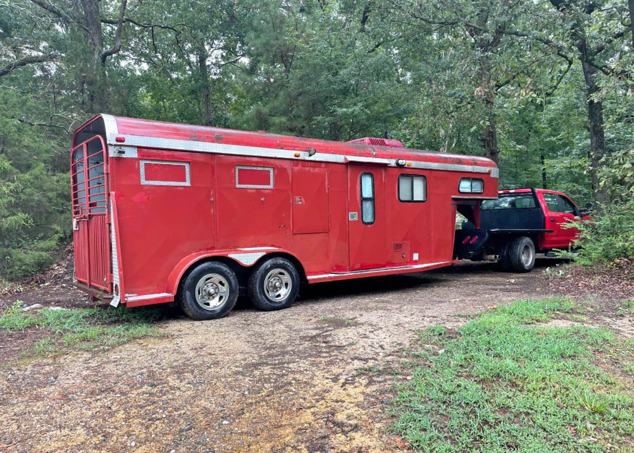 I believe it’s a 2001 if I remember correctly but don’t hold me to it. Been setting for about 4 years could use a good cleaning. Since it’s been setting the paint has started to chip up top. Inside is still really nice, sleeps 3 adults comfortably big California king up top with a pullout twin bed. Hard wood floors, sink, fridge, cowboy shower. Hauls two horses straight load with divider. I no longer have any use for it and I want it gone. I lost the title when I moved so no title. very well built, floors are still good everything worked perfectly last time I used it. I’ve pulled this trailer all over with zero issues pulls great