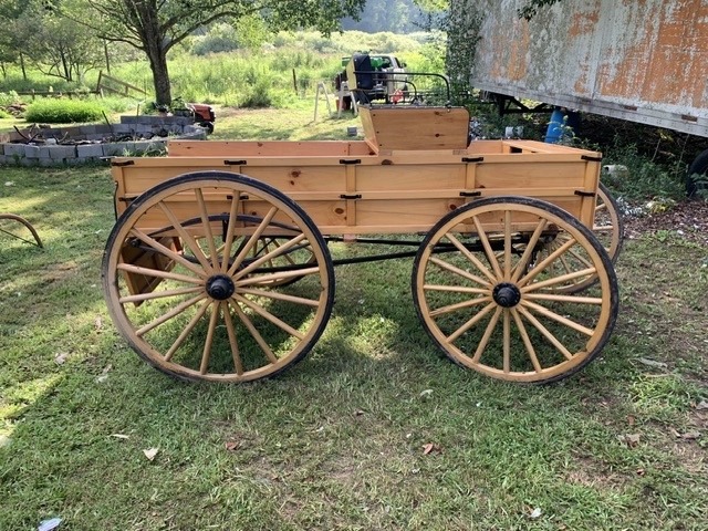 Covered wagon built by Amish in bland county Va only used a few times has been kept out of weather. Has all tack for single or team horses.