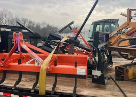 TRAILER LOAD OF IMPLEMENTS, INCLUDING HAY RAKES, TILLERS, LAND GROOMERS AND MUCH MORE