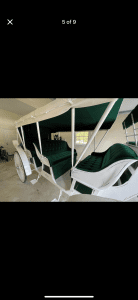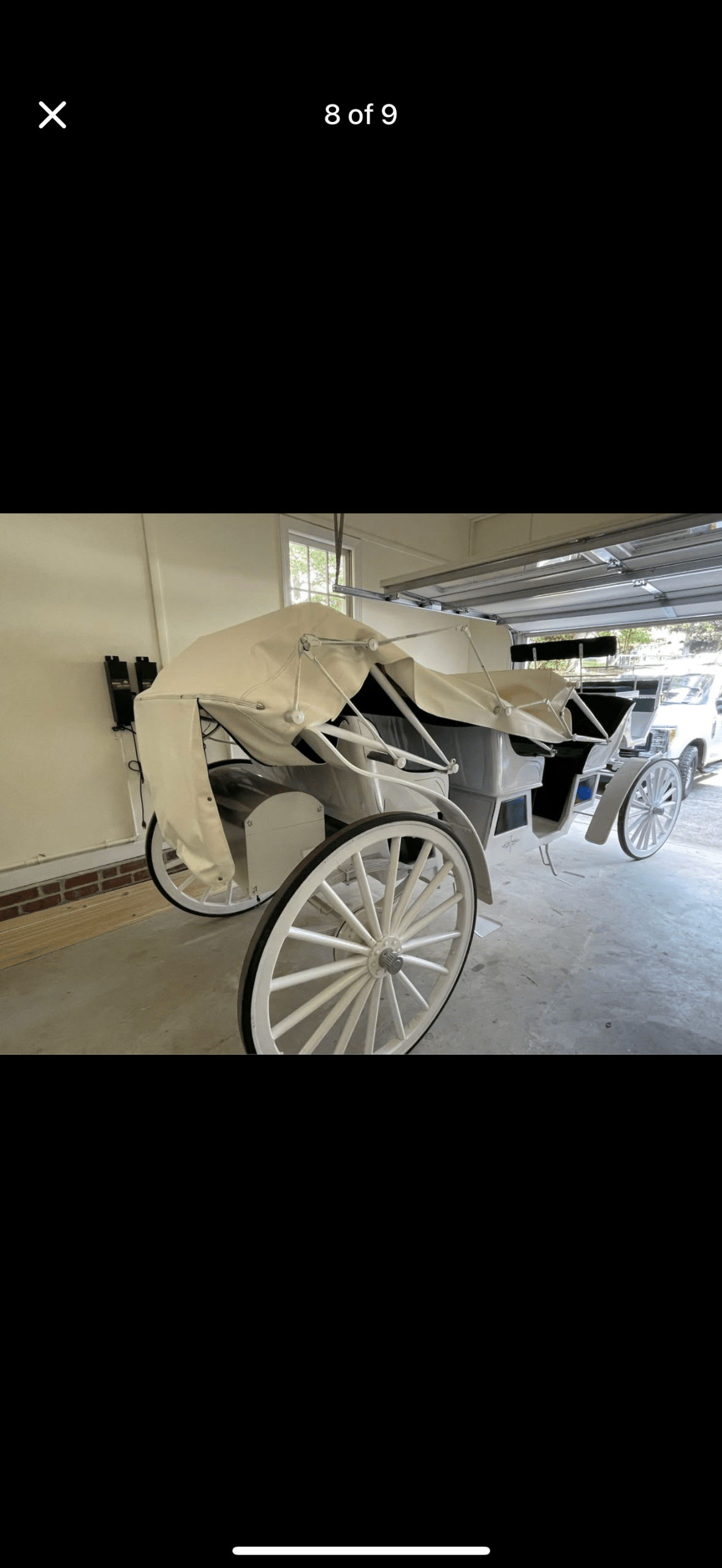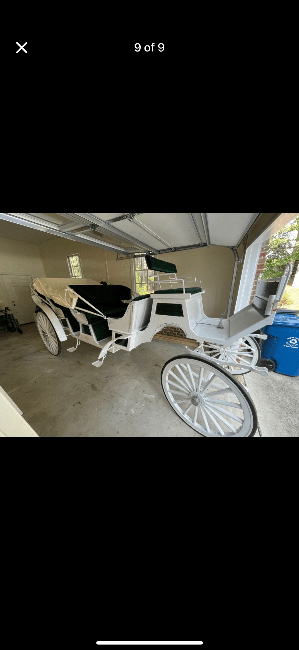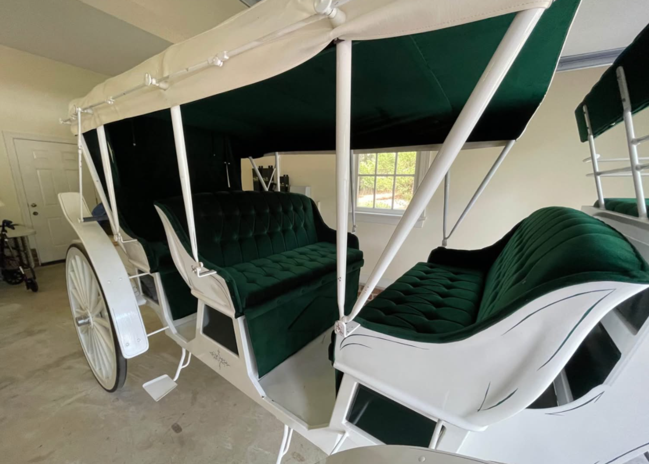 Beautiful Vis-a-vis limousine carriage with hydraulic brakes. This carriage is set up for a dual or single hitch. It is in excellent condition. Beautiful velvet green seats and headliner.
