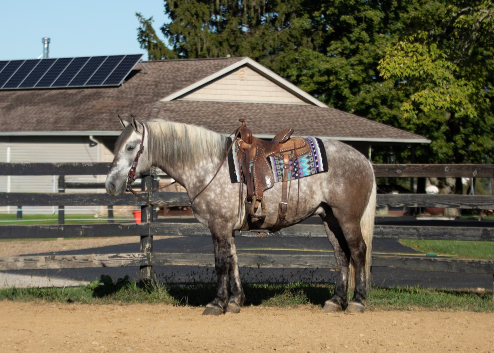 9yr, Blk and white Tobiano, Gyspy/Draft cross, Gelding