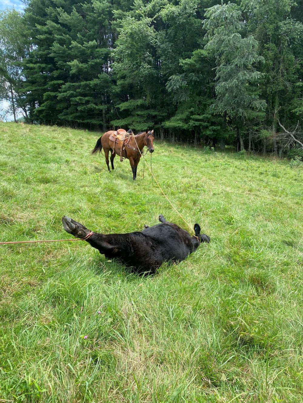 Description: Sam was Used in mostly ranch work. Will tie off to cattle. Been out of a roping box but is on the slower side. Heads or heels. Kids have played on the barrels but he is peewee speed! Great for a jr rodeo kid to start with! He has great ground manners! Gentleman with his feet!