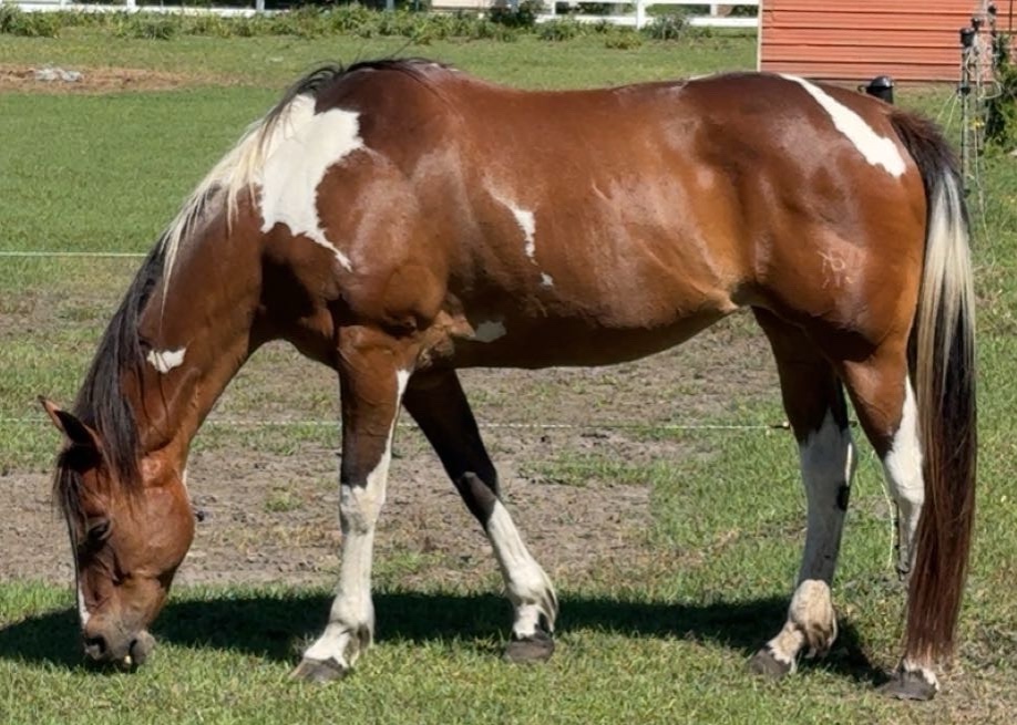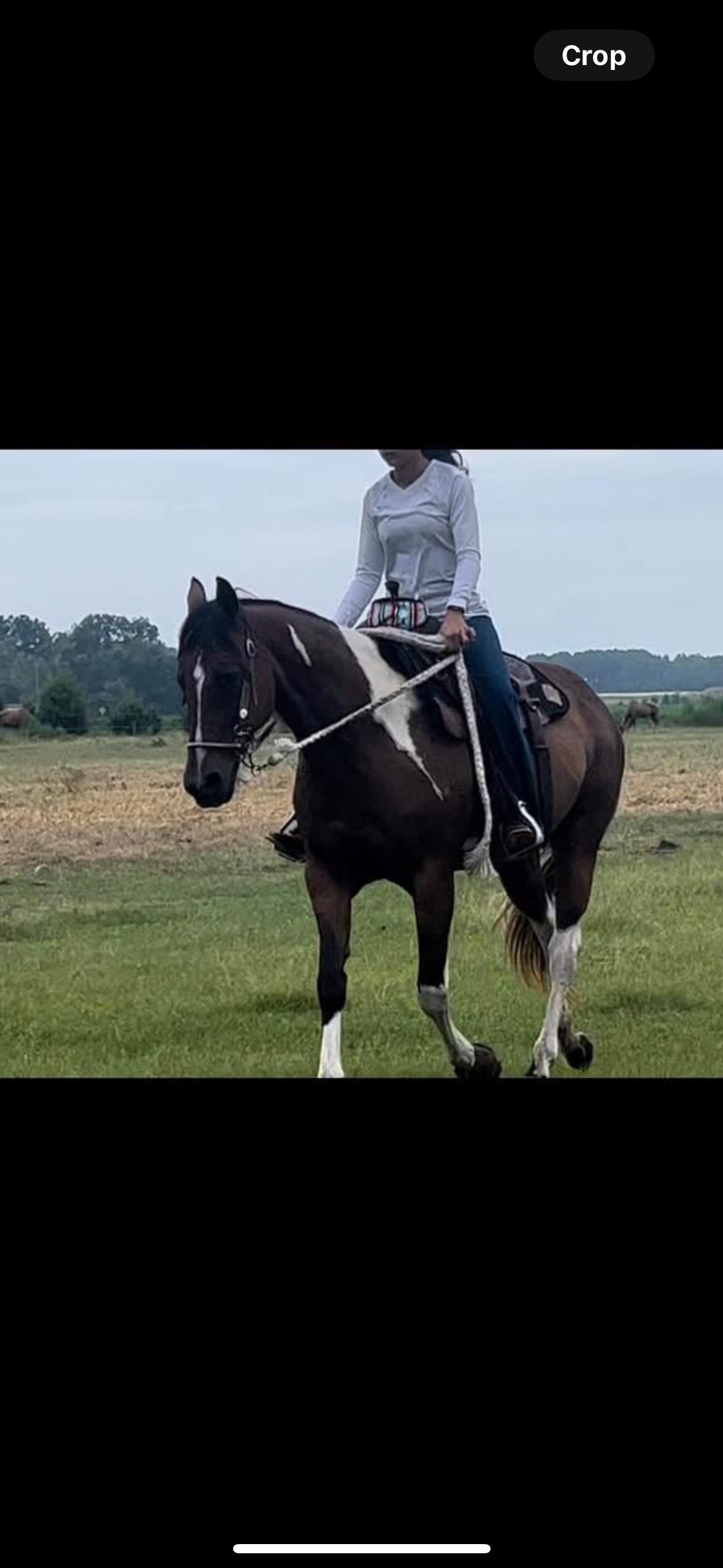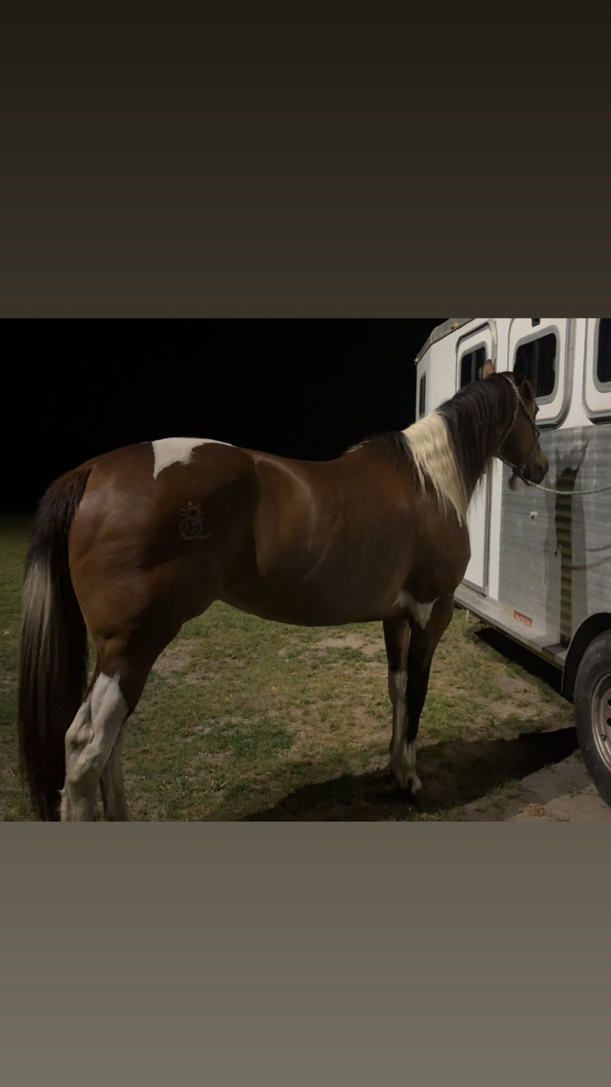 Description: Traces Image, a 2011 papered mare, has been been used for trail riding. She is safe, sound, and sane. She will pick up both leads. Loads, stands for the farrier, she ties and bathes without any issues. Vega is a fancier-style horse with all the right buttons. She has been trained on barrels used for roping and dragging donkeys. Vega has also been used for English flat classes and spent 60 days at a cutting trainer. Vega has been exposed to various things and environments, including guns, four-wheelers, cows, and more.