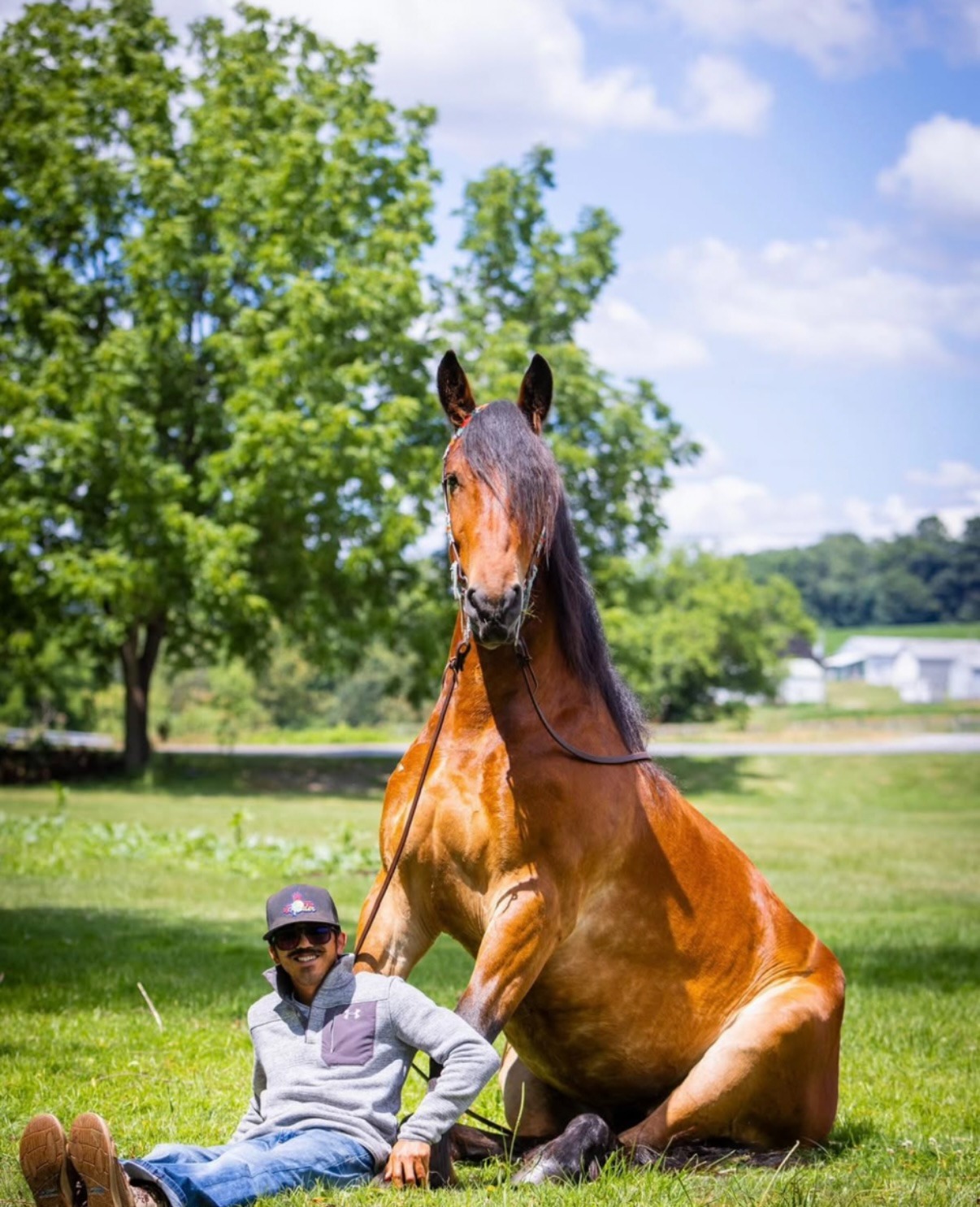 Description: Louie is truly a man of many hats! If you’re looking to trail ride, rope bulls, pick up broncs, do dressage, event, jump, or fox hunt, Louie is your guy! He is a 6-year-old, 16.1hh Friesian/Morgan cross who is barefoot, sound, and clean-legged.Louie has excellent manners in every way. He ties, bathes, loads, and is great for both the vet and farrier. He is very polite to groom and tack, and he stands like a rock to mount. He is also trained to lay down, sit, and step up onto objects on cue, showing just how intelligent and willing he is.Despite his age, Louie has an incredible amount of experience and is genuinely wise beyond his years. He has roped bulls at the Cowtown PBR, picked up broncs at APRA rodeos, and ponied countless horses. He has helped start many young horses under saddle by being a solid snubbing horse. On the trail, he is confident and dependable—crossing water, bridges, tunnels, and varied terrain with ease. Louie has also fox hunted first flight several times with great success.He is easy to catch, well-mannered in the stall and in the field, and always arrives ready to work. Louie offers a rare combination of training, exposure, temperament, and versatility, making him a truly exceptional partner for his next rider.