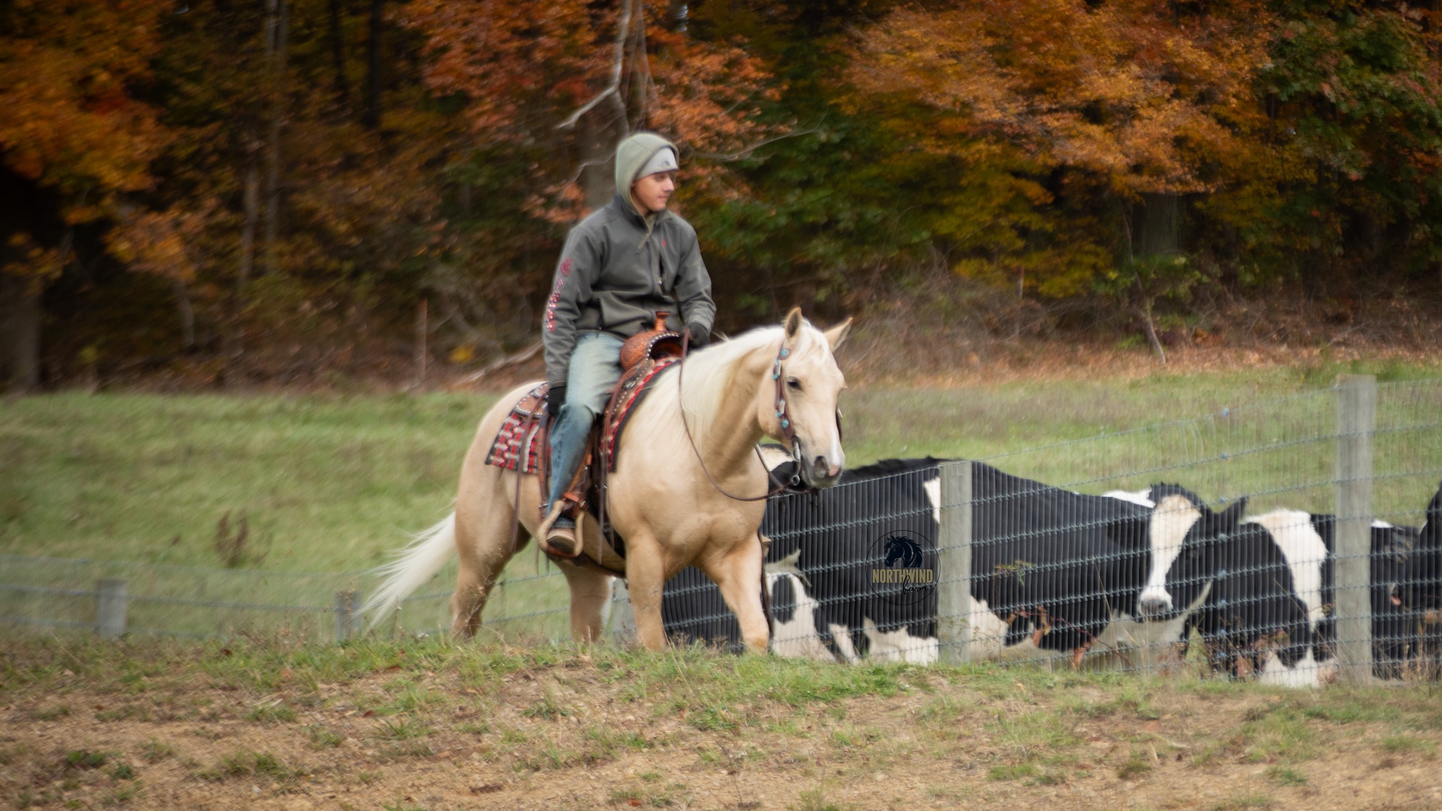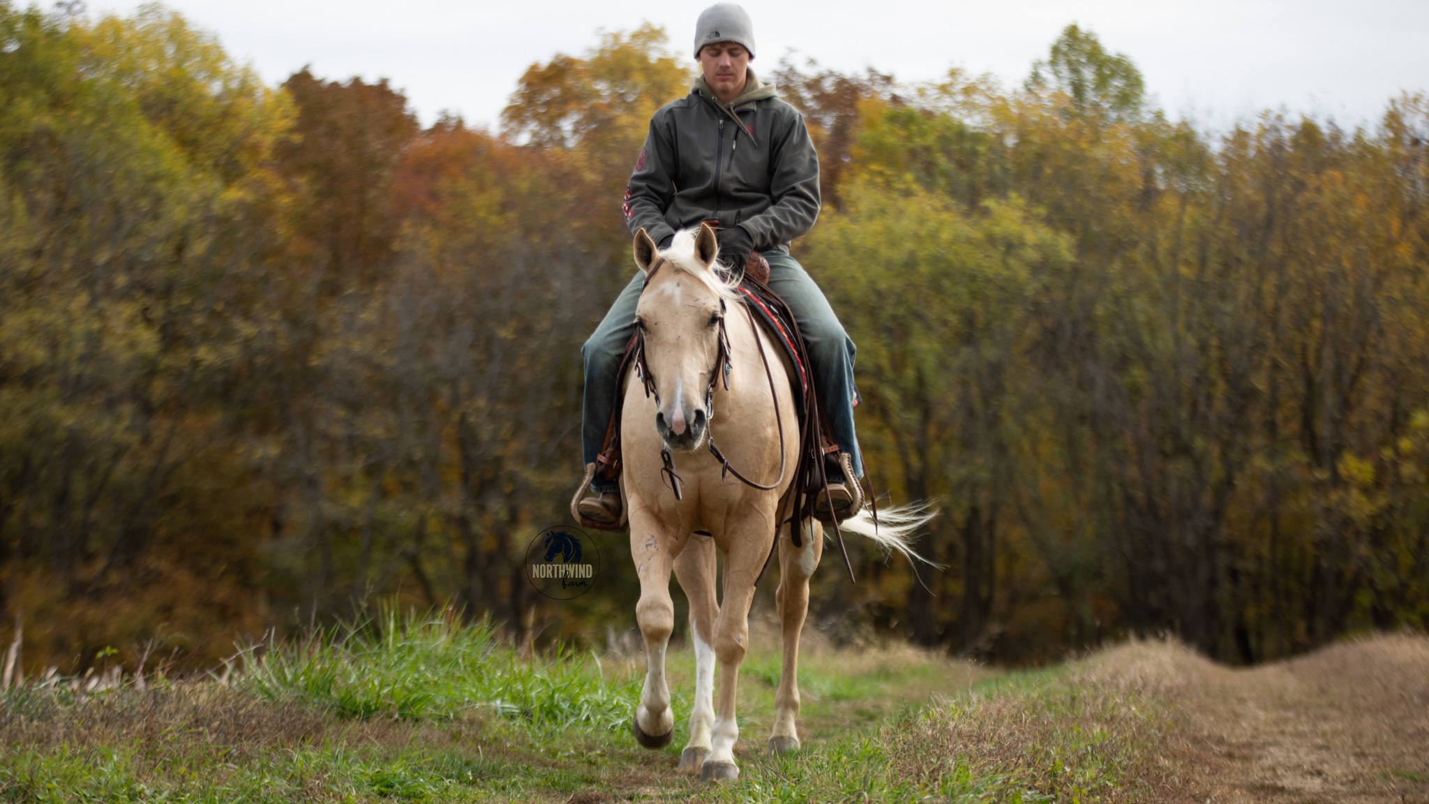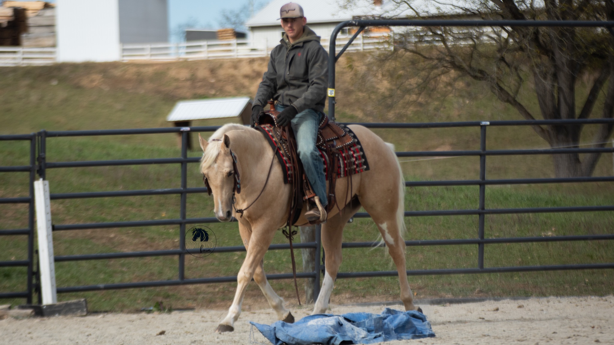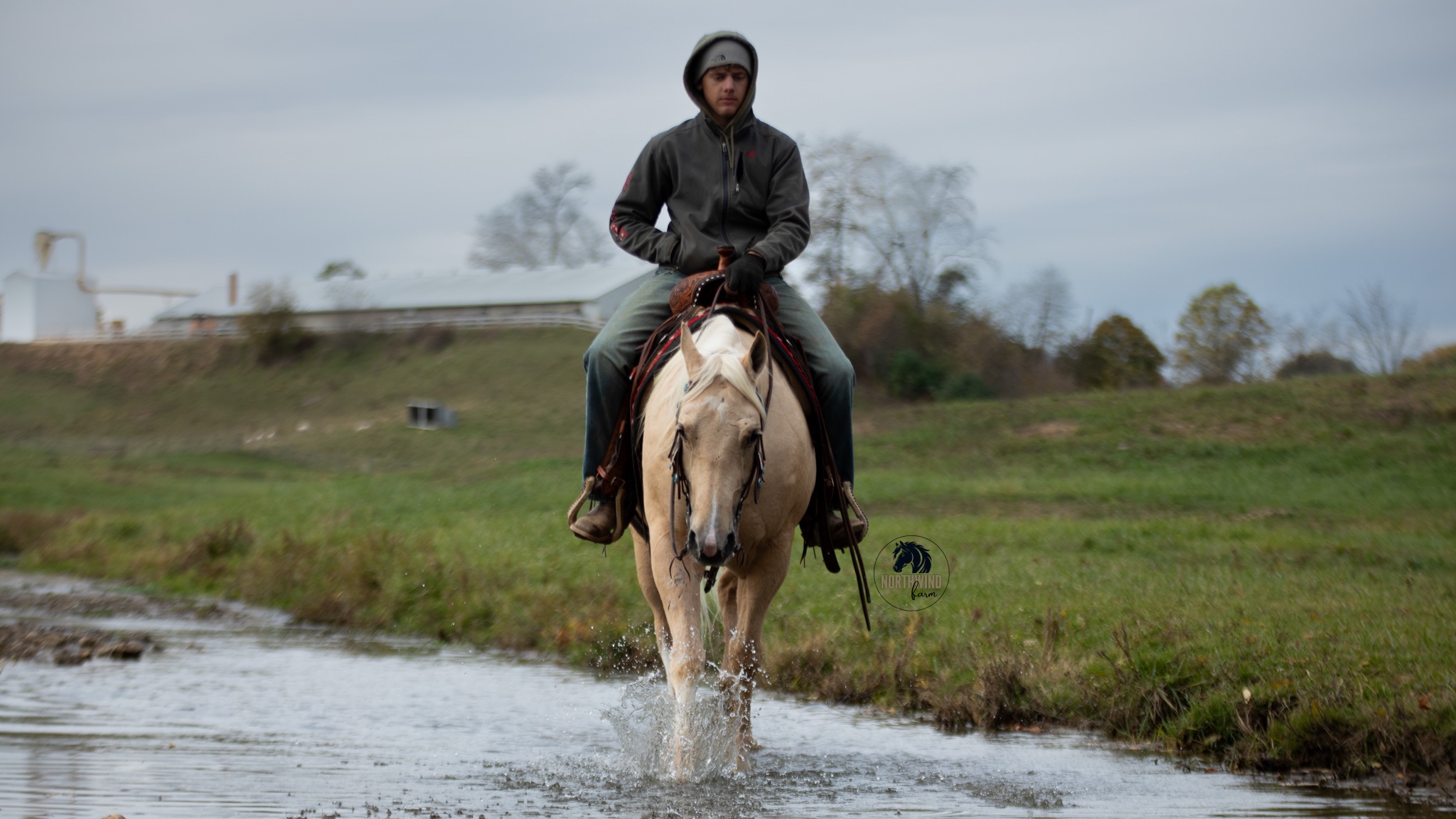 Description: GoldRush is a 5 yr old grade palimno quarter horse gelding standing at 15hh! GoldRush is very well trained to ride! He has a lovey personality and enjoys attention! He has good ground manners, he stands good for grooming, tacking up, and for getting bathes! He loves being out in the pasture! He is good with others horses and is in the middle of the pecking order! He is easy to catch in the field as well! He is good with the farrier and up to date on shoes! He is safe and gentle for all levels of riders! Goldrush rides nicely in the arena, he picks up both his leads, he stops good, and has a nice back up! He will neck rein, direct rein, and move off of leg pressure! He is easy to ride! He has very smooth gaits! His walk, trot, canter, is fun to ride! He is a beautiful mover! GoldRush is a star out on the trails! He is used to seeing cows, wildlife, and dogs! He is very confident and will cross anything you point him at! He doesn’t hesitate to cross creek, he steps over logs, and is surefooted going the hills! He will go through all the obstacles and doesn’t mind the tarps or the ball! He has been rode on the state route and is traffic safe! He is also used to being around farm equipment and ATVs! GoldRush is 100% sound and requires no maintenance! Contact us for more info or to meet GoldRush!