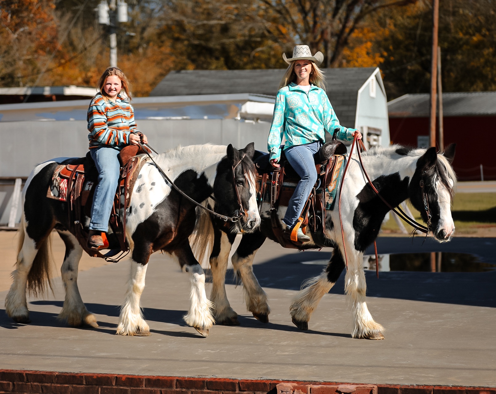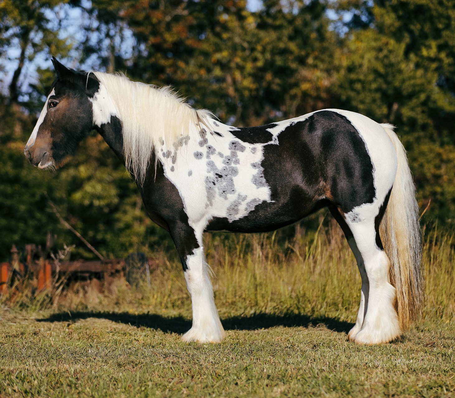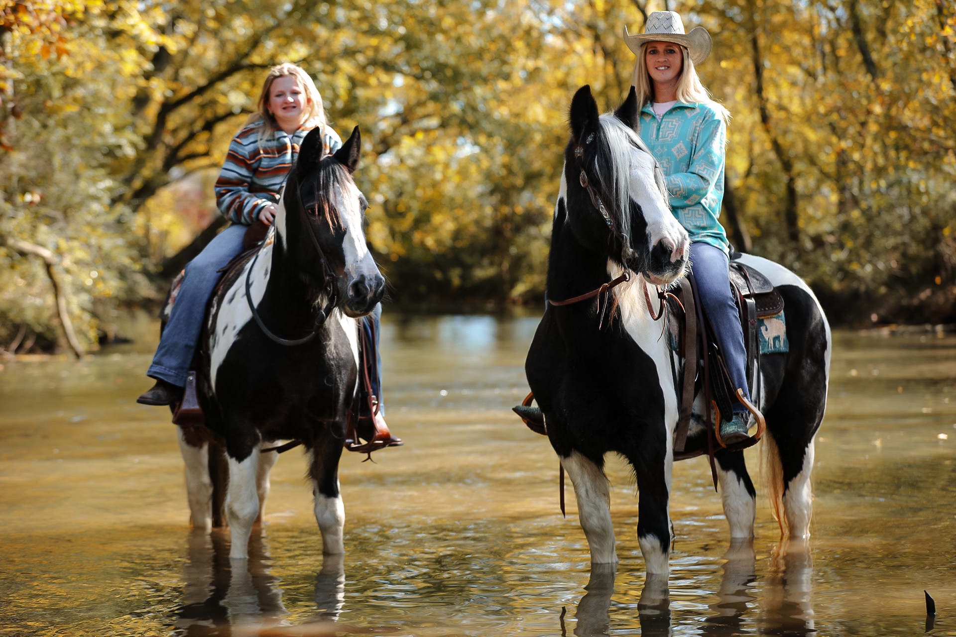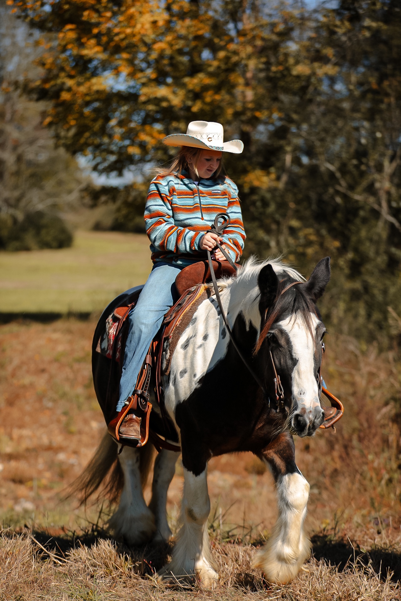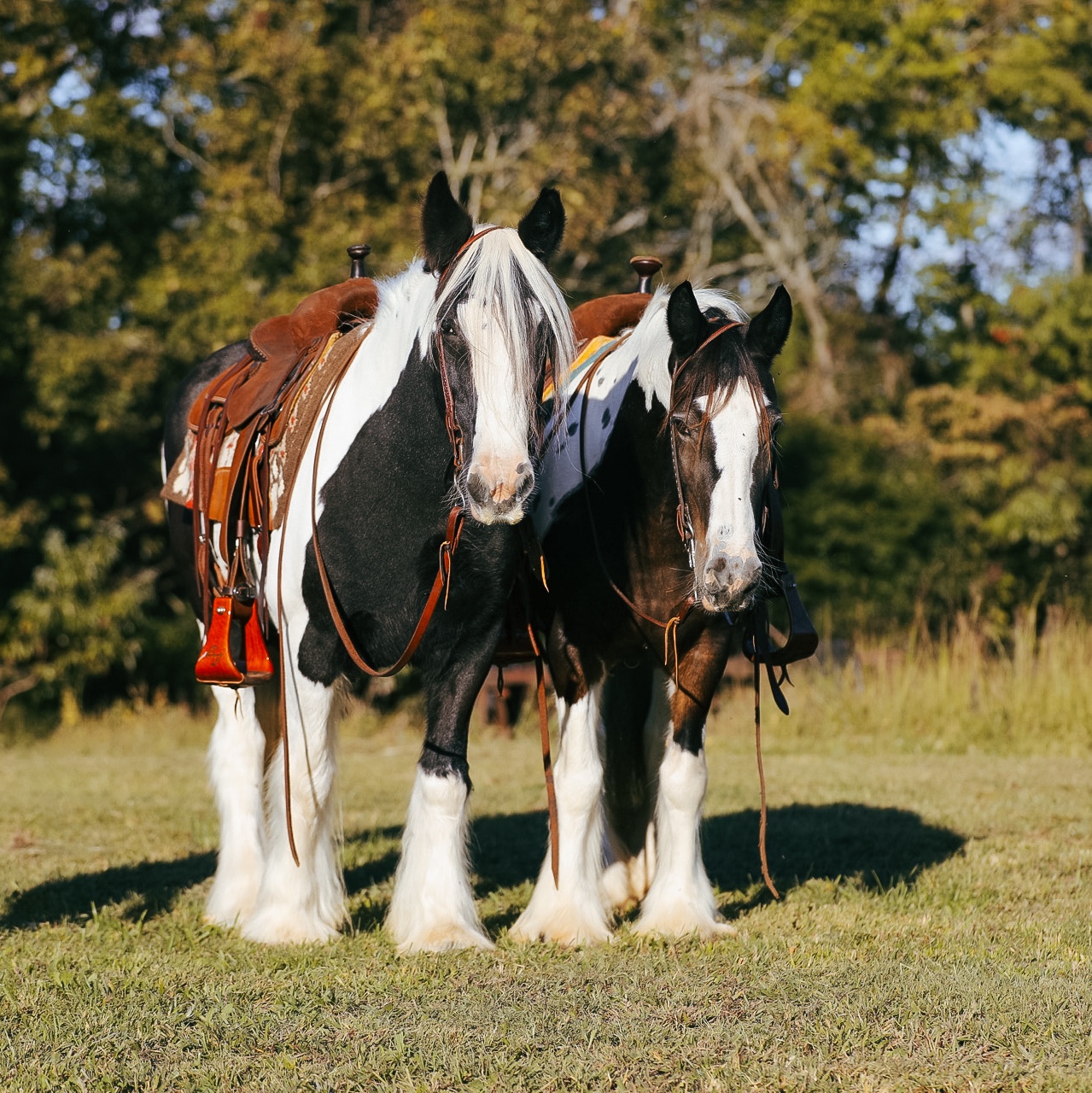 Thelma and Louise-Two ABSOLUTELY stunning Gypsy Vanner mares broke for anyone, at any stage in riding. They are gentle, safe and beginner friendly. They are both seasoned trail mounts and are as sure footed as you could ask for. They will wade through the water, walk through the thick brush, and safely go up or down steep inclines. They will both lower their heads and let you enjoy a nice, slow trail ride if that’s what you prefer as well. Both are super easy to get along with- they stand still to be tacked and mounted, love a bath and to be groomed on. Most importantly they will have the same calm, gentle attitude every single day. They are the true definition of family friendly and an absolute confidence booster!Thelma hip # 434 Louise hip # 765
