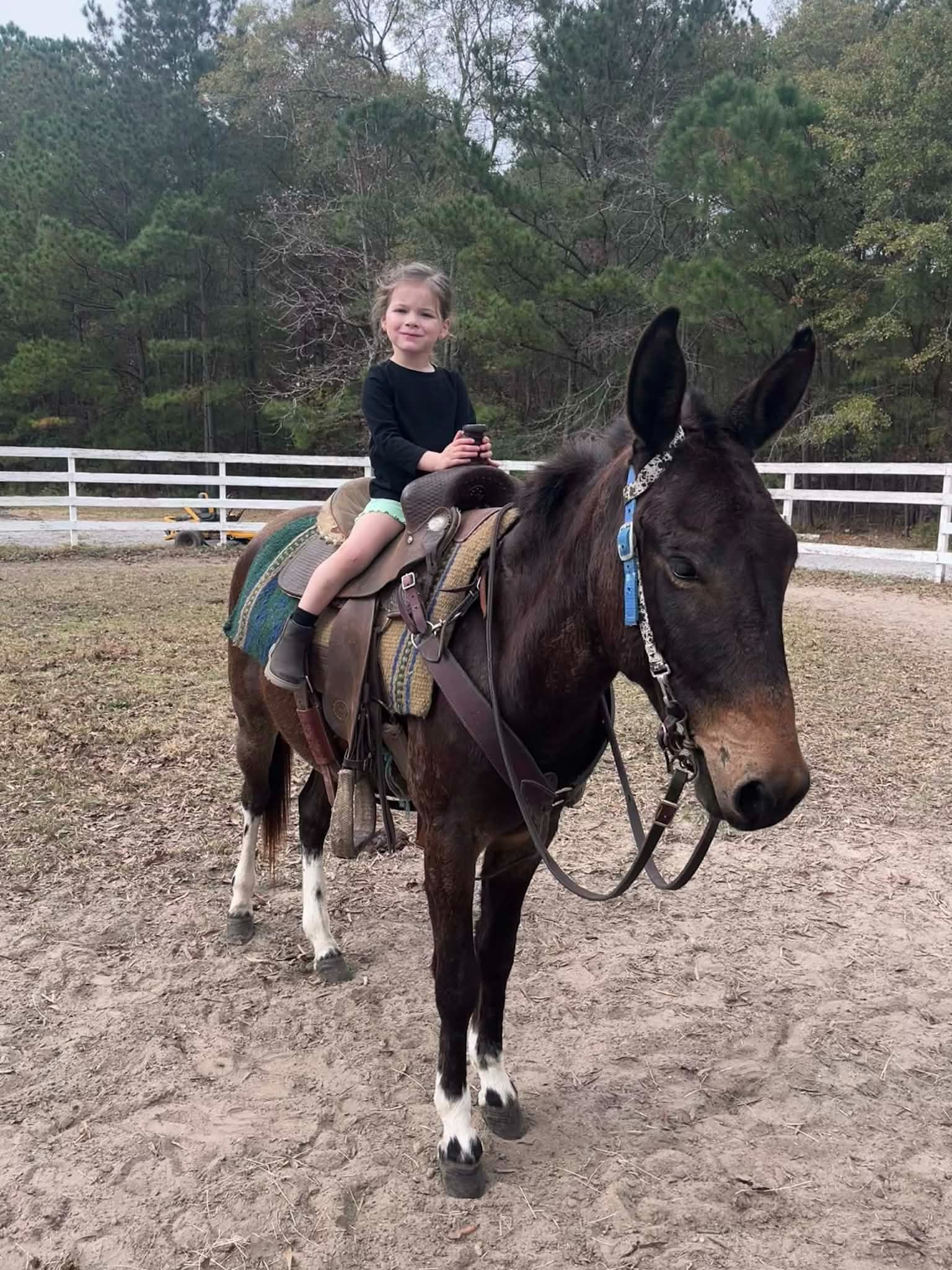 Description: Choco has been doing lessons for children for 2 yrs and is traffic safe, trail rides, just a curious happy mule all around!