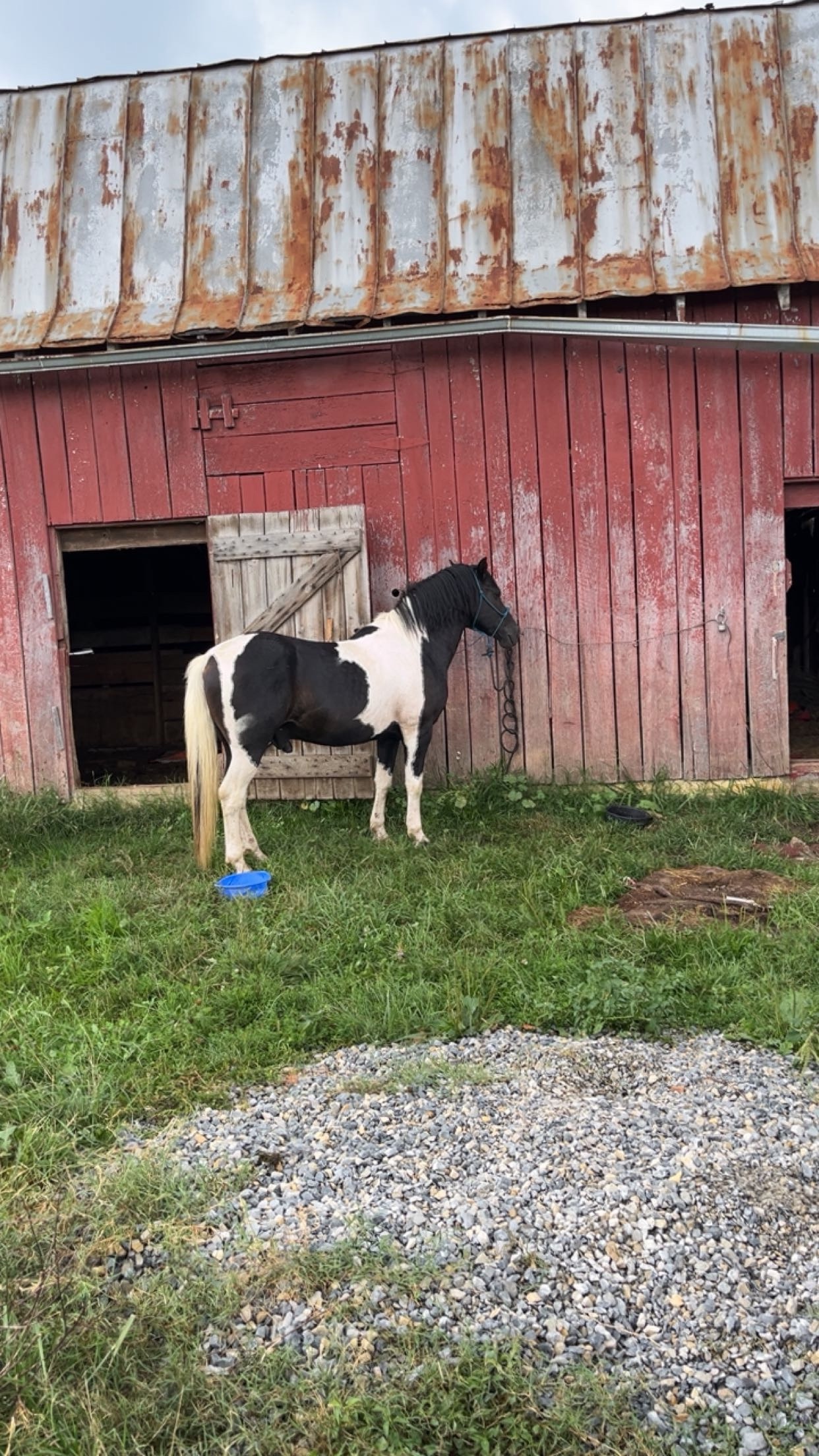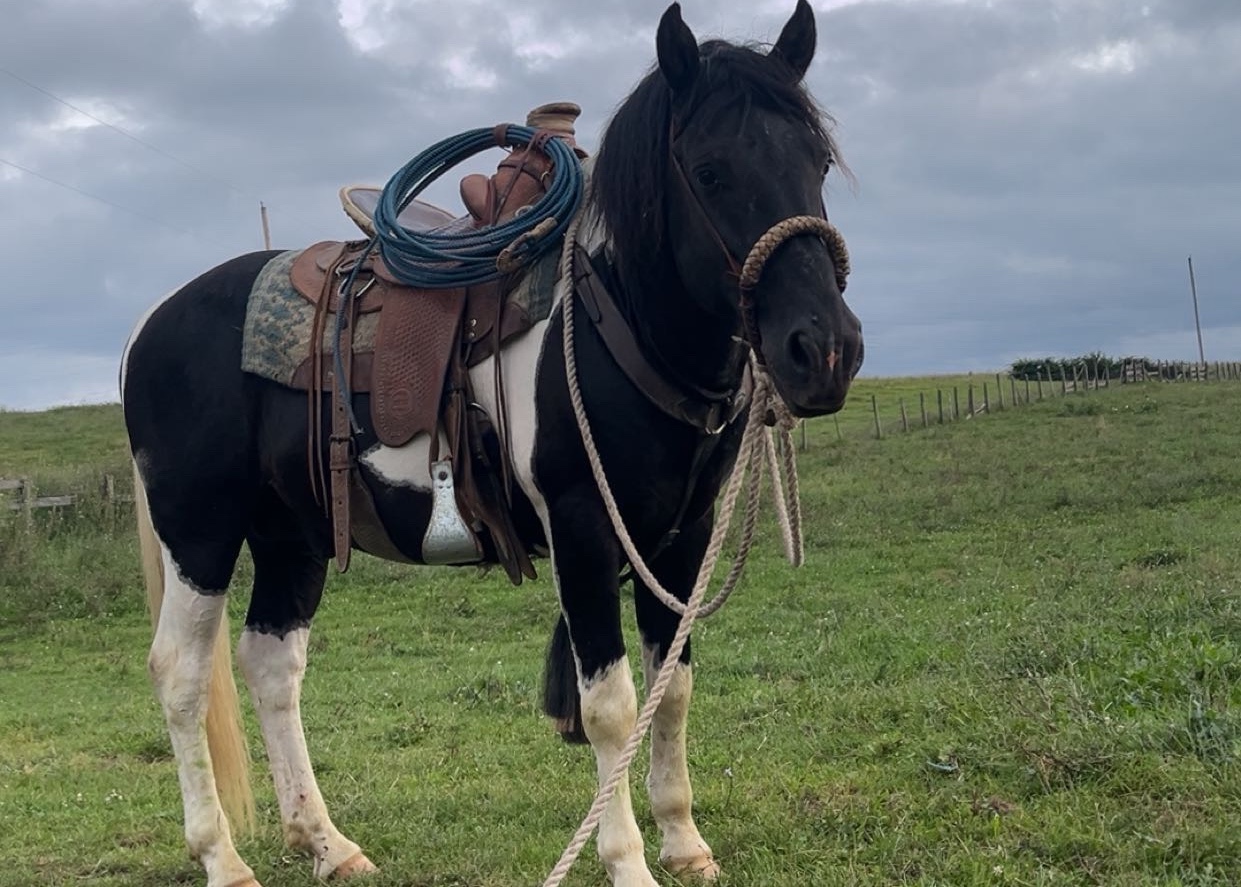 Very solid little horse he’s built like a tank and takes everything in stride I’ve gathered And caught cows on him he’s in a cross fence with mares and has been hailed with them lots