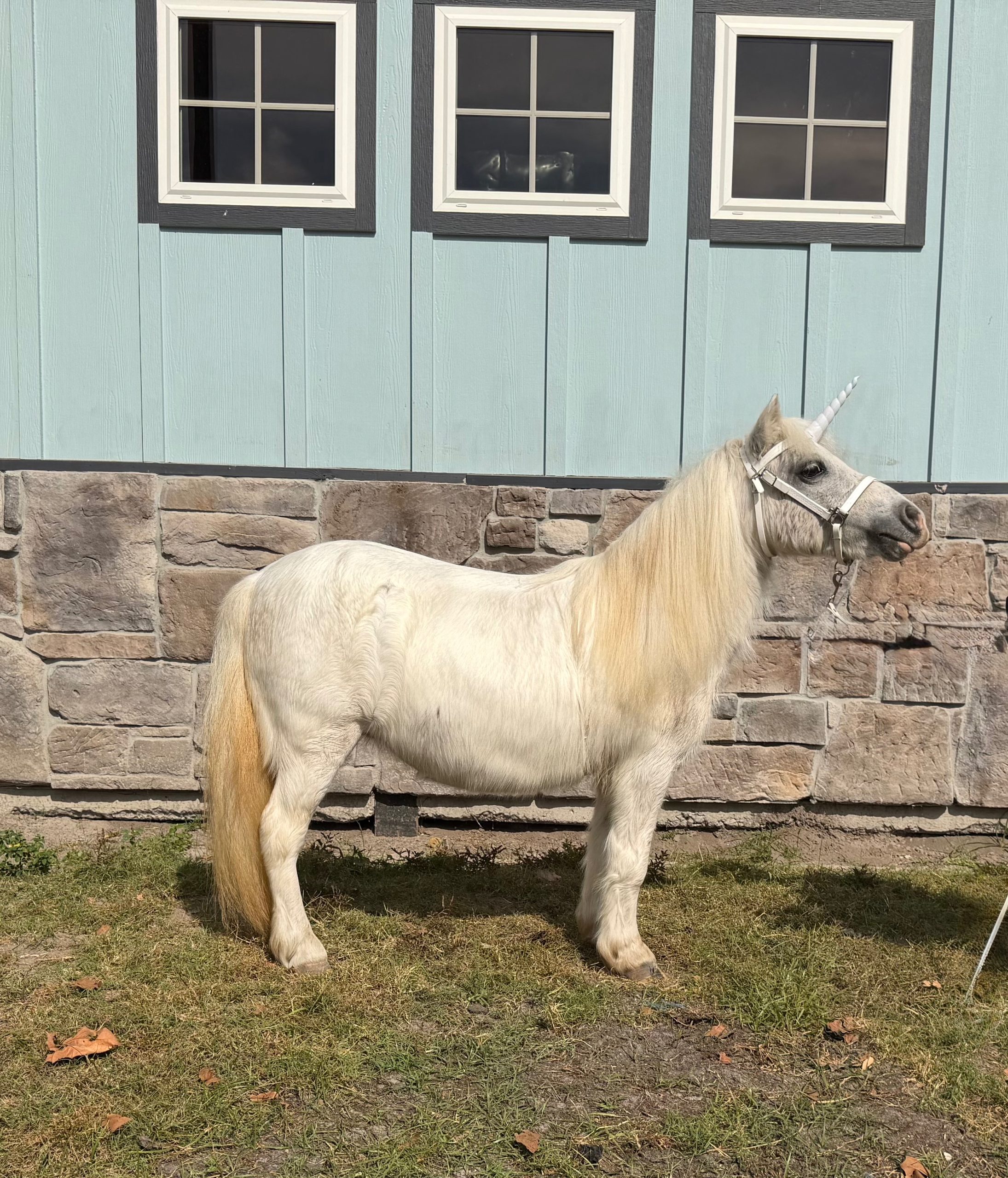Description: Jasmine is so cute and makes an even cuter unicorn. She drives single and double. She matches Aladdin ( hip 130) perfectly and will be offered choice when Aladdin sells. Jasmine has been living with Aladdin for the past 4 months so there maybe a little unicorn on the way. Jasmine has had a foal in the past and was a wonderful mom. What a great opportunity to have your very own family of unicorns.