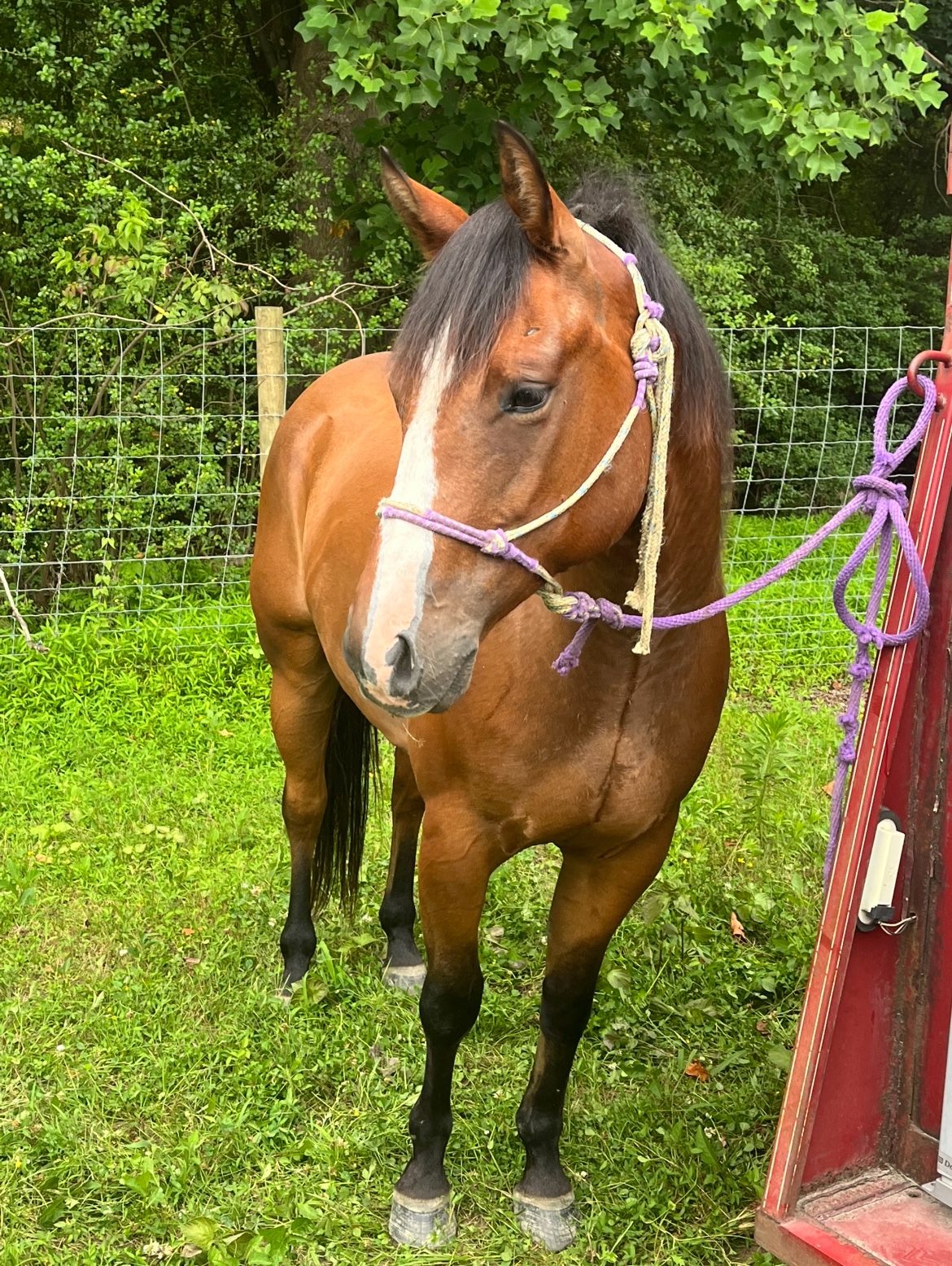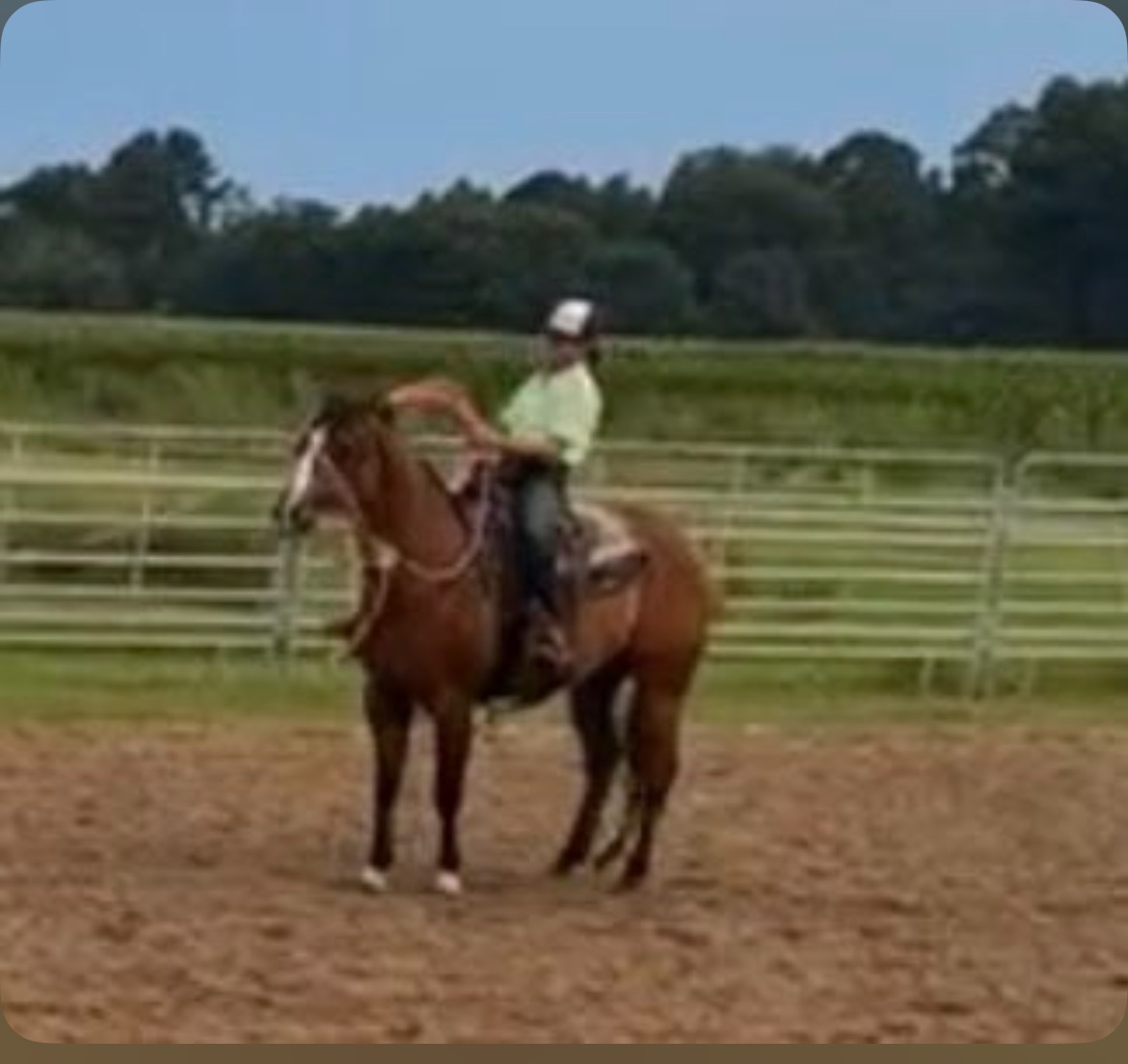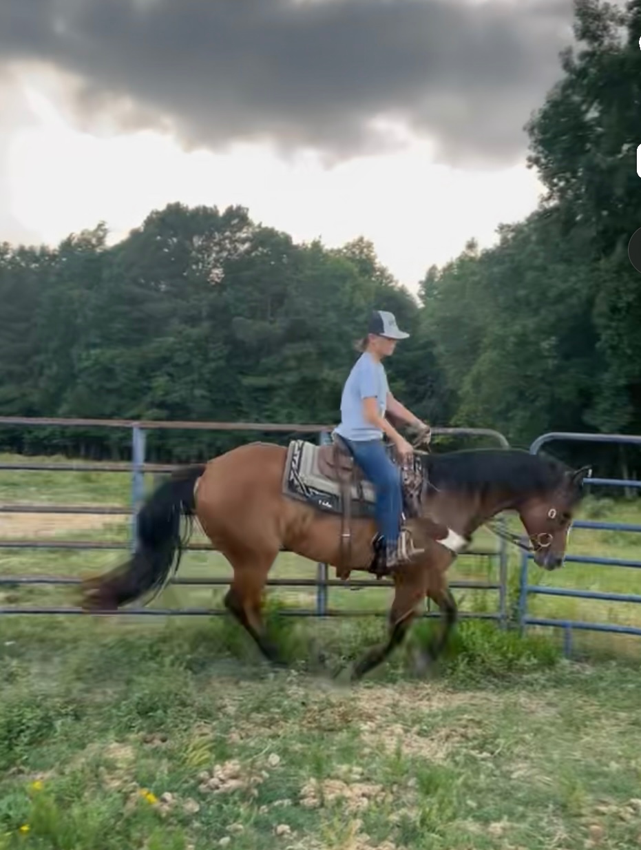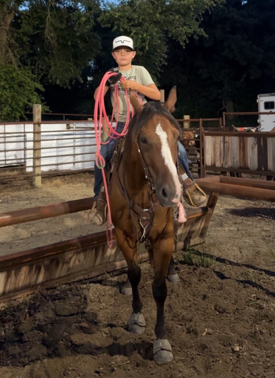 Bernie is a great all around horse for anyone to ride . Heβs well started on the heel side and is ridden by my 12 yo son he has also done breakaway . And has had cutting training He is quiet in the box and is a great trail horse