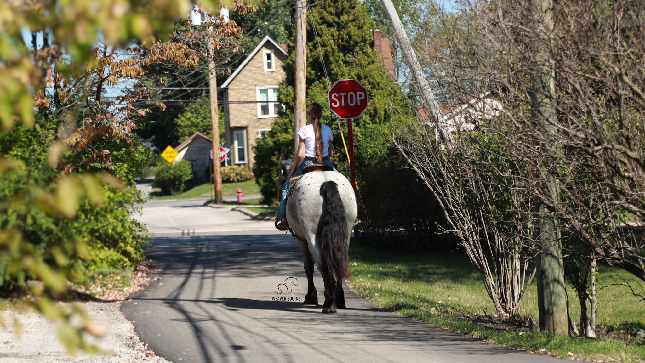 He has also been out and about. He has been used out on the trails. He conquers the hills with ease. He steps over logs. Does not mind crossing creeks and muddy areas. He has been out in the town as well. He does not bat an eye at loud, heavy traffic. He will stop and stand for days at a stop sign. He will trailer loads nicely as well.