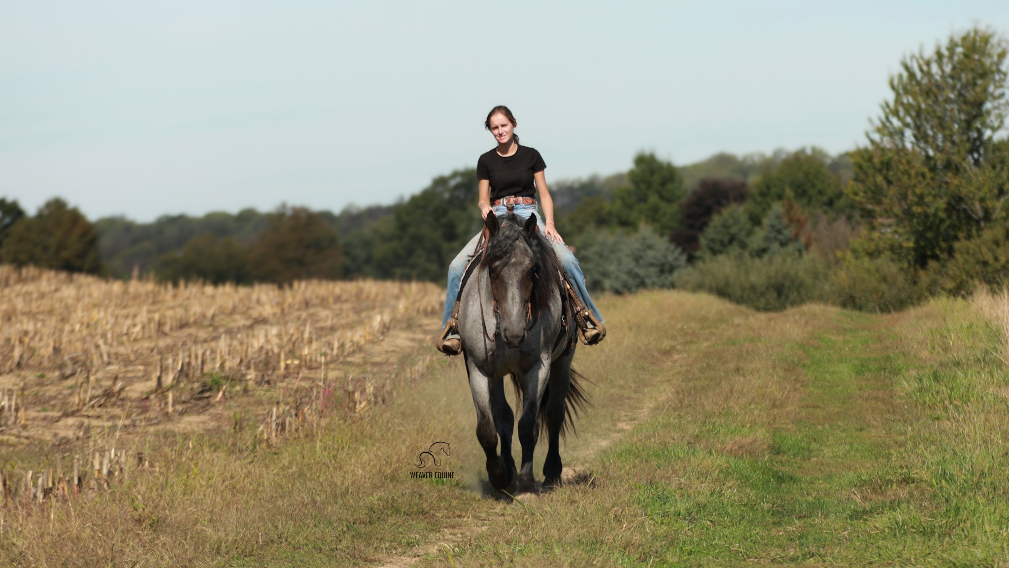 Description: Introducing a gorgeous blueroan gelding with great confirmation, mind, and a huge heart. Blue Boy is very well broke all around. He has been ridden in the arena. He will lope a circle beautifully! He picks up both leads correctly. He will cross most obstacles without a blink. Sidepasses nicely. Stops and backs up when asked. He will stand and wait at a mounting block all day long. Open and close gates from on top.