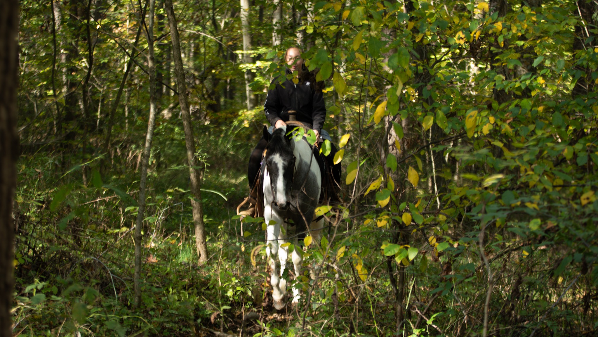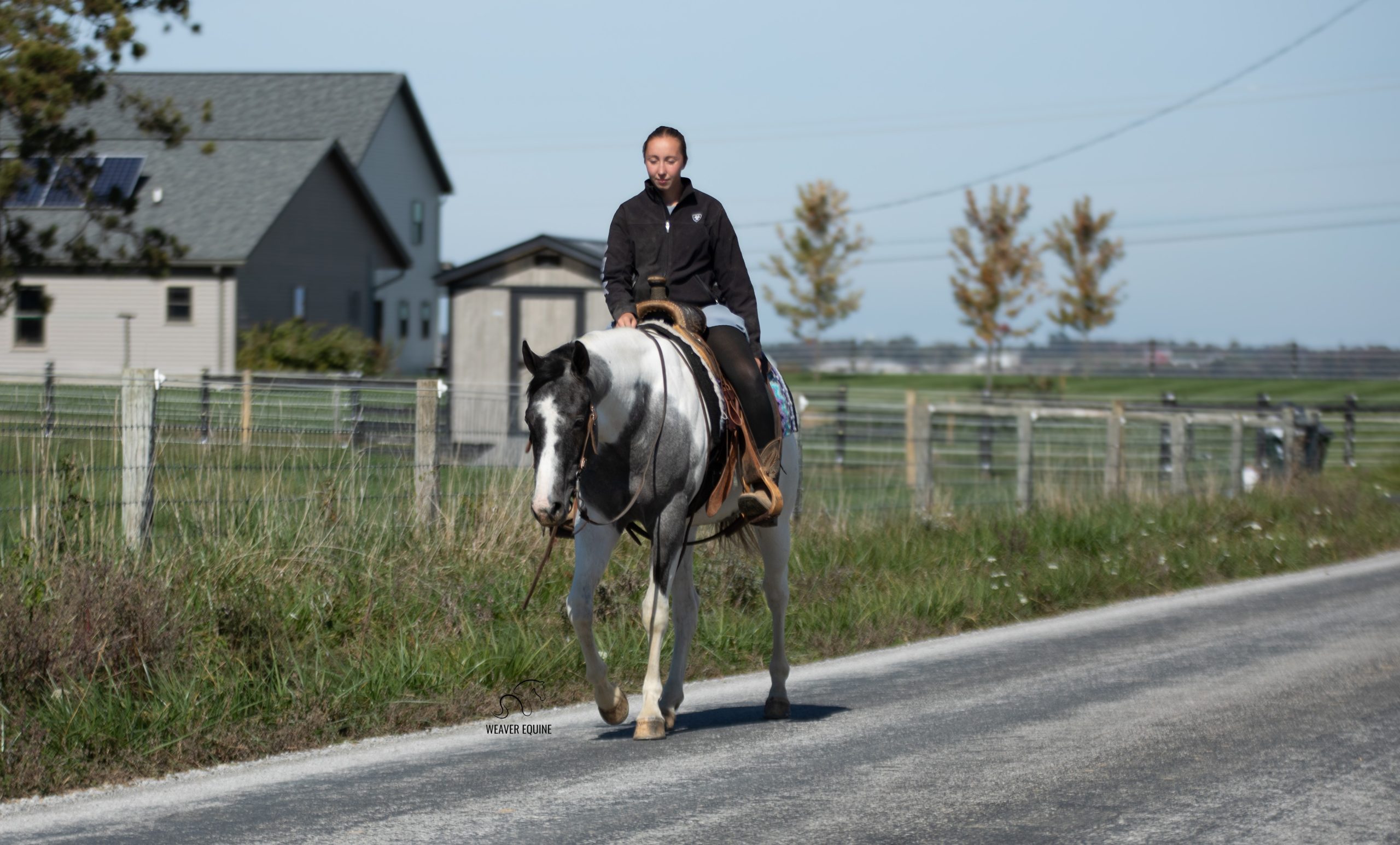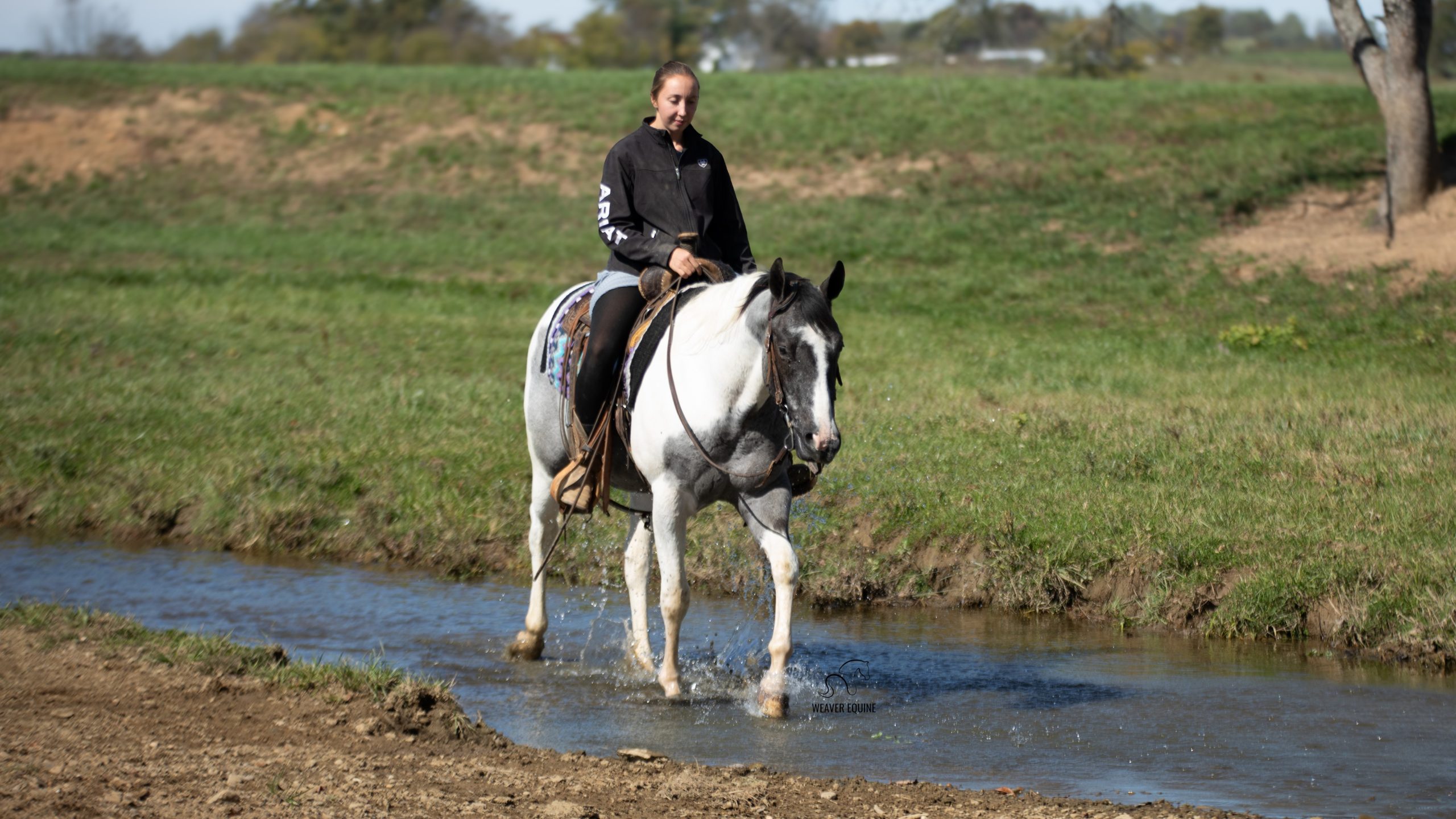 He does amazing when out on the trails. He does not mind riding in big groups or out alone. He conquers the hills with ease. Does not mind crossing creeks and steps over logs easily. He is also phenomenal out in traffic. He will stop and stand patiently when asked. Point and go type of guy.