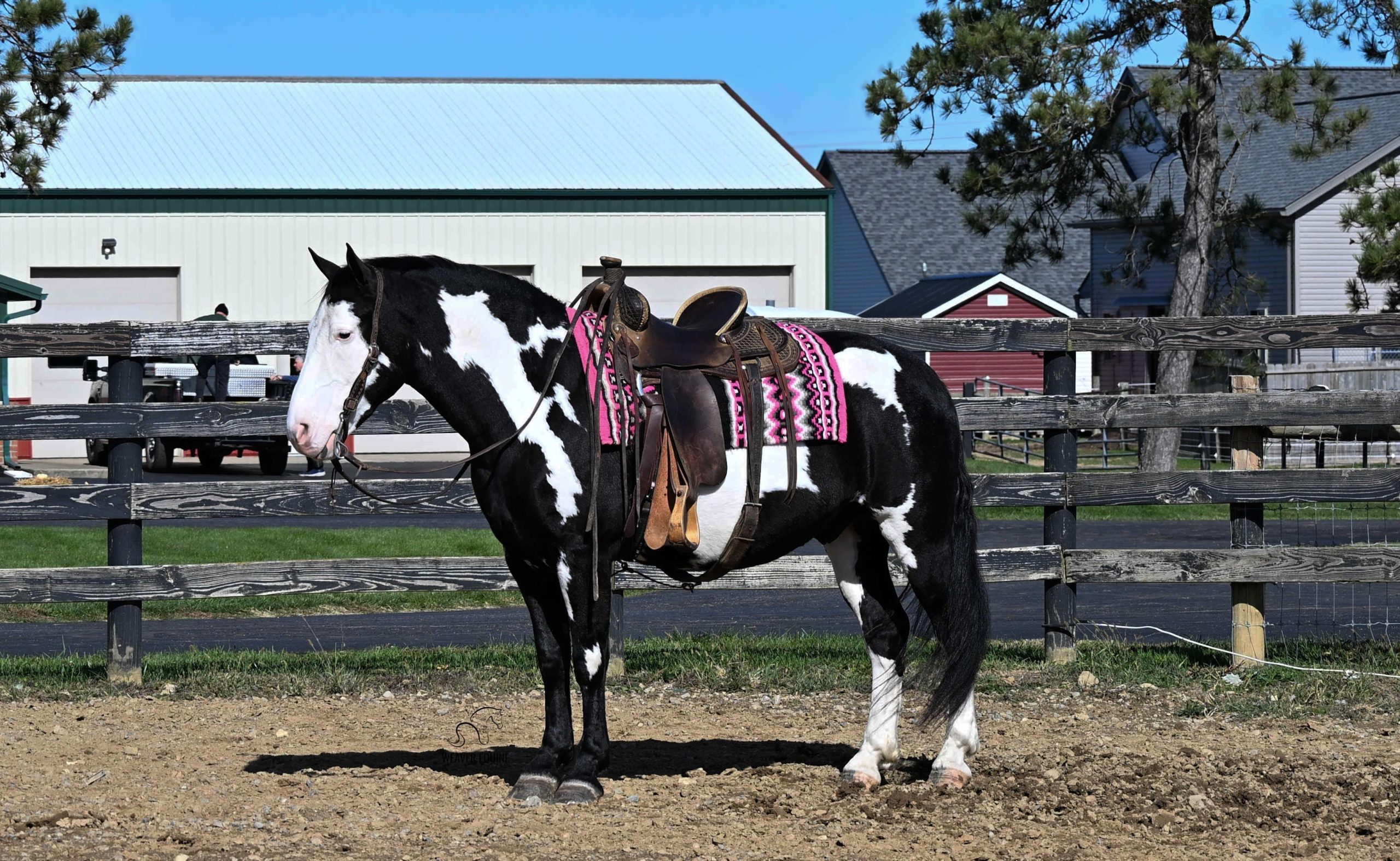 Description: Bruno is well broke to ride. He has been out on the trails, out in the traffic, as well as arena ridden. He does great on the hills. He will cross The Creeks with ease. He steps over logs. He does not mind riding out with other horses or out alone. He will lope a circle nicely. He has a nice walk trot Canter transition. He will stop and back up nicely when asked. He picks up both leads correctly. He will cross most obstacles with ease. He trailer loads well. He will stand at a mounting block patiently. Bruno is a unique colored guy with lots of experience. He does not mind the tarp or flag. He does great out in traffic. Stops and stands nicely at a stop sign.