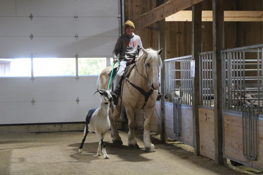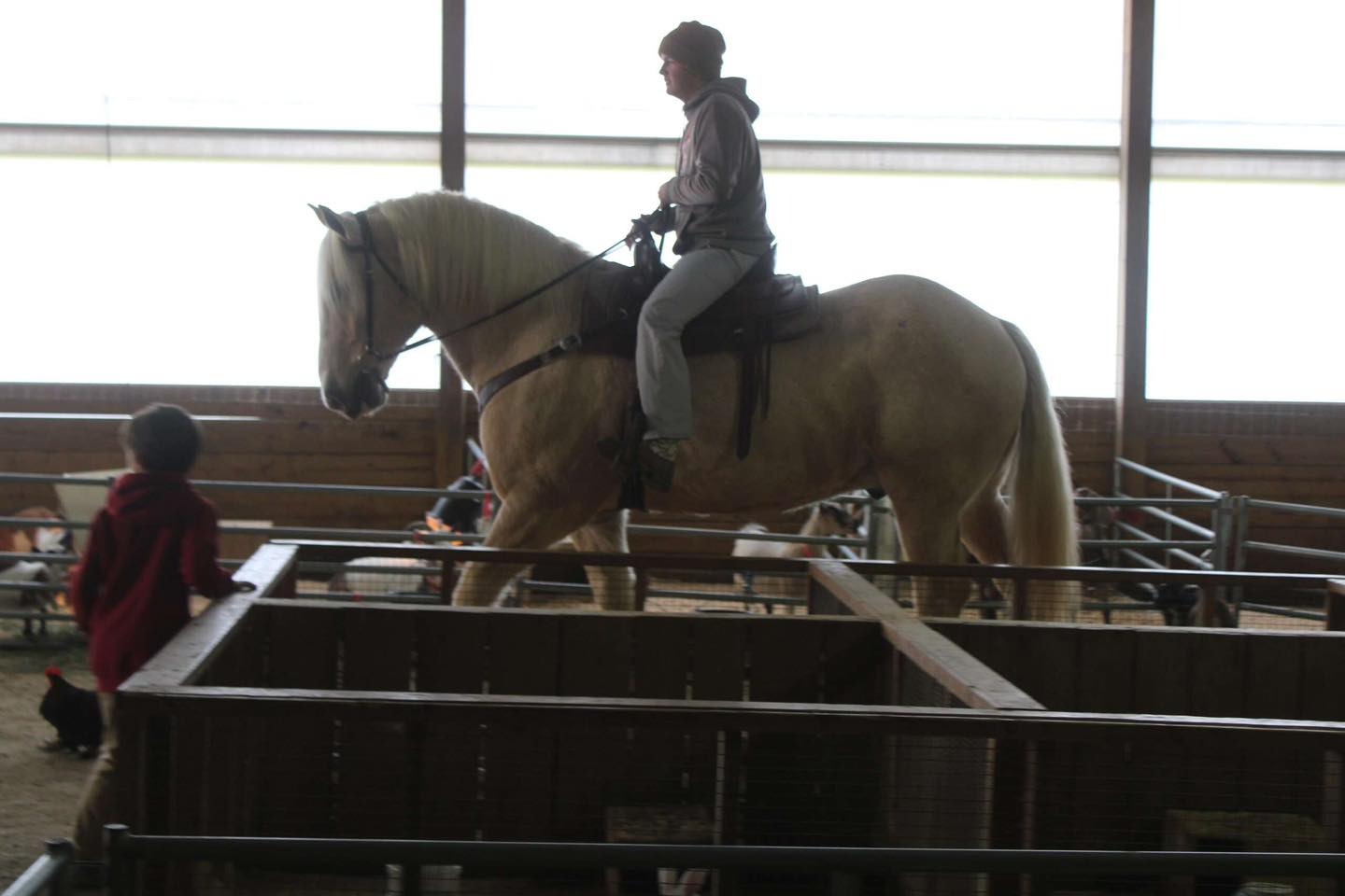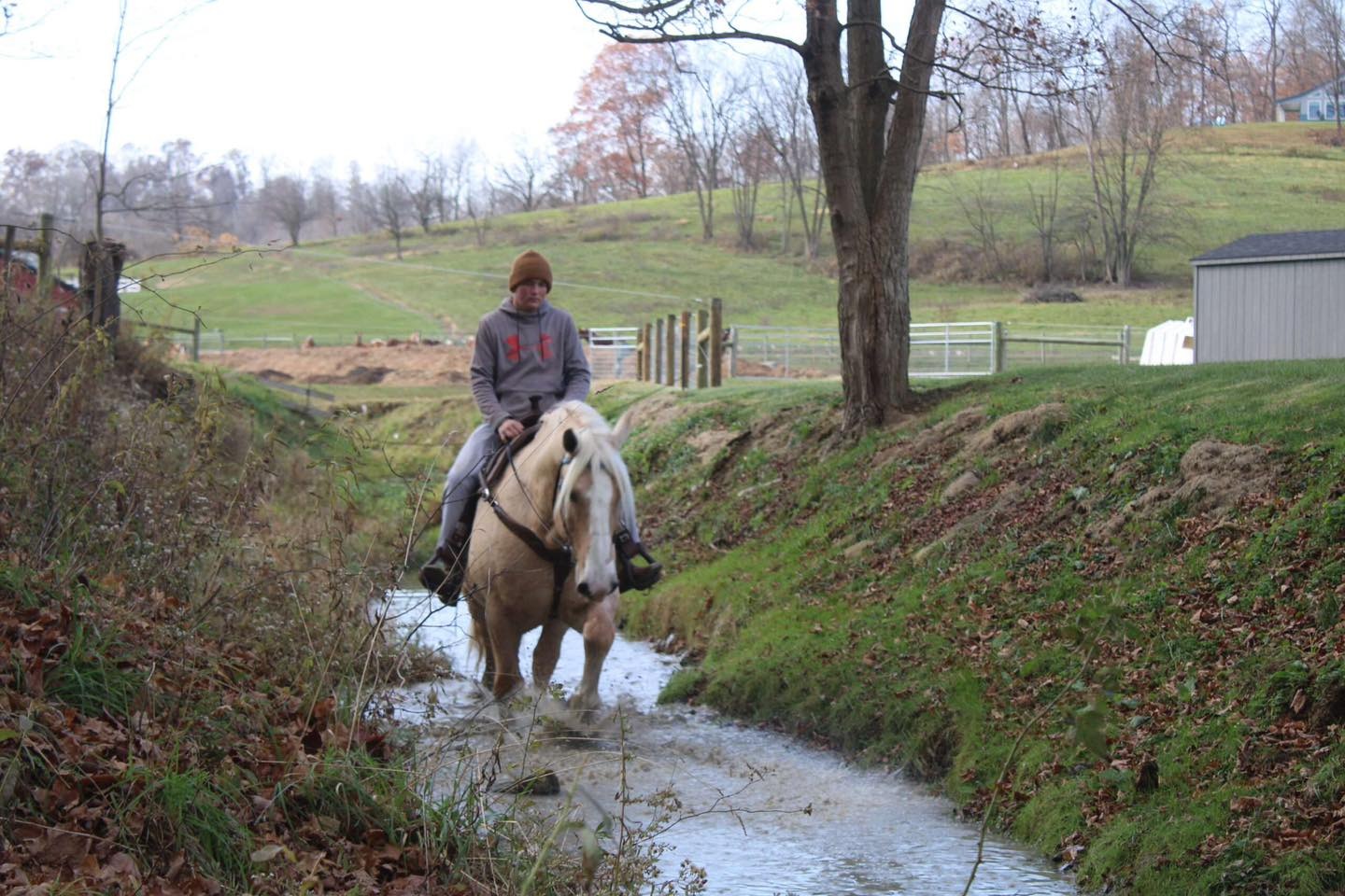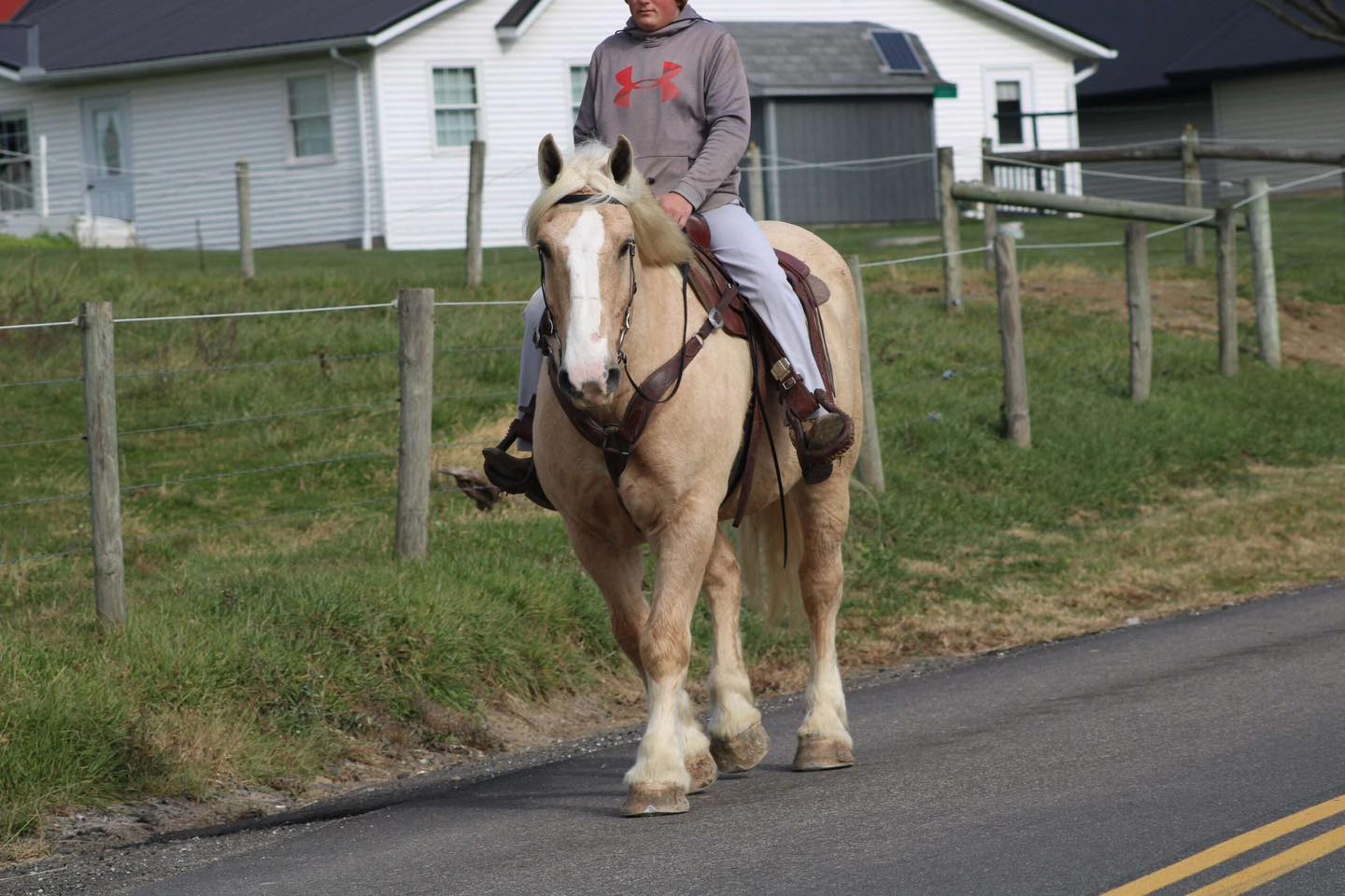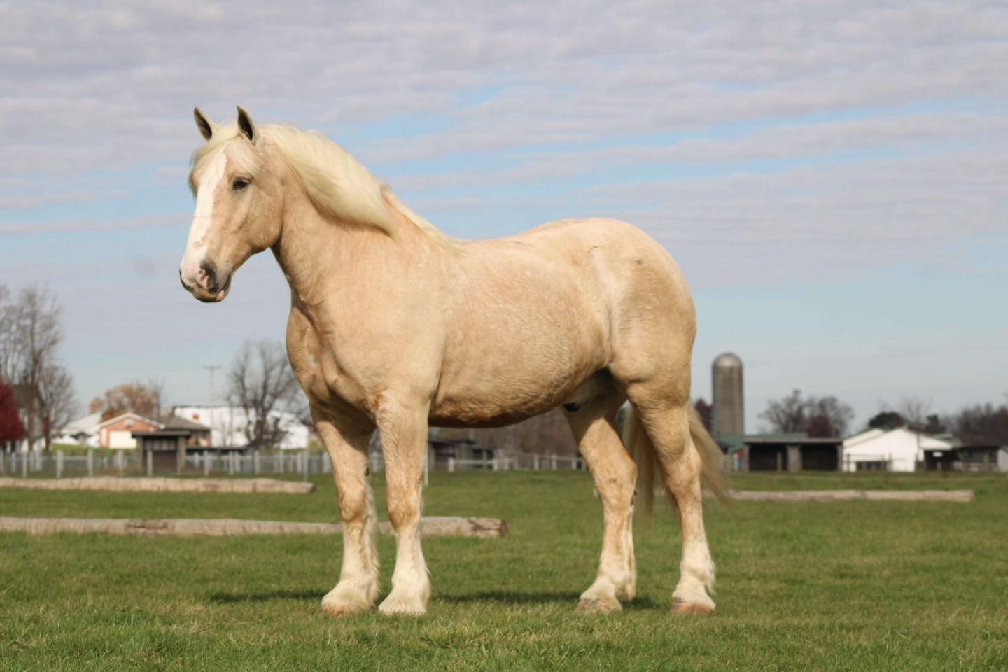 A Draft cross with a great mind and has the most unique color! He picks up both leads and rides very nice! Cappuccino has been used here on our farm to give rides and is great in crowds and also does well in traffic!!