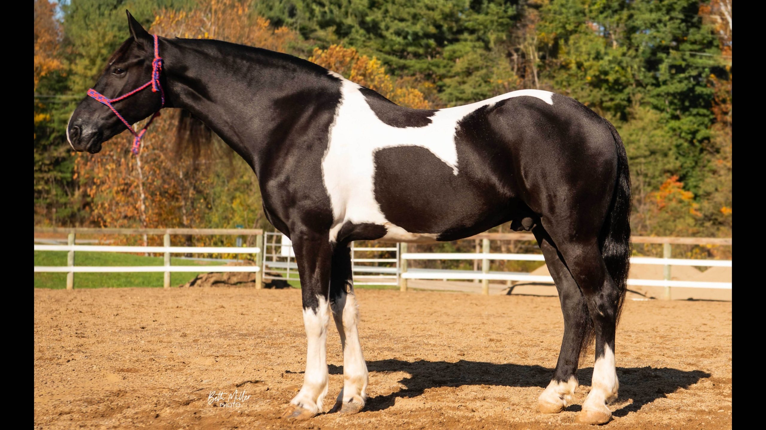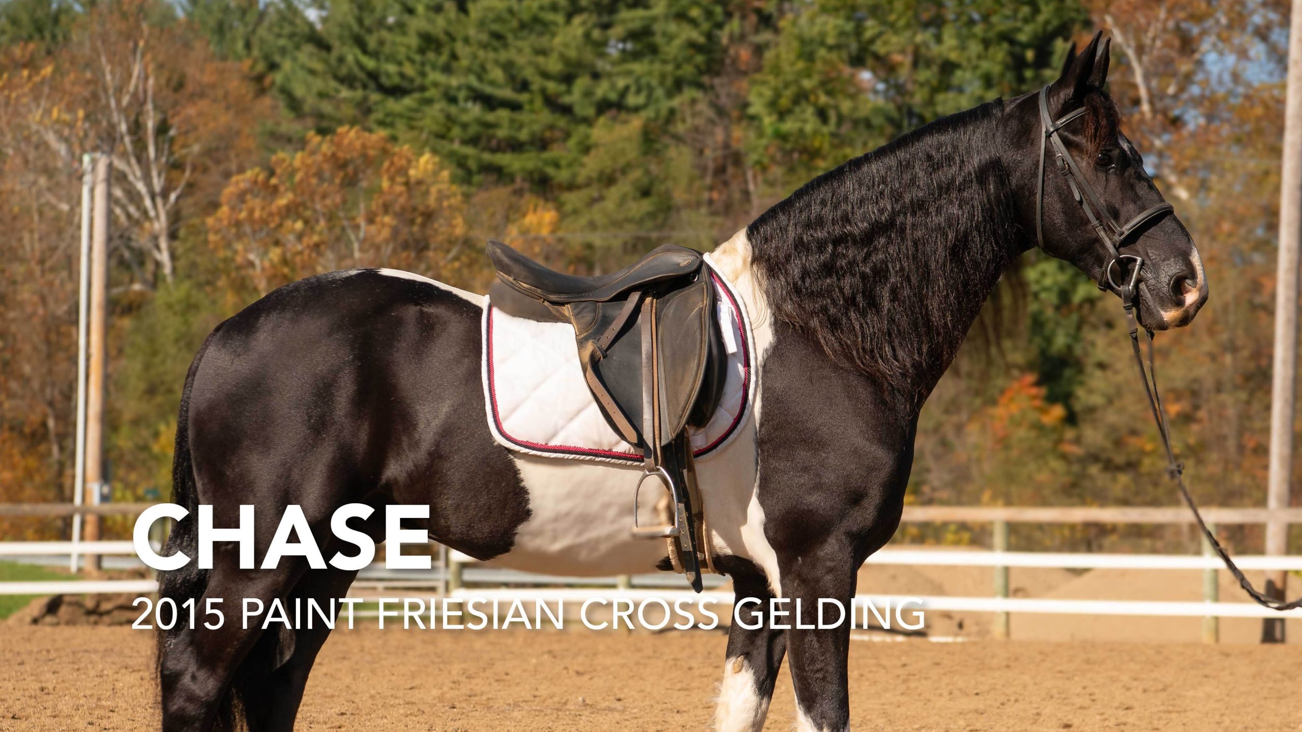 Description: Chase is a beautiful 10 yr old paint fresian cross gelding that is very well broke to ride and has also been driven, Chase rides English or western and has seen lots of trails and plenty of time in the arena , Chase has been well started on the jumps and would make and excellent dressage or eventing horse .