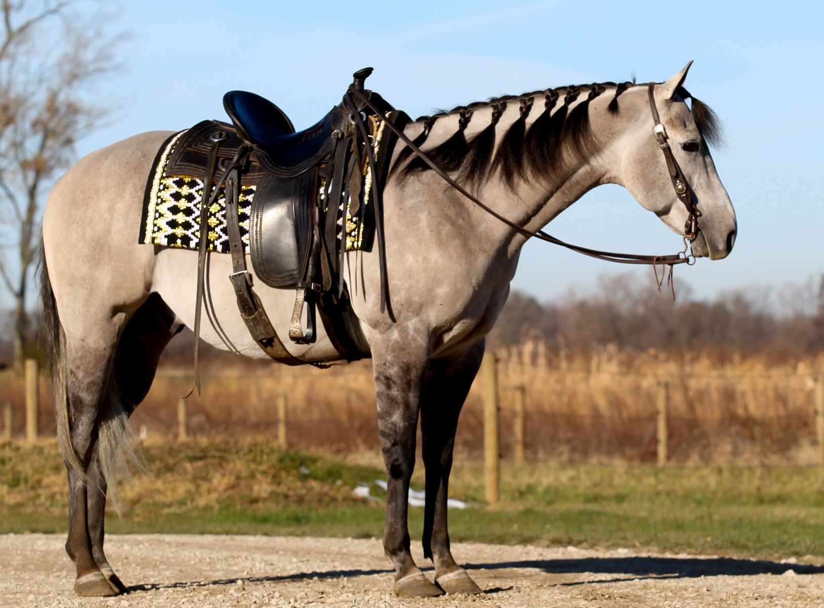 Description: Cody is one of those gentle souls ready to make your dreams come true! He can do arena and trail work with calmness and confidence. If you just want a quiet day and hang out he loves all the attention he can get. We have used him to give lessons to riders of various ages and abilities. Cody has a very comfortable walk, trot, lope. He is used to traffic, dogs, goats, and crazy kids! Zero maintenance. Cody rides bridle less and also will lay down for you! Make sure to check in on this handsome guy if you want that amazing equine partner! Feel free to reach out if you have more questions or to set up an appointment to meet him before the auction. 574 354 3434.