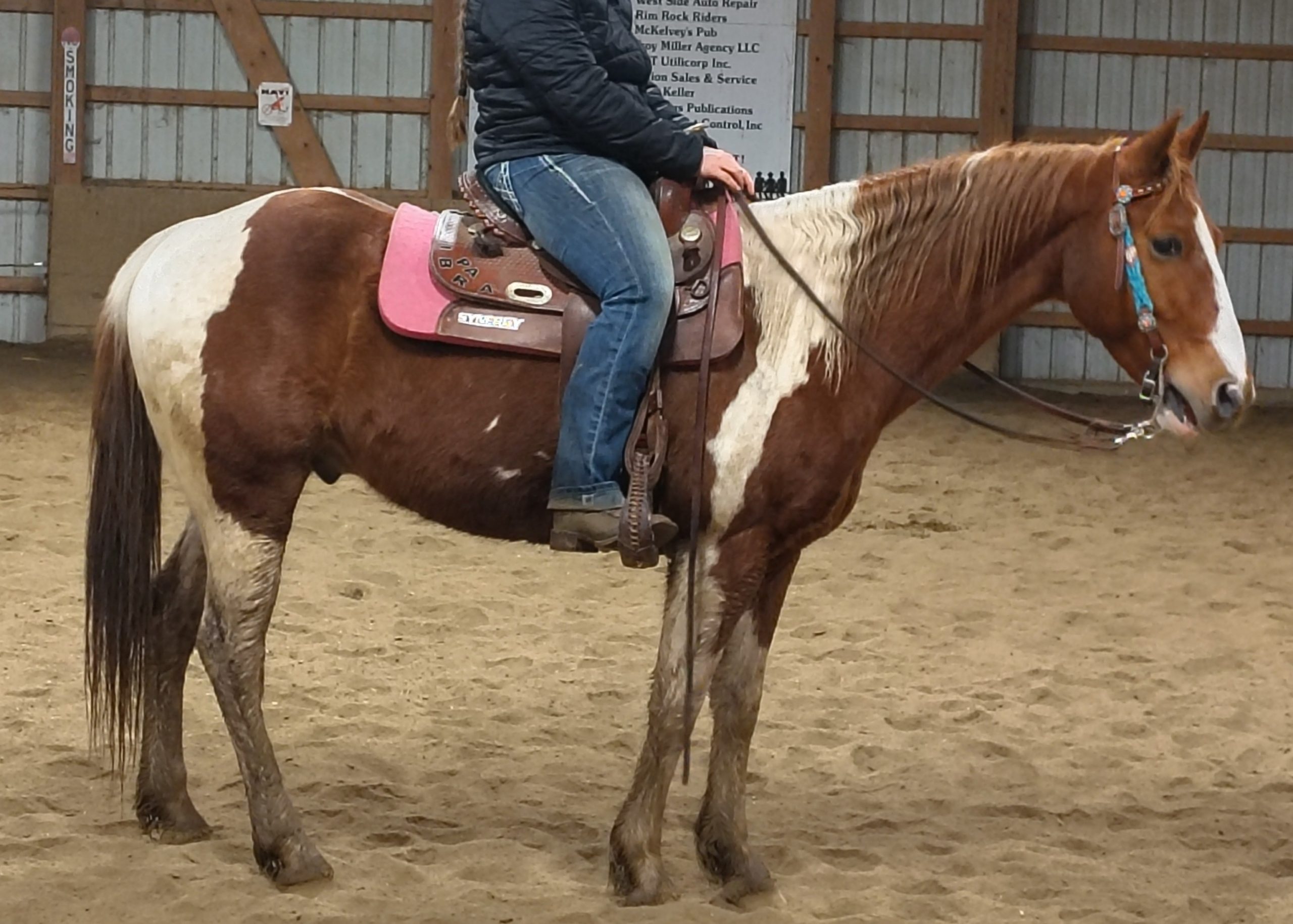 Description: Spike is a 10 year old paint gelding that has more buttons than a new truck he is very well trained neck rains lopes right off he will stand tied all day at a show has done play day shows with him loads on any trailer with ease gets along with others in the pasture does great in a stall no bad habits he is being ridden by a 16 year old girl