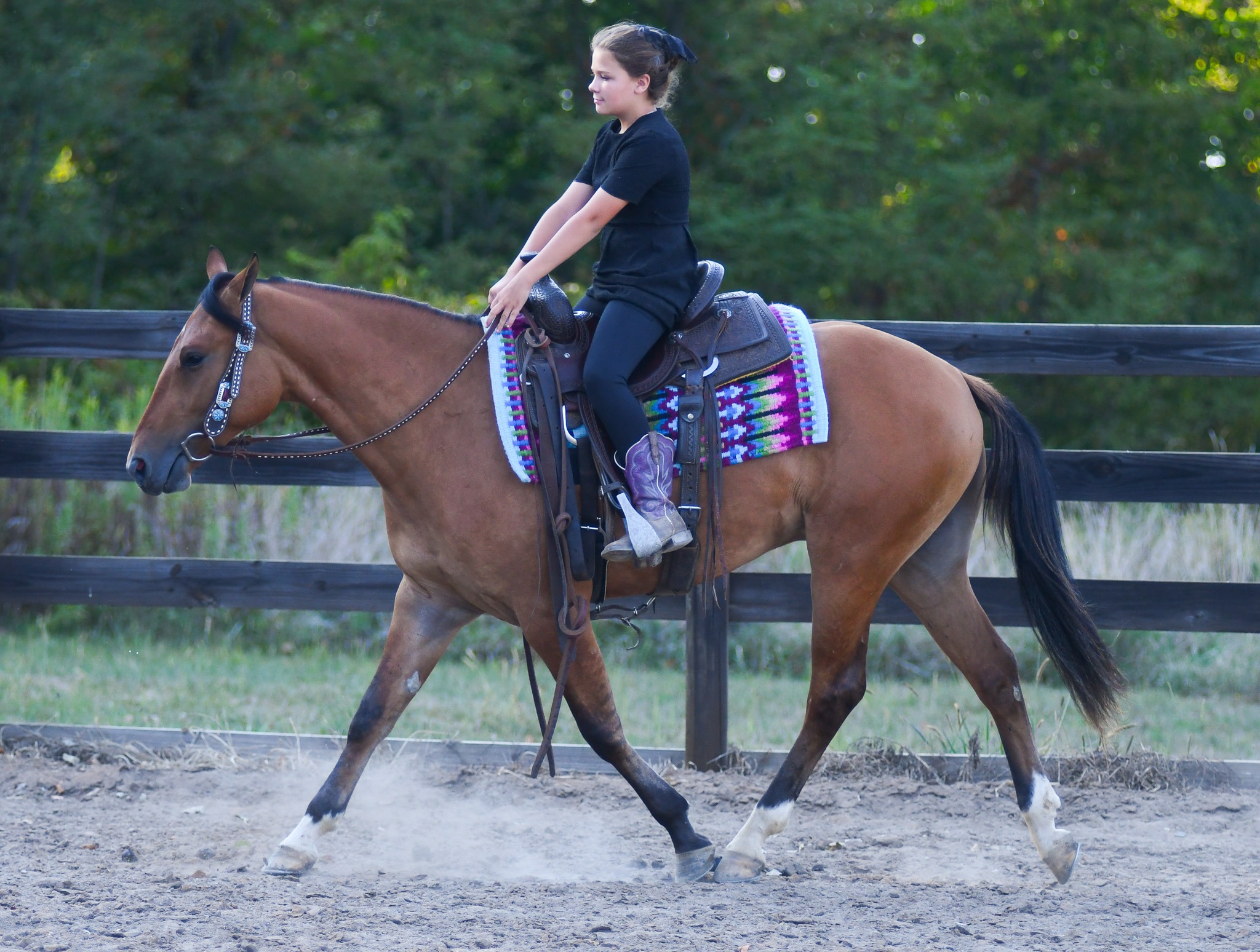 Description: It's hard to find a horse quieter and gentler than Diego. He is great for all levels of riders, including beginners. He walks, trots, and canters on either lead, and has a nice, soft mouth. Our 10 year old gets him out of the stall, tacks him up, and rides him by herself. He is fine going out by himself or in a group. He is fine around the tarps, bouncy balls, and many other things. He does not need to be ridden regularly to stay broke.
