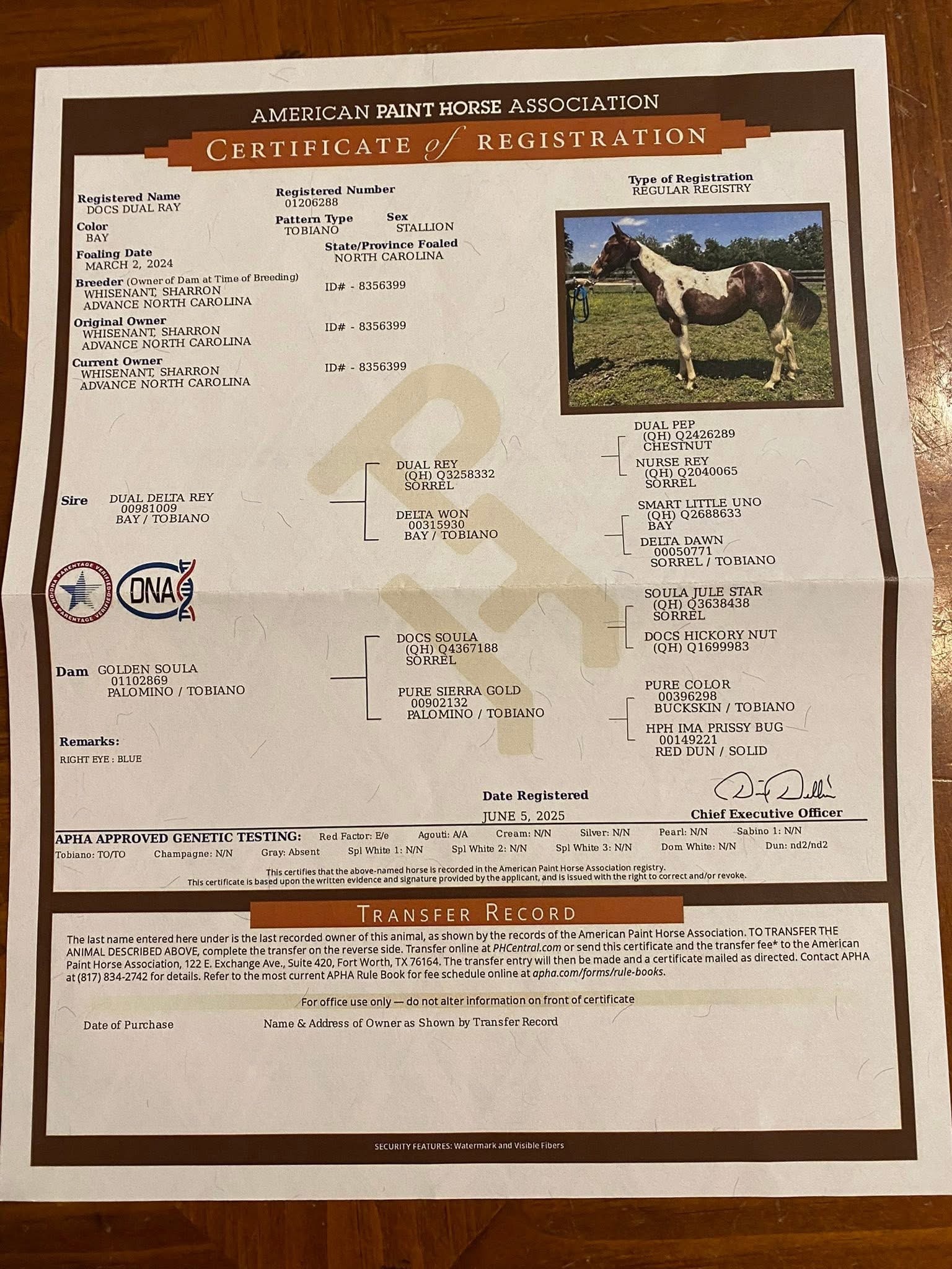 Description: ☀️2024 Homozygous Bay Tobiano Stallion (MILO)Docs Dual Ray (MILO) is breed with both high performance money earning parents in cutting,reining & cow horse!His sire Dual Delta Rey (APHA) NCHA earner of over $15k, a Top Paint Horse Cutting Sire with the highest percentage of money earned per foal and money earners vs progeny, by the one and only DUAL REY(sire of earners of over $47million). She is out of DELTA WON 3x APHA World Champion, earner of $48k, an own daughter of SMART LITTLE UNO (LTE $104,553/PE $1.6M+) 2nd Dam; DELTA (LTE $49,345, first paint inducted into NCHA Hall of Fame) && full sister to the one and only DELTA FLYER!His Dam Golden Soula is out of the one and only Docs Soula (NRCHA Open Derby Champion, LTE: $144,000) and out of a daughter of Cat Ichi (x High Brow Cat)- he was the NCHA Open Derby Champion, and has won over $300,000.Milo knows all the basics tying,loading,standing for farrier,taking baths & basic ground work! Don’t miss the opportunity for an amazing breeding stallion!! Standing at 14hhUTD coggins & shots