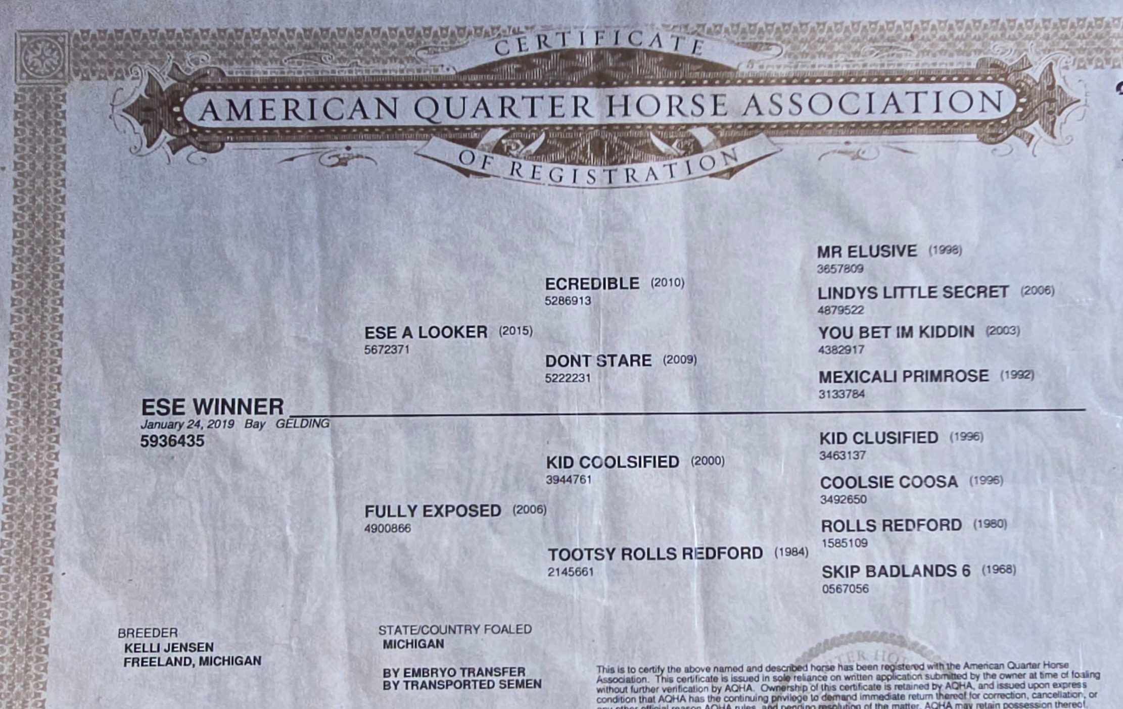 Registered with: AQHA
