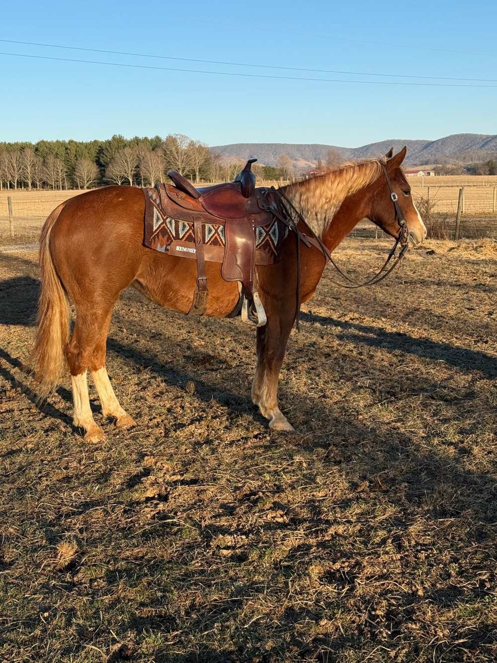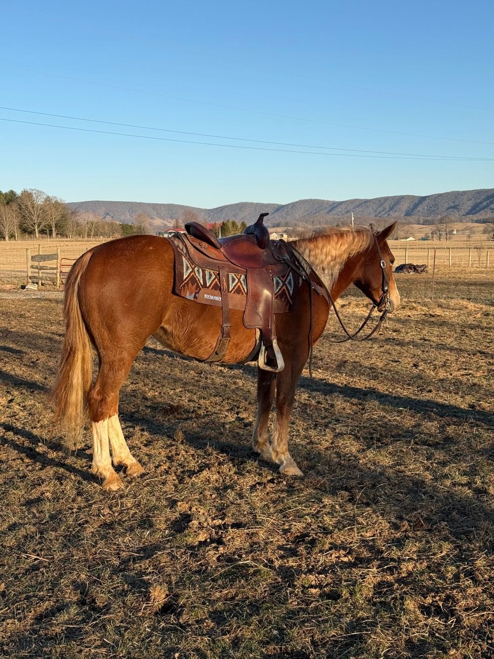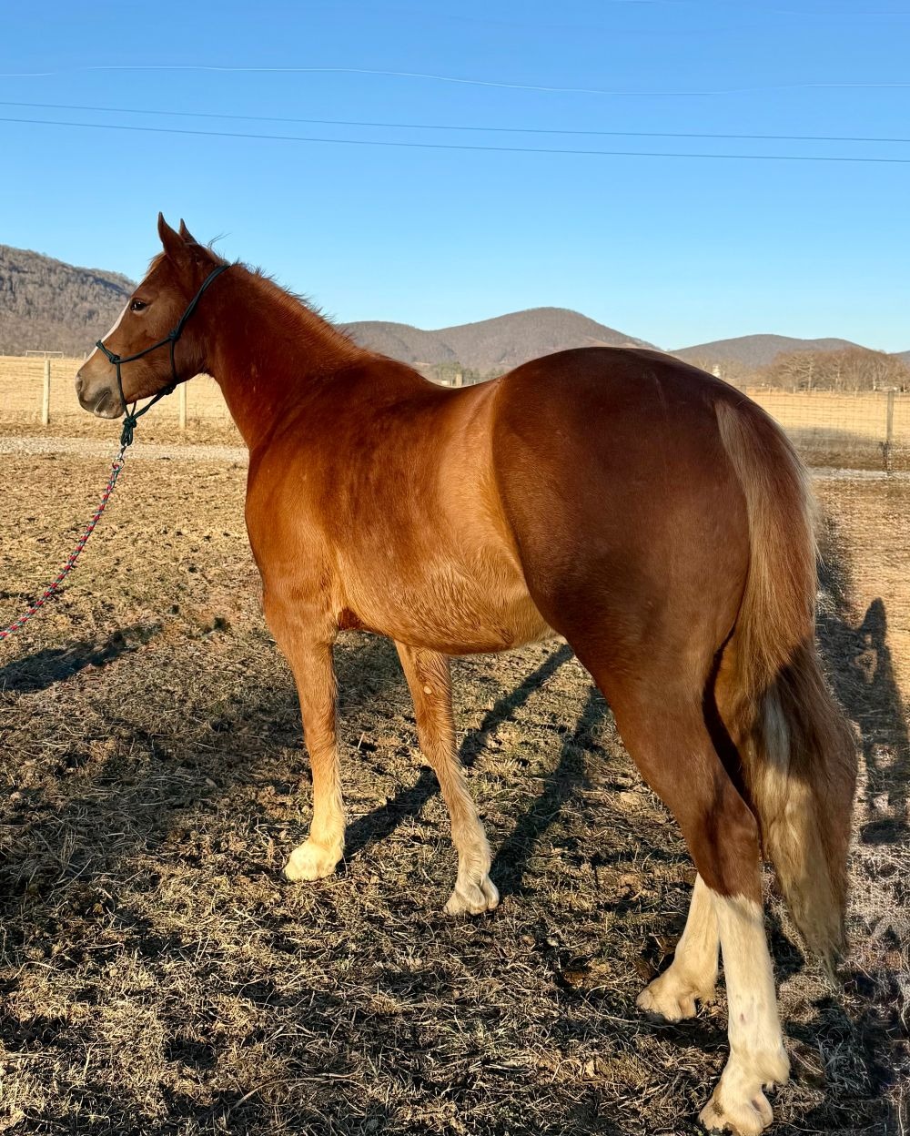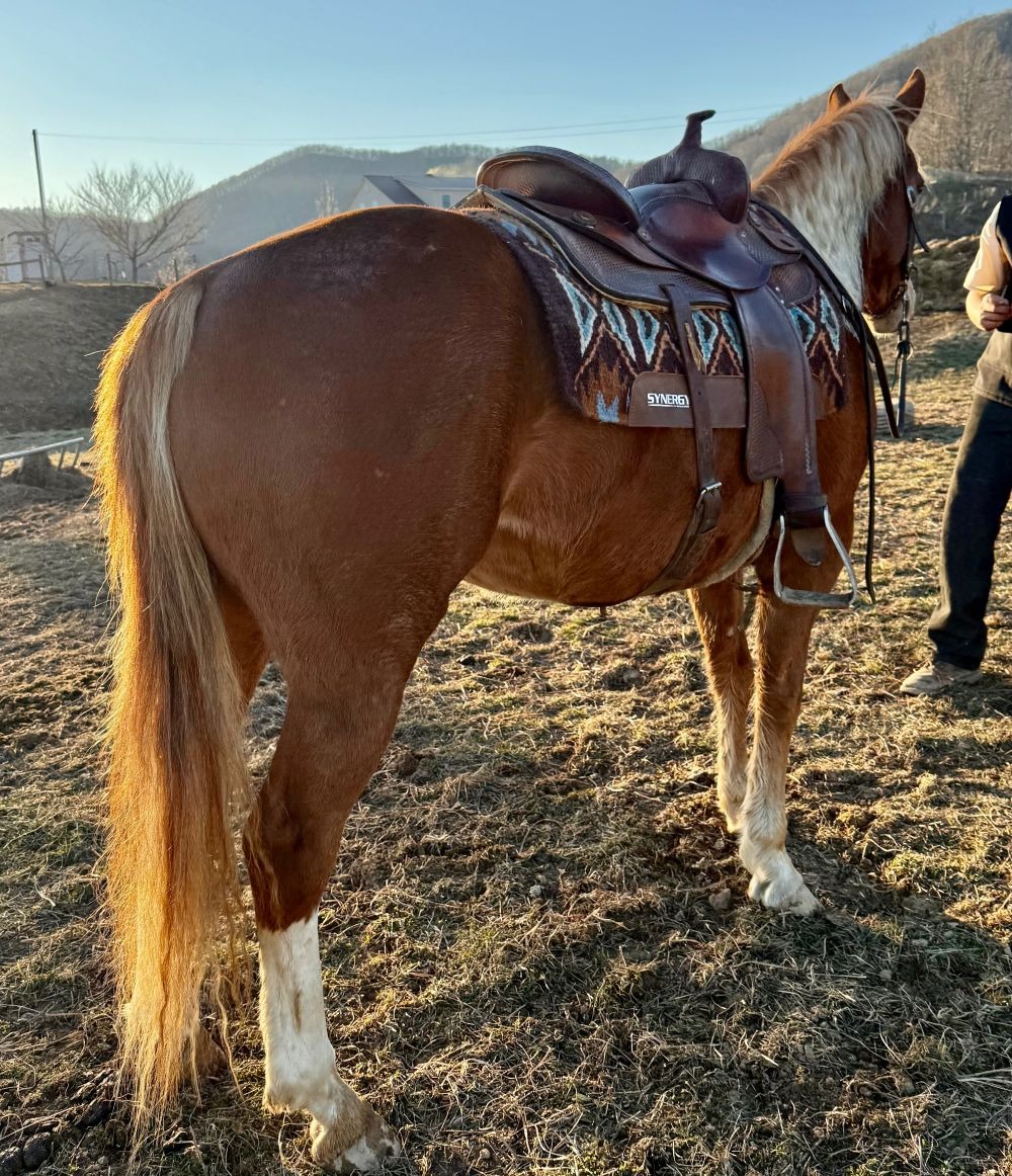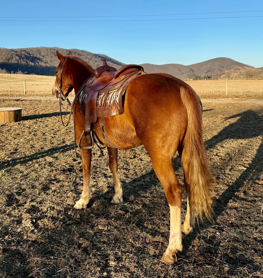 Description: Jill is a very pretty mare born on our farm. She has been training for about 60 days and improves each time you get in the saddle. She is willing and easy to get along with going where you point her to go. She is an easy keeper and no problem to catch in the pasture. She is selling sound with more information to come the day of the sale.