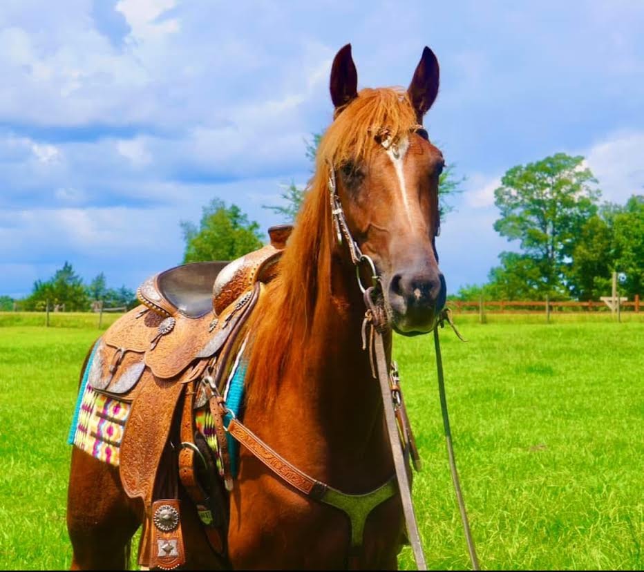 Description: “Gin and Tonic at Midnight” Genny is a 4-year-old registered Sorrel Tennessee Walking Horse mare sired by World Grand Champion “Gens Black Gin.” She stands 15hh, is great on trails, goes through water, has a super smooth gait, side passes, ground ties, and would make a great all day/country pleasure show prospect. A great mare and is selling 100% sound.
