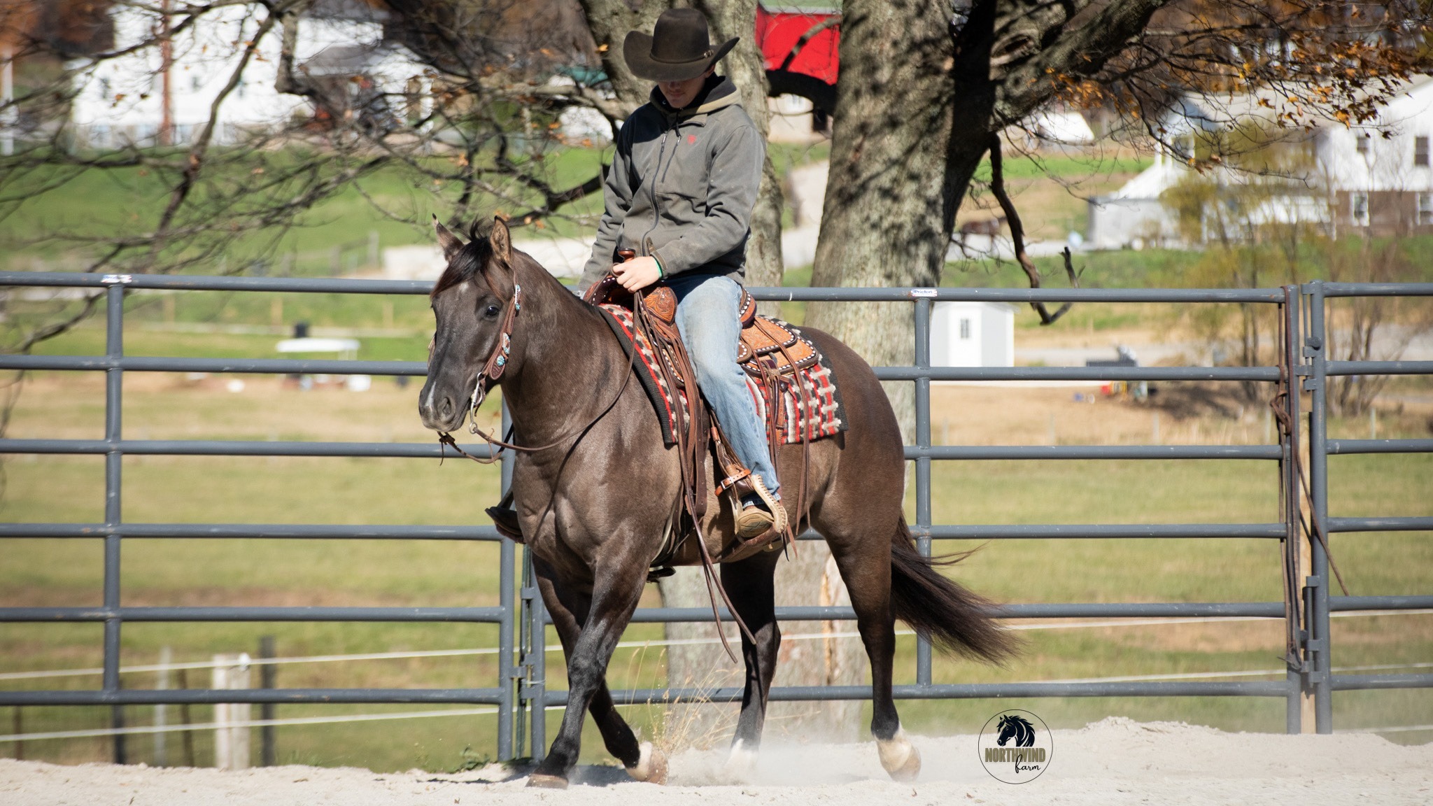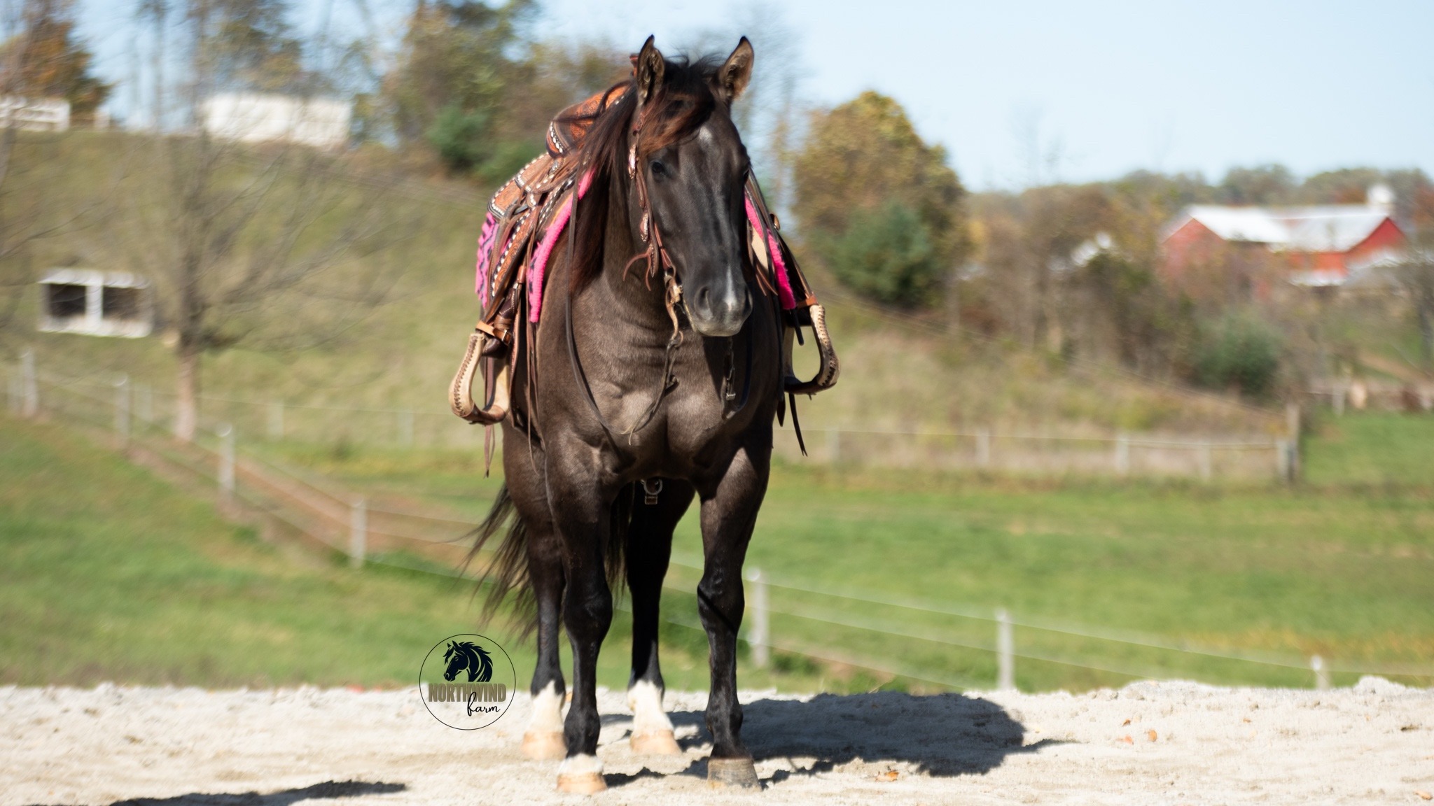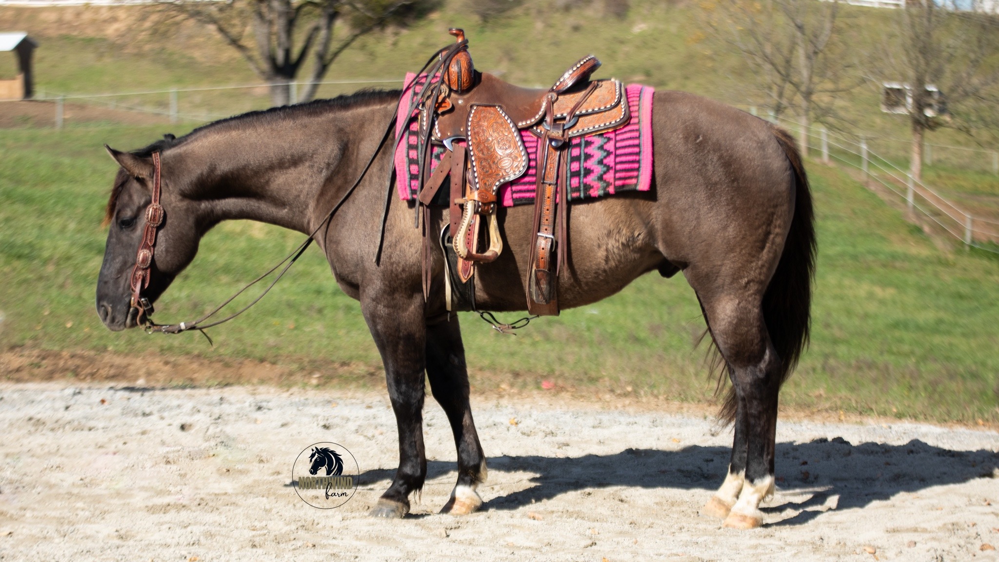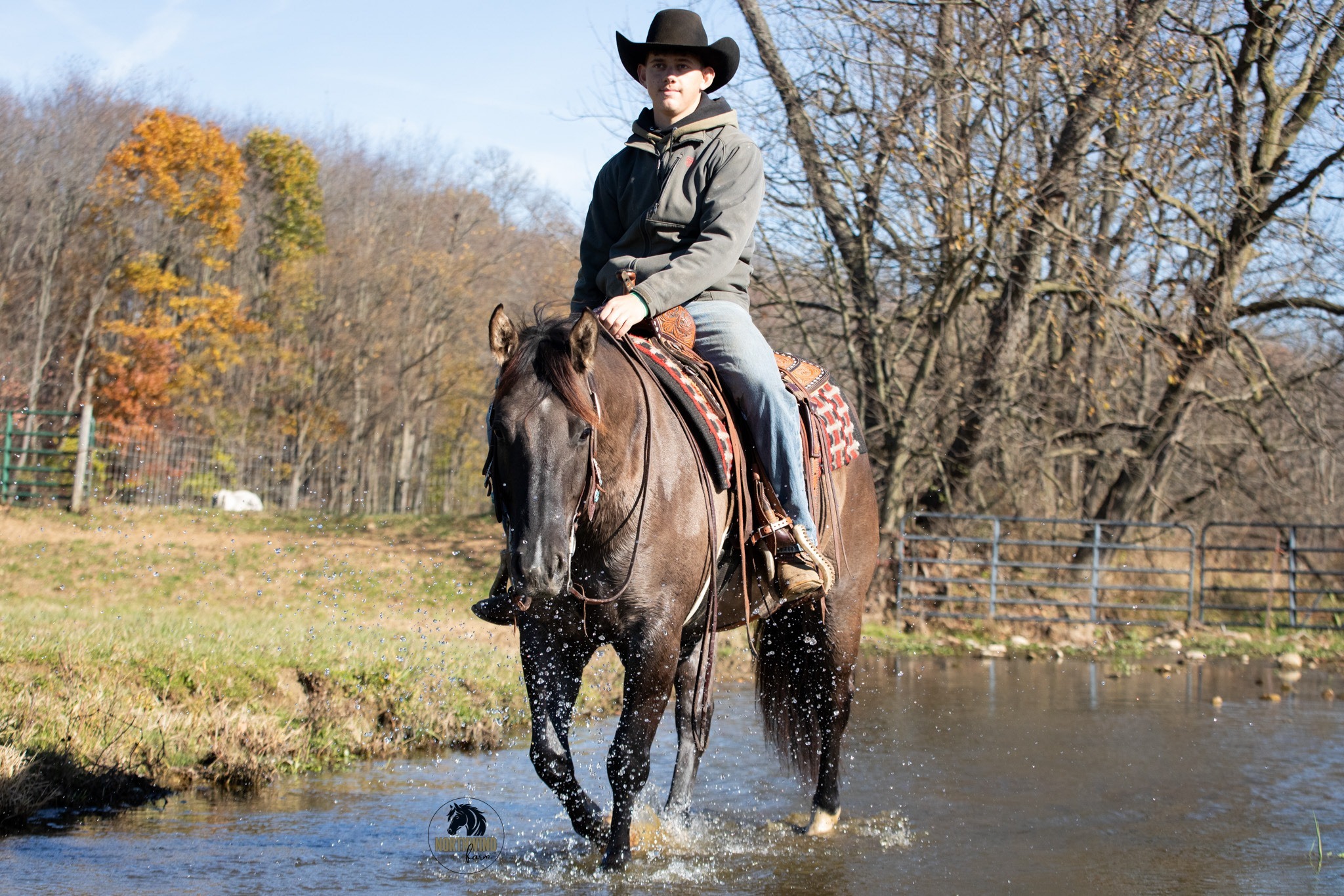 Description: Gunner is a 4 yr old grulla AQHA gelding standing at 14.3hh. Gunner is well broke to ride! He rides great in the arena and out on the trails. He will pick up both leads, he stops nicely and has a good back up. He will neck rein and move off of leg pressure! He has a slow pivot and an easy side pass. He will go through all the obstacles with no issues. He doesn’t mind the tarps or the ball. He is confident out on the trails! He has been around farm equipment and dogs. Gunner is a very fun horse to ride! He is 100% sound! Contac Lisa: 330-473-3521