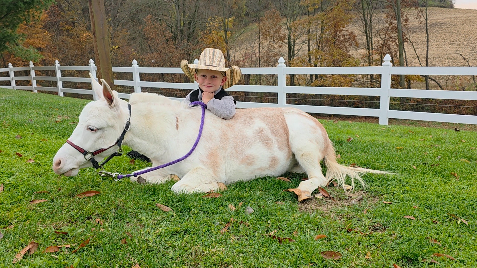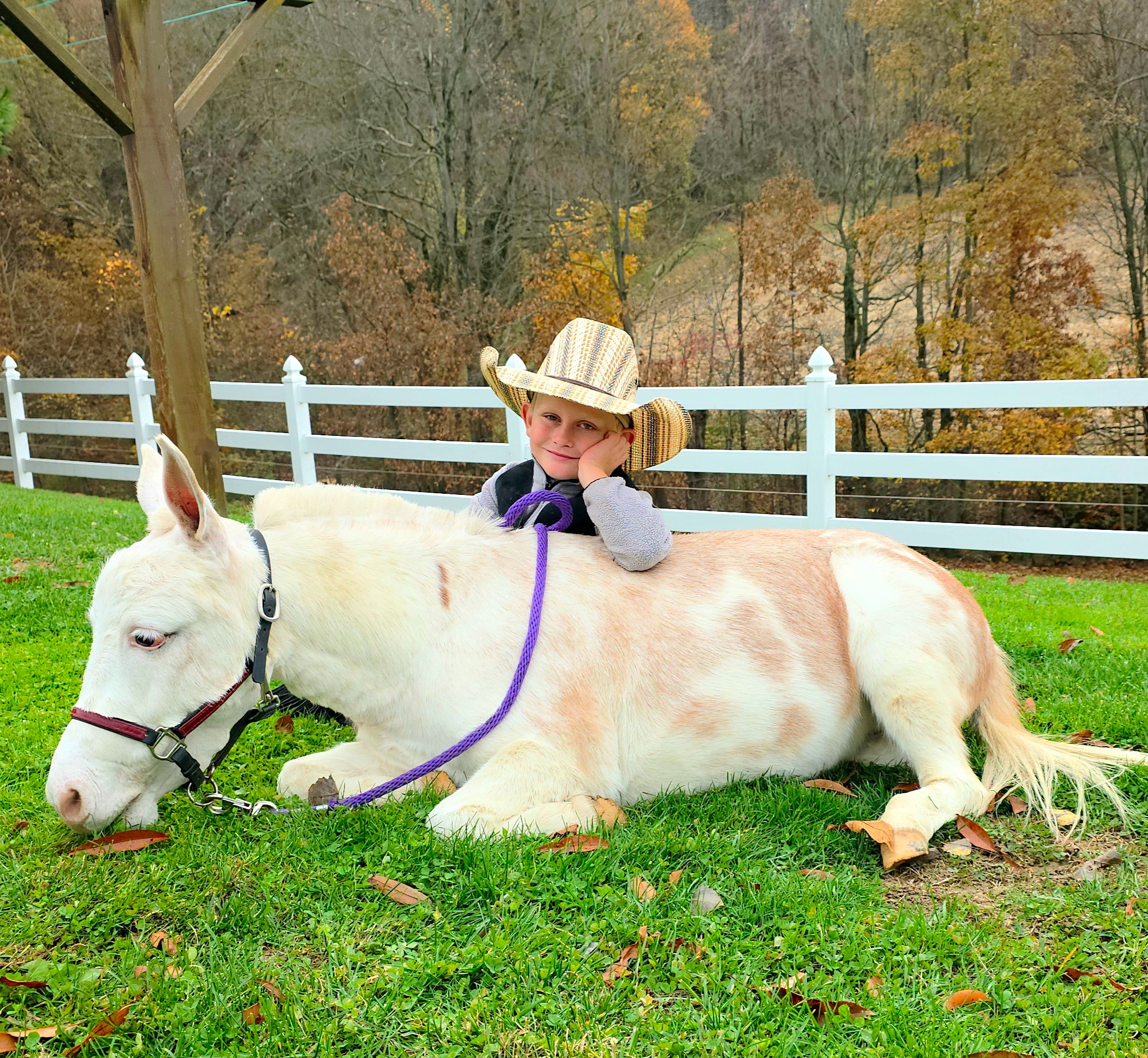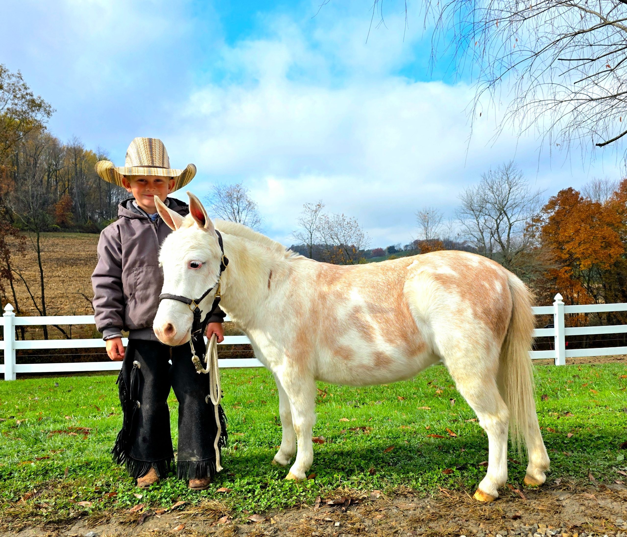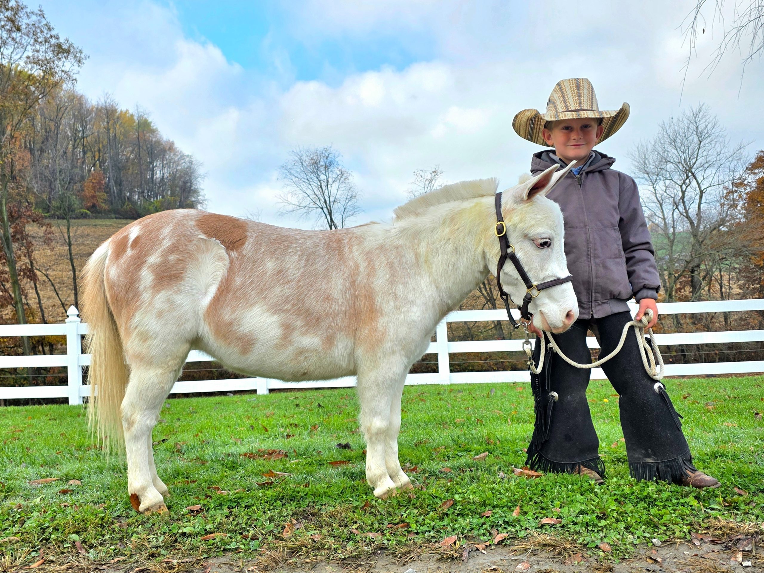 Hazel is a fantastic rides and drives mini mule, ready for any adventure you can dream up! Whether you're looking for leisurely trail rides or fun drives around the property, she's game. She's gentle, smart, and has a personality that will steal your heart.