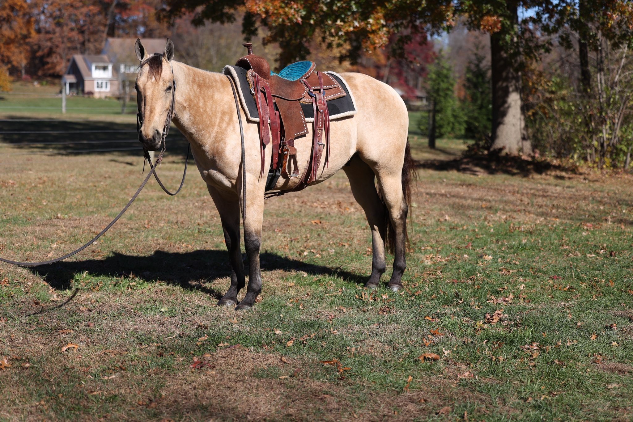 He's been to the big woods several times (alone) and negotiated every obstacle that we encountered, calmly. He is young but shows great potential to be a faithful partner. He is an easy keeper, turned out with mares and geldings on a round bale. Good for the farrier, vet, and does what is asked of him. Super smooth Jog and a good long trot. He has unlimited potential as a RR or serious trail mount.