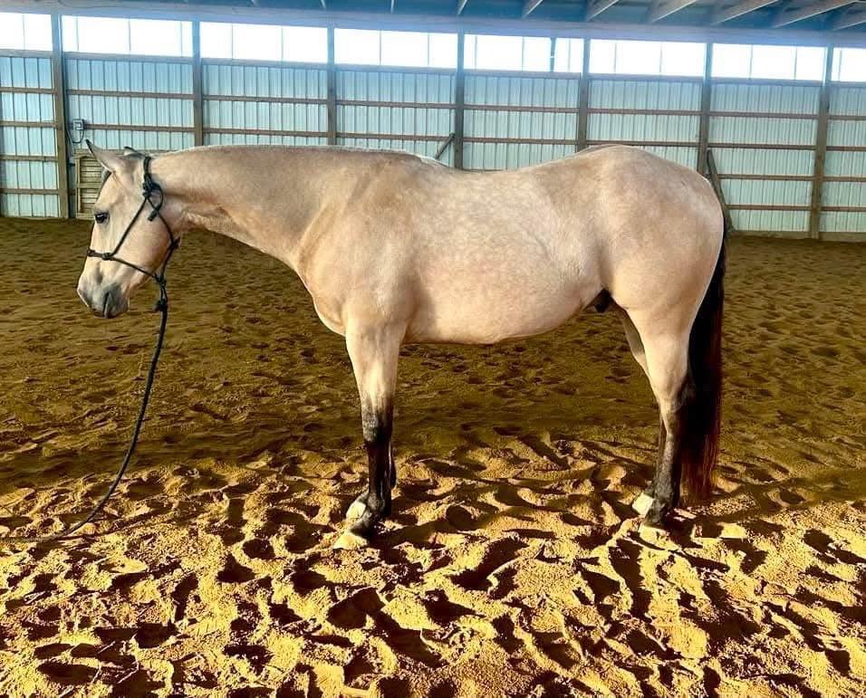 Description: Ozzy is a 4yr old cool Cowboy Cadillac gelding. He will try whatever is asked of him. Has a great foundation. WTC, sidepass and change leads both directions. You can move his hip and shoulder independently. Crosses water and elevated bridges.