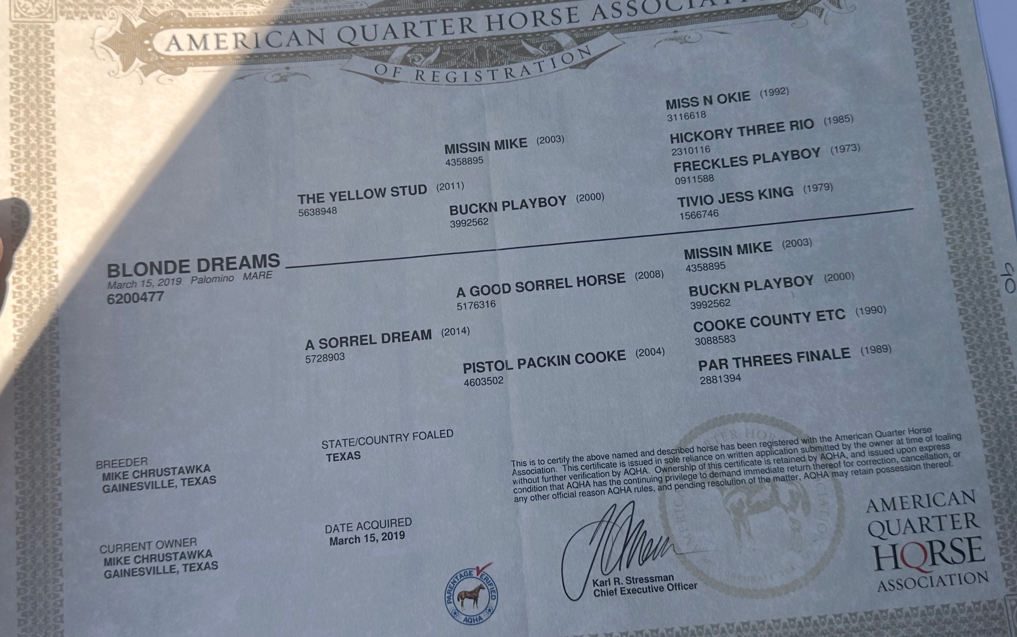 100% sound! WTL both ways, she has a good stop on her and is very athletic. Has been used to push steers at the roping pen. Will collect up and move off your leg. Safe and easy to get along with. Same horse every time she’s pulled out wether it’s a week or 2 months. She has been trail ridden off for the weekend goes where ever you point her crosses water, logs, ditches, is not spooky