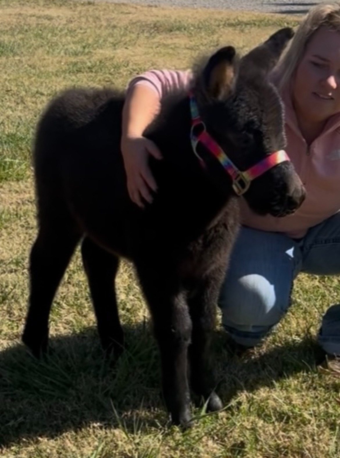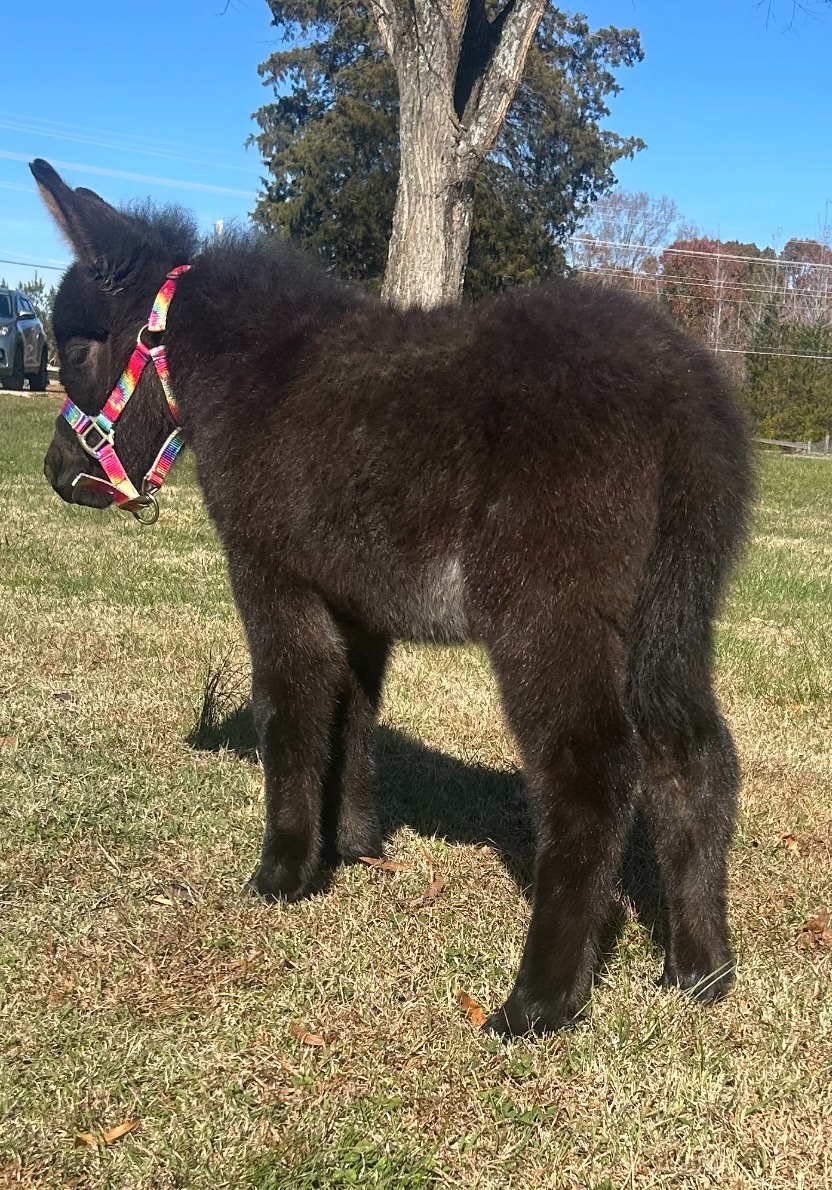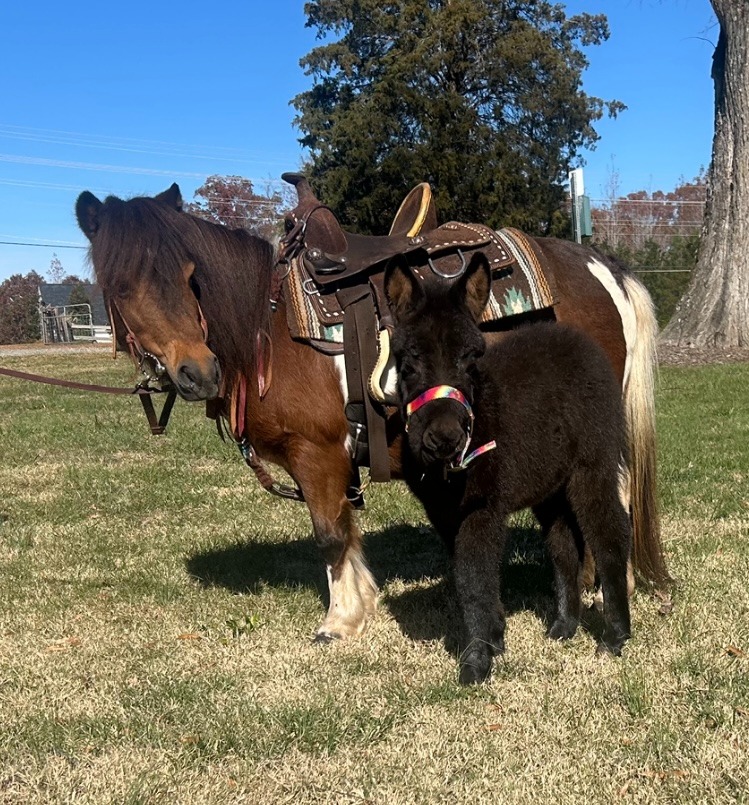 “Lollipop” is a 8 year old paint mare pony that is gentle for the kids to ride and handle. She sells with her adorable black mule baby “Candy cane”