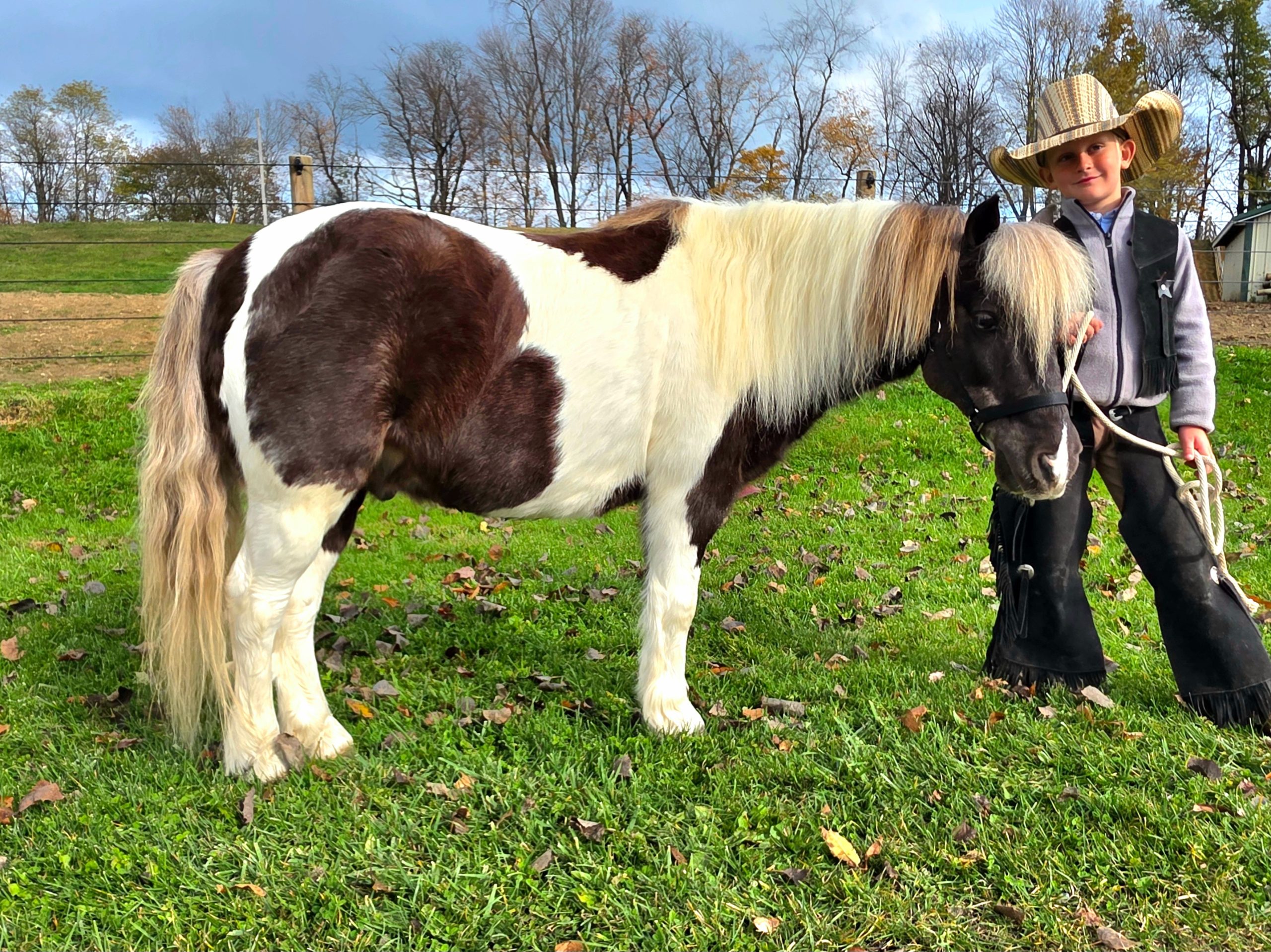 Searching for a super handsome, incredibly versatile, and delightfully chubby companion? Your search ends here with Lucky! This eye-catching dapple chestnut and white pinto pony is ready to be your family's next superstar.