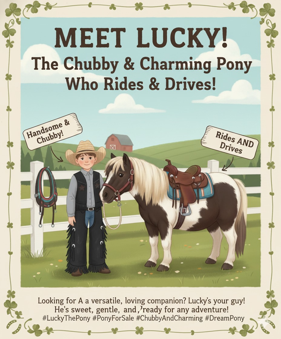 • Drives Like a Pro: Hook him up, and Lucky transforms into a miniature powerhouse! He's experienced in harness and loves to drive, making him perfect for parades, pony cart rides, or just cruising around the farm.