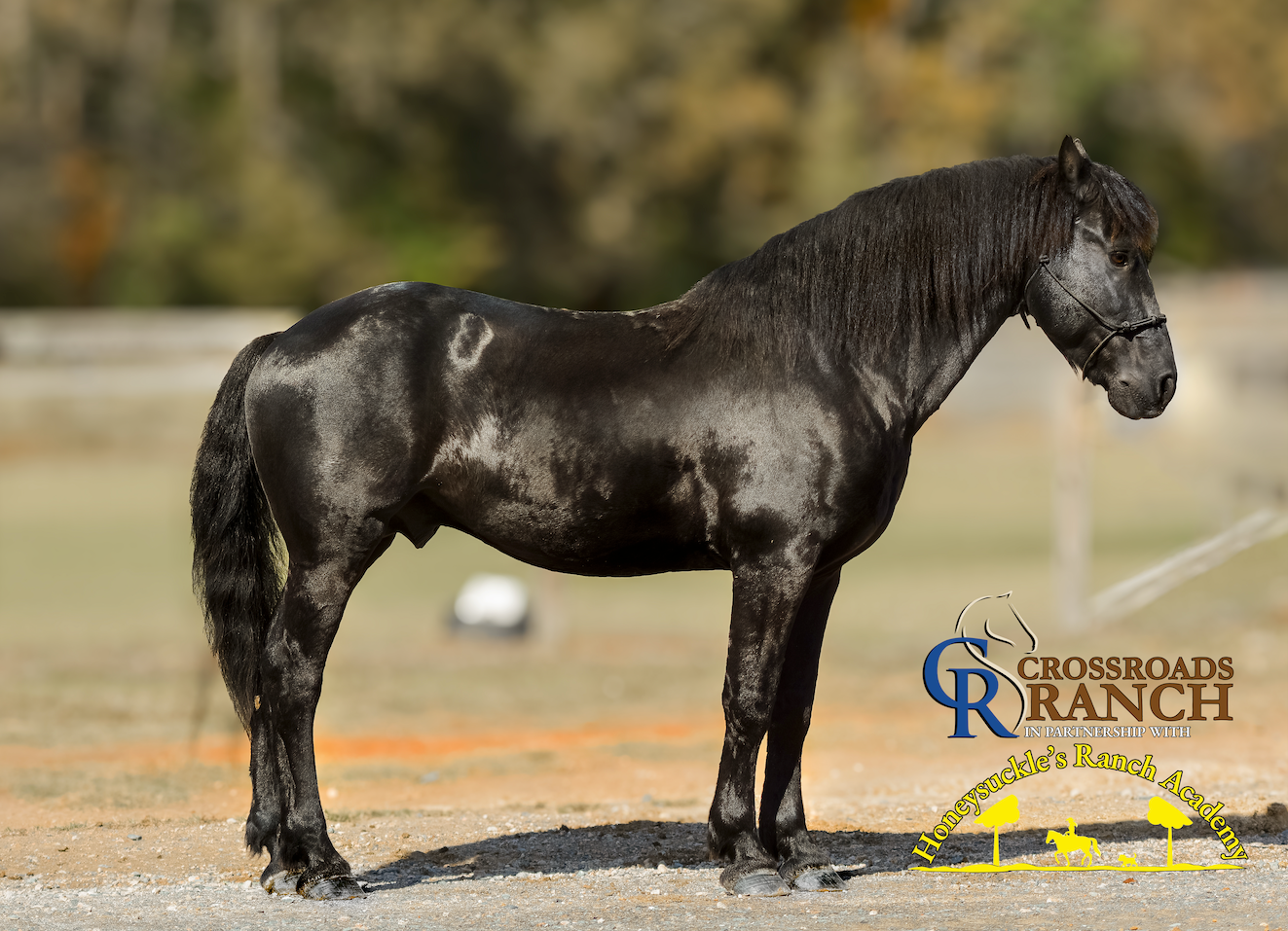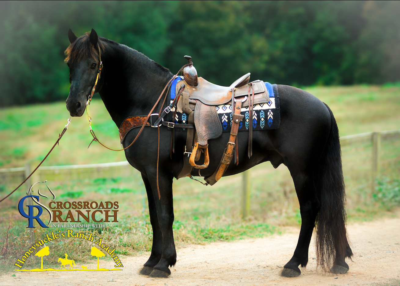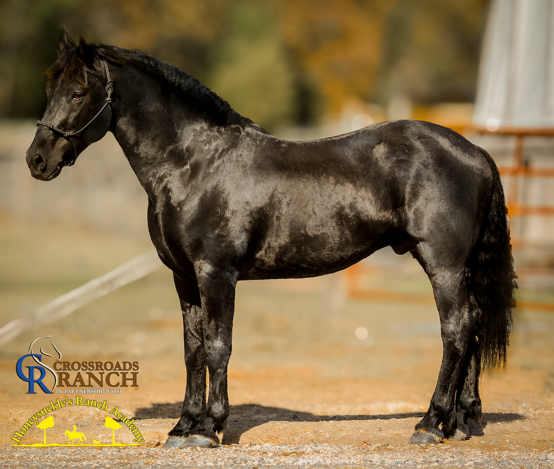 Description: MILO – Friesian Sport Horse Stallion. Versatile. Intelligent. Unflappable.Milo is the definition of a true all-around horse. A stunning Friesian Sport Horse stallion with the heart of a gentleman, he does it all — and does it well. Whether he’s under saddle, in harness, on the trail, in the hunt field, or teaching a lesson to a child, Milo delivers calm confidence and athletic precision every time. This exceptional stallion rides English and Western, competes in Western Dressage, drives beautifully, swims, and fox hunts with the same steady temperament that makes him a barn favorite. He’s as trustworthy as he is talented — quiet, willing, and endlessly adaptable. Milo is exceptionally mannered around mares, even in heat, and is known for his gentle nature and high intelligence. He learns fast, performs willingly, and brings a steady presence to any environment — from the chaos of a show ground to the quiet of the trail. A grandson of the world-renowned Friesian stallion Ludse 305 and Ster Preferent mare Shera, Milo carries elite Friesian bloodlines complemented by the strength, stamina, and refinement of his Percheron/Thoroughbred dam. The result is a beautifully balanced horse — powerful yet elegant, athletic yet safe for riders of all levels. Disciplines: Riding • Driving • Trail • Fox Hunting • Western Dressage • Lessons • Youth Safe. Temperament: Super Quiet, Exceptionally Smart, Steady Around Mares. Milo isn’t just versatile — he’s remarkable. There’s truly nothing he won’t do. More DNA reports on temperament, speed, endurance, all health records and more visit TheCrossroadsRanch.com "Available Horses" page.