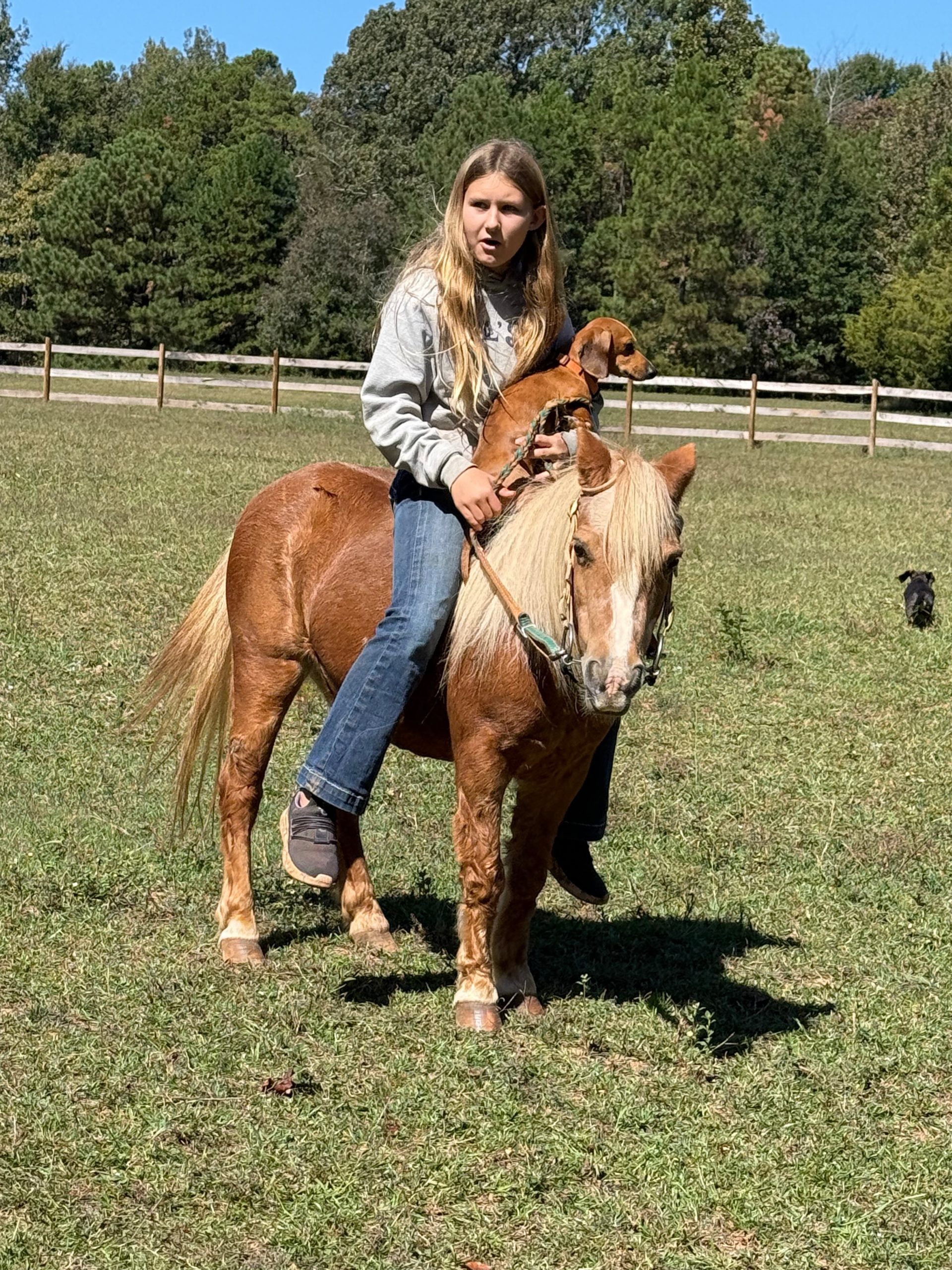 (yes, she knows she’s precious)Miss. Kitty might be small, but she’s got a whole lotta personality packed into that golden pony body. She’s broke to ride and has mainly been used as a lead-line pony — which means she’s been chauffeuring kids around like a saint while silently judging their balance. She will also ride out and has been trail ridden all overShe’s been hauled as a barrel-horse buddy and now thinks she’s one of the big horses. You’ll catch her strutting through the rodeo grounds like, “Don’t mind me, I’m basically a reining champion in fun size.”Baths? Loves them. Ties quietly. Hauls great. Easy to catch. Will stand for the farrier, runs in a mixed herd.