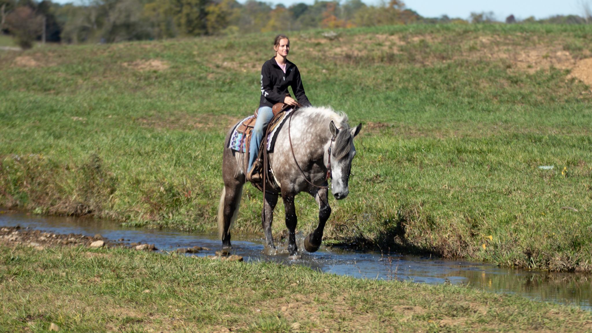 He is a champ out on the trails. He conquers the hills with ease. He will step over logs. Moose will cross the creeks with ease. He does not mind riding out with a group, but does great alone, too. He will Trailer load well. He does not mind riding out on the roads. He will stop and stand patiently when asked.