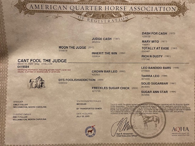 Description: Meet Oakley! He is the perfect prospect for anyone looking to head to the barrel pen, roping pen or even working cattle. His Dam is a 79% foundation Quarter horse that competed in pole bending and barrel racing until retiring a sound to the breeding barn. Oakley is Paid in to Future Fortunes and eligible for other incentives as well. He is up to date on Coggins, vaccines and trims. I adore this colt, and he is a pleasure to be around; he is always one of the first to meet me at the gate and has a wonderful demeanor. Should mature to somewhere around 15-15.1H