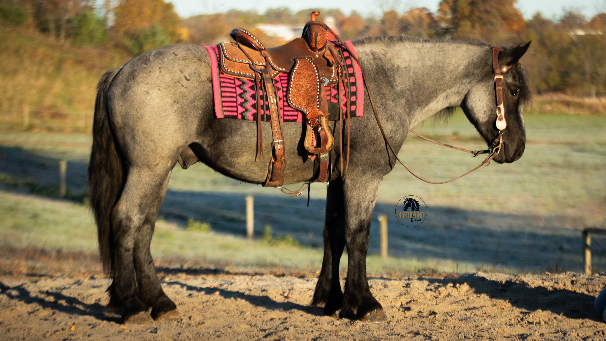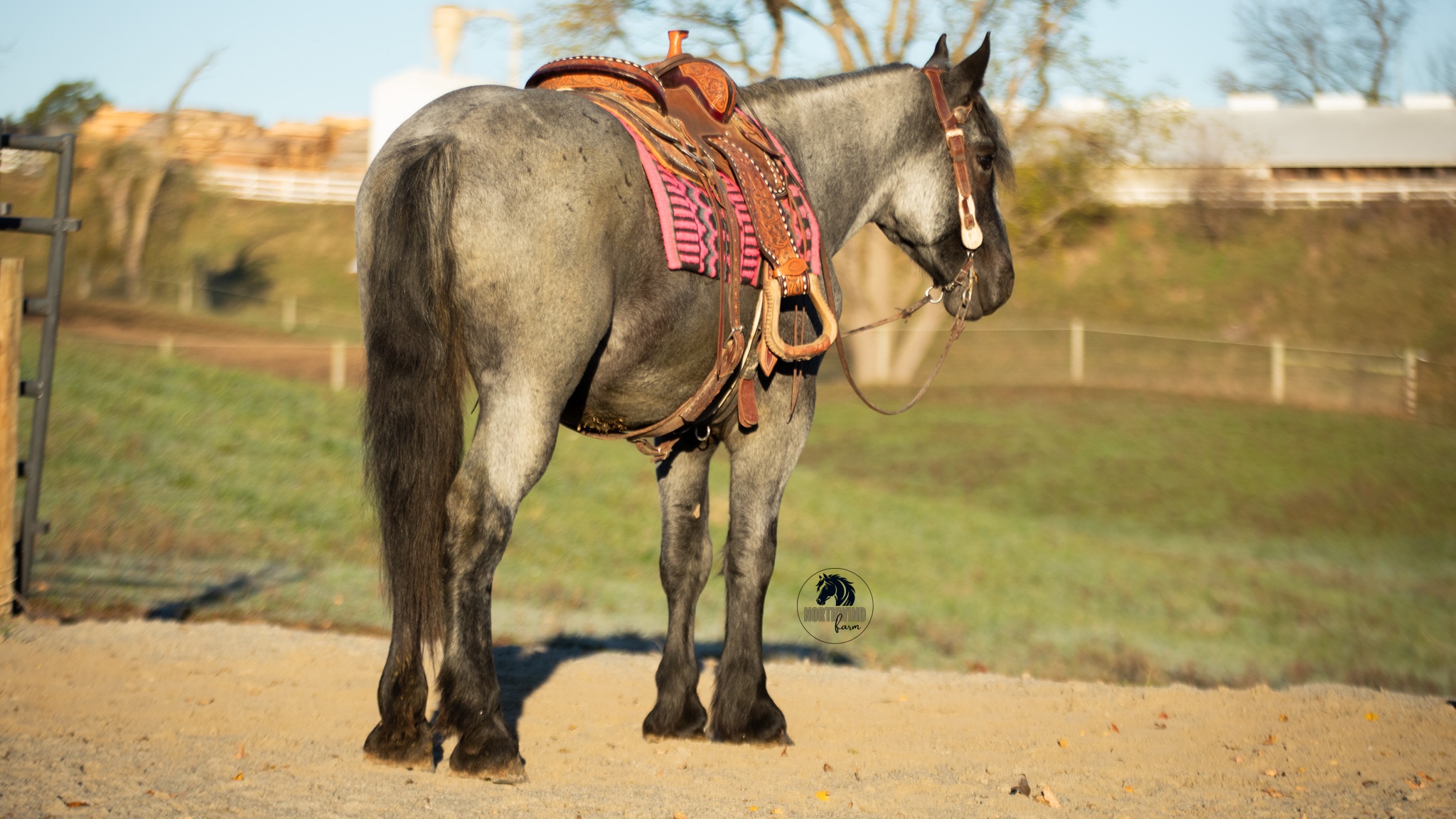 Description: Onyx is a 4 yr old blue roan crossbred gelding standing at 15.3hh. Onyx is as safe and reliable as the day is long. He has been all over on the trails, he is traffic safe and confident. He will go through all the obstacles and is used to being around dogs! Onyx has a smooth and easy to ride trot and canter! He is safe and 100% sound! Contact Lisa: 330-473-3521