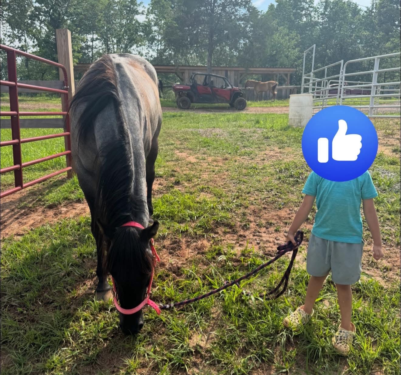 Very gentle and easy to handle. She gets along well with other horses, is great around kids and other animals, and will come right up to you in the pasture!! Easy to catch and a pleasure to have around.