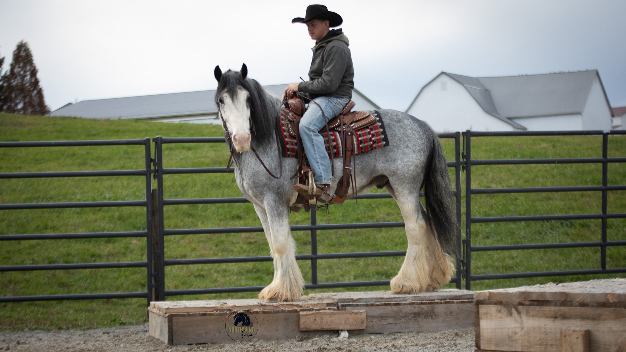 Description: Pirate is an 8 yr old gypsy gelding standing at 15hh. He well broke to ride! Pirate rides great in the arena and out on the trails! He is quiet and confident going out alone! He will go through any obstacle you point him at and is easy going! He will pick up both leads, he stops nicely and he will back up! Pirate has easy gaits and is a very nice ride! He is 100% sound! Contact Northwind Farm at 330-473-3521