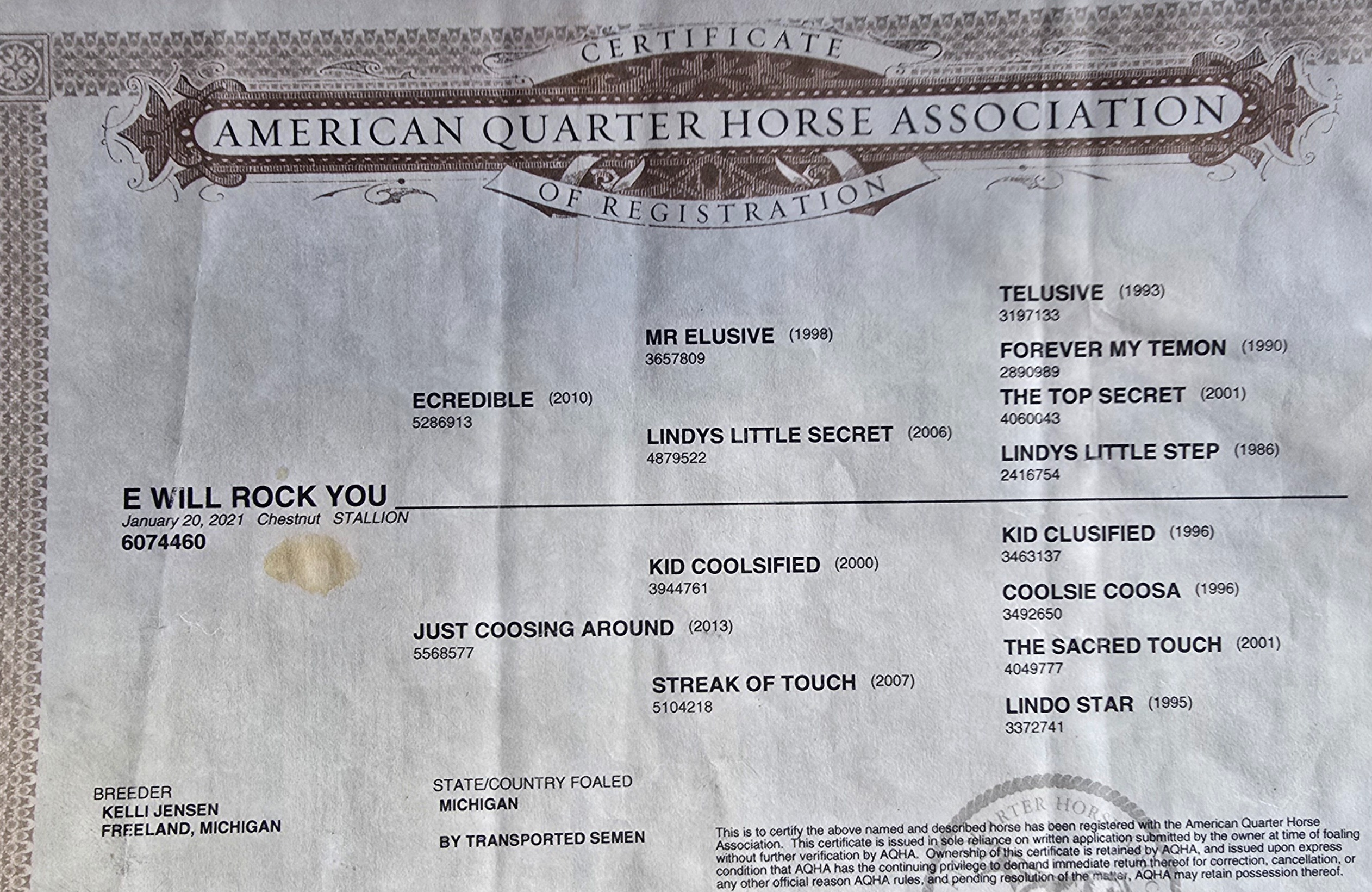 Registered with: AQHA
