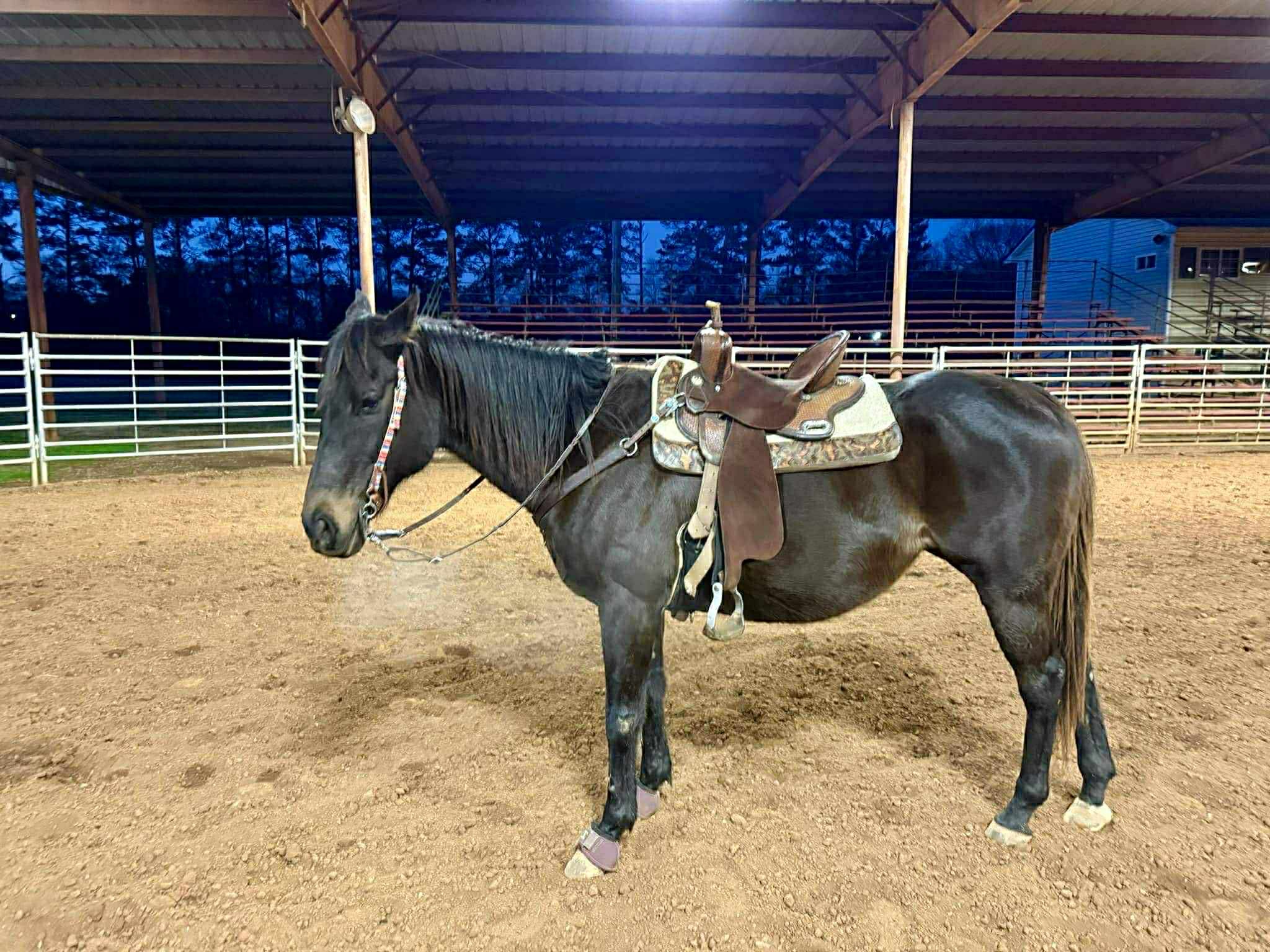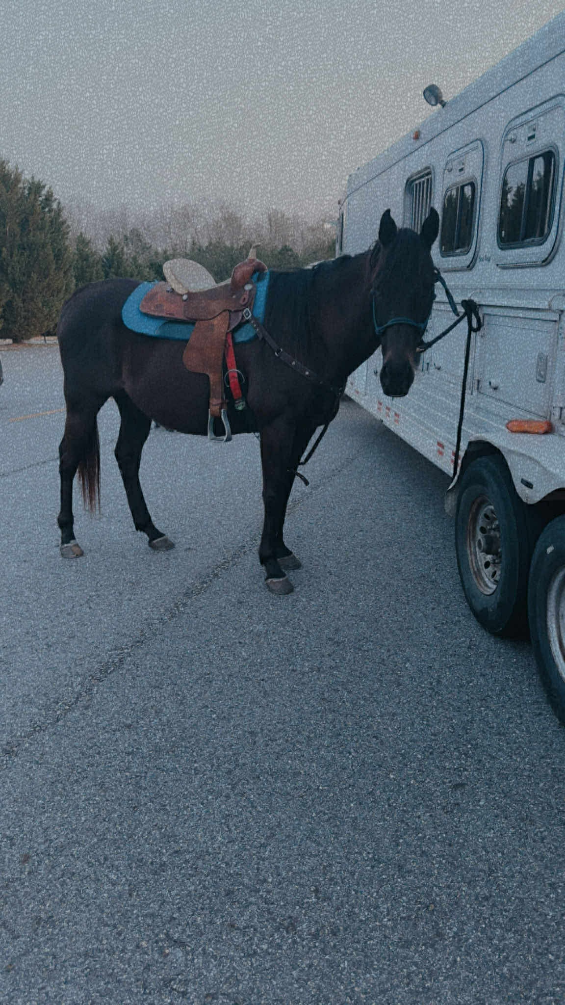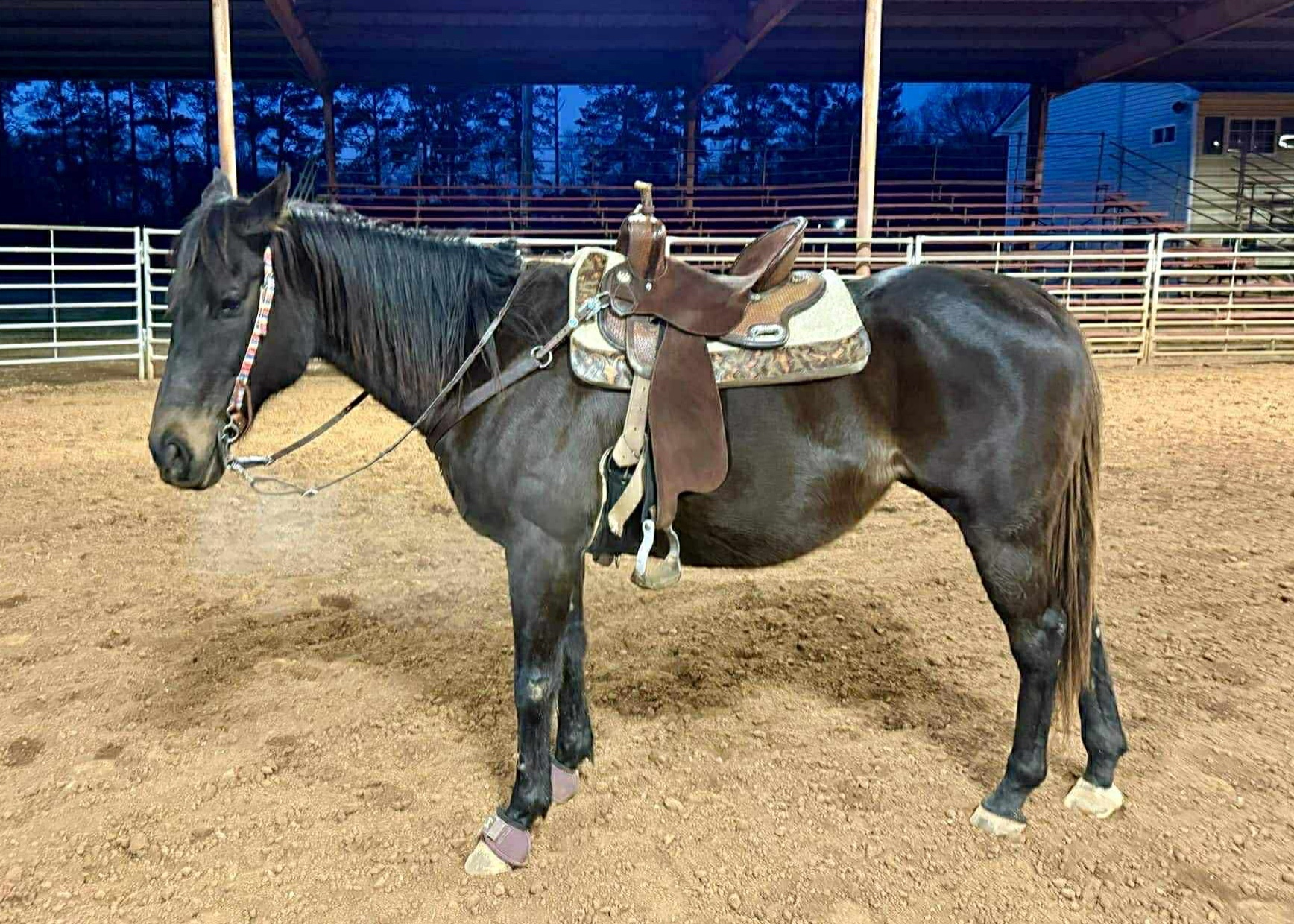 He has a solid start on the barrel pattern, performs well on trails, and loads easily in a trailer. Ruger has excellent ground manners with no bucking, biting, kicking, rearing, or spooking. Not suited for beginners, he would make an ideal step-up horse with significant potential in the arena.