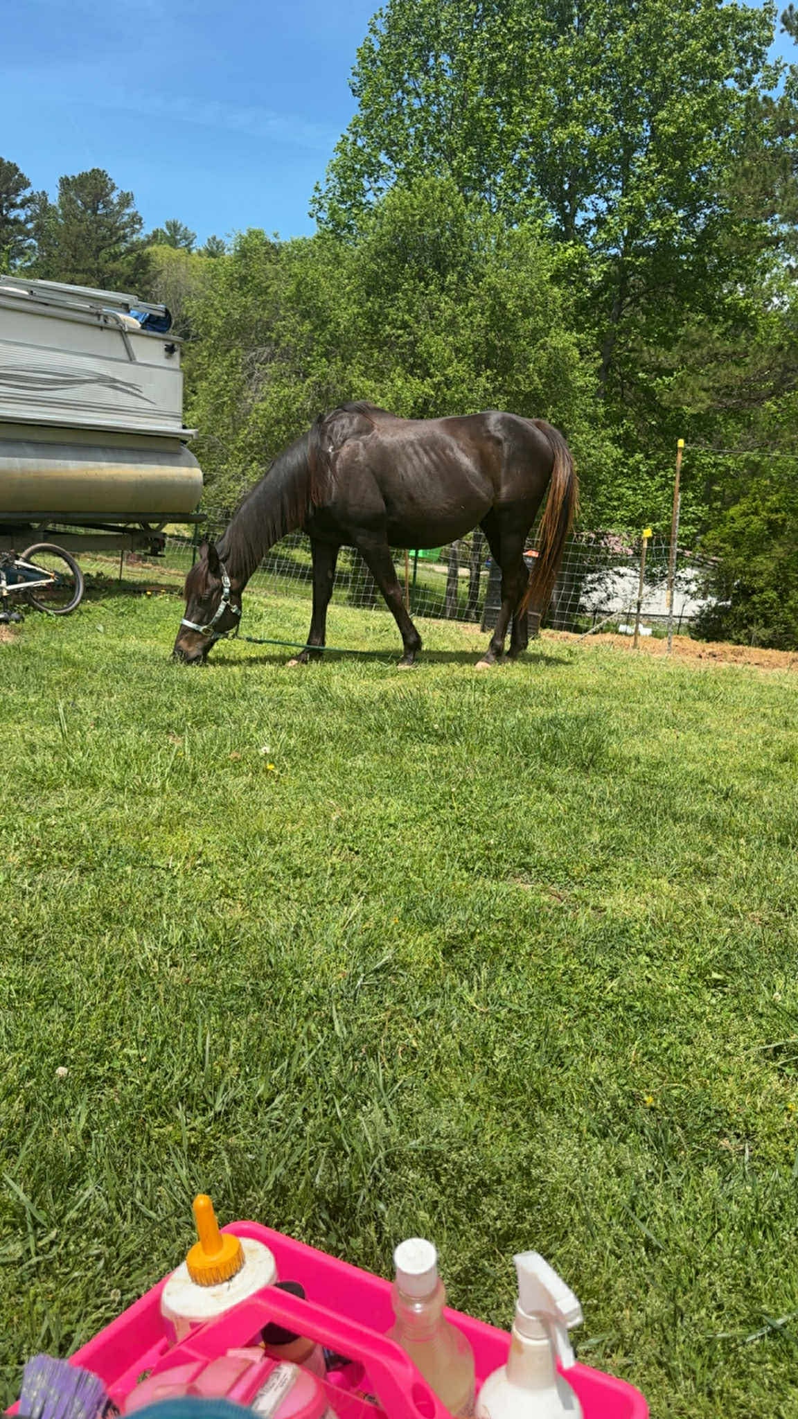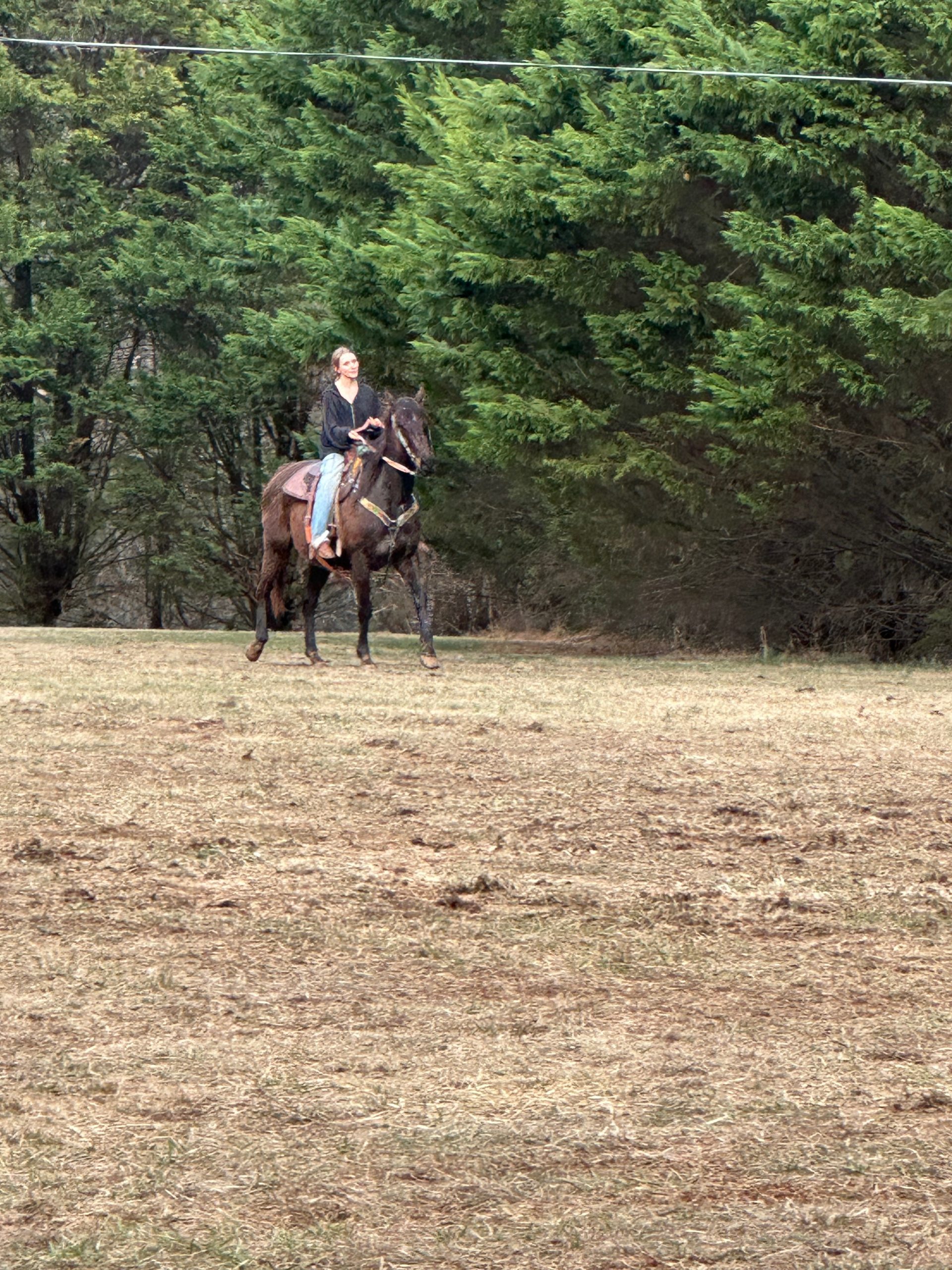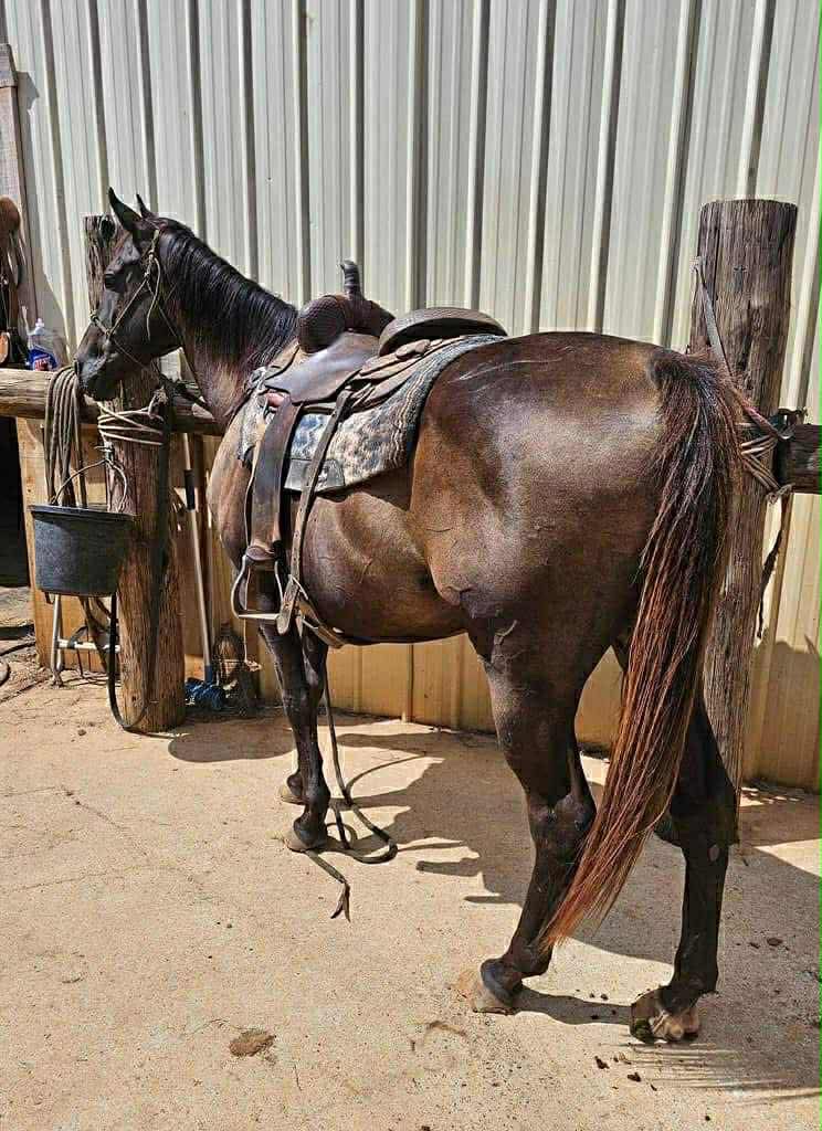 He has a solid start on the barrel pattern, performs well on trails, and loads easily in a trailer. Ruger has excellent ground manners with no bucking, biting, kicking, rearing, or spooking. Not suited for beginners, he would make an ideal step-up horse with significant potential in the arena.
