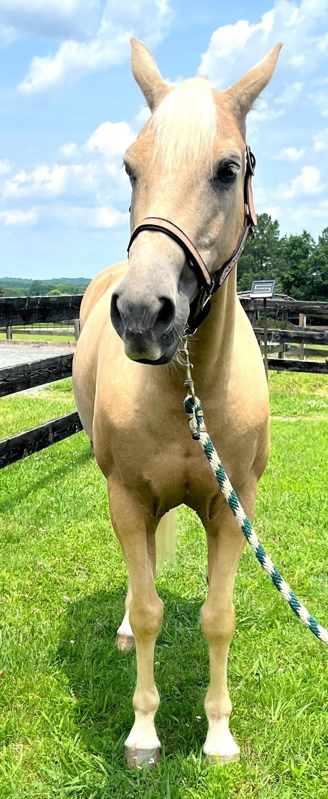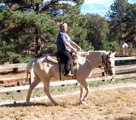 Description: Starkist is a wonderful, sound 8 yr, Palomino Quarter Horse Mare standing at Height: 15.2 hDescription:Introducing Starkist, a pretty, 100% sound, palomino quarter horse mare with great conformation and a huge heart. She easily leads, grooms and cross ties. She is well-behaved for the vet and farrier, has all her vaccinations and has great ground manners. She has been trail and obstacle ridden (bridges, ground poles, etc.), crossing water, mud, logs and more willingly. In the arena, she rides under saddle and works on the lunge line and with driving long lines, with side reins, over poles and other exercise equipment.She trailer loads nicely and ponies with other horses. Starkist is easy to catch in the pasture and bring to the barn. She nickers when you come in the barn, loves her peppermint treats, enjoys her baths and has all her vaccinations. She's ridden 3-4 x weekly, is stall kept 1/2 the day and then turned out with other mares. Starkist is an easy keeper, a very pretty mover and has a good, sound suspension. With her talent and your guidance, you can ride in English or Western styles, it's up to you! Come out and see this special girl, Starkist !!