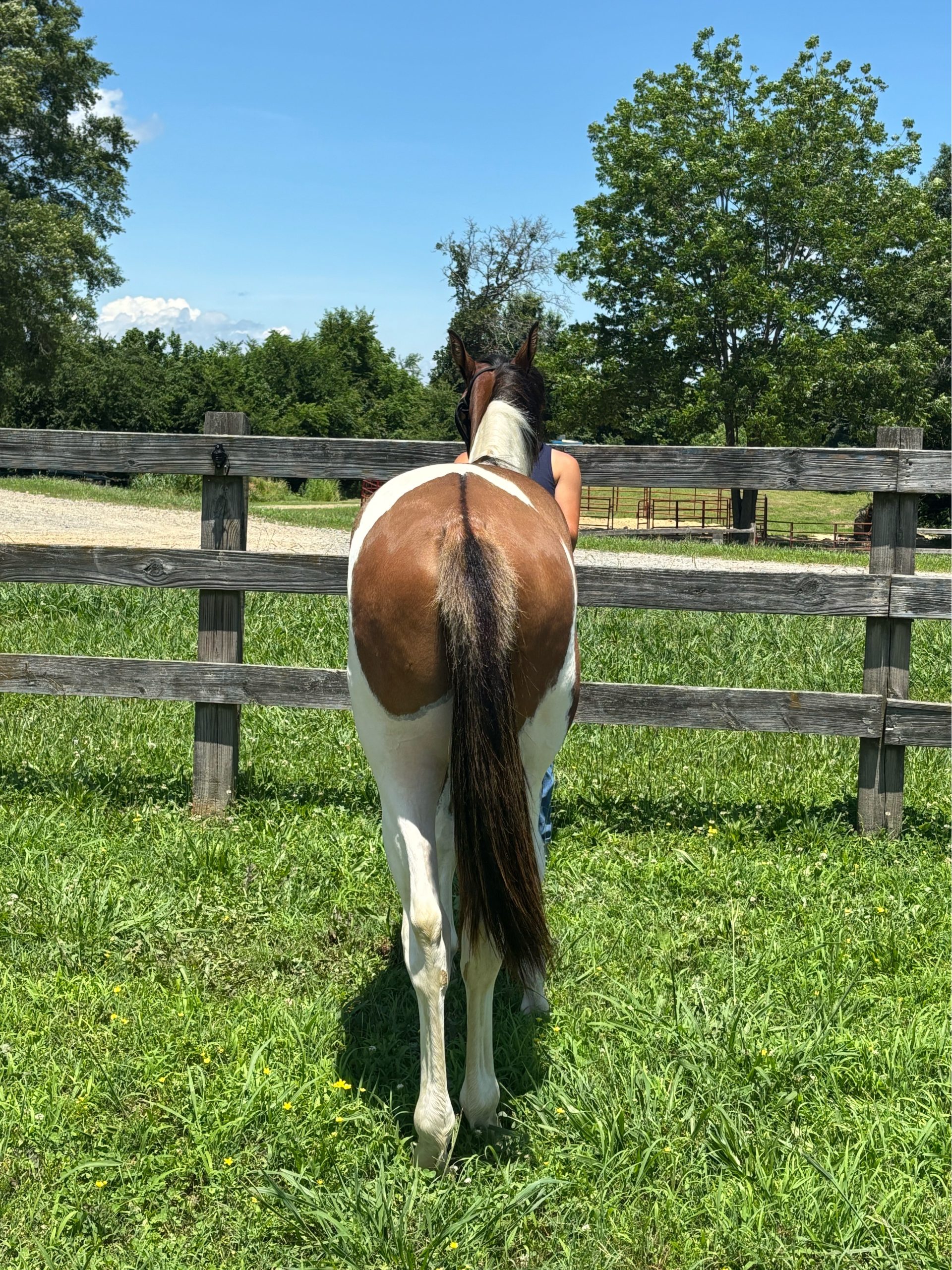 Sired by the one and only Stings Color current Leading Homozygous Tobiano Cutting horse sire based off Equistats Cutting earnings for the past 5 years and a proven producer of money earners and champions in cutting, cow horse, and reining lines.He currently lives outside 24/7 but is super easy to catch, in the pasture he lives next to two other stallions and mares, is UTD on his shots and Coggins. He is currently 14.2h and should mature to around 15h-15.2hh. He would be perfect as a breeding stallion he is so well mannered!
