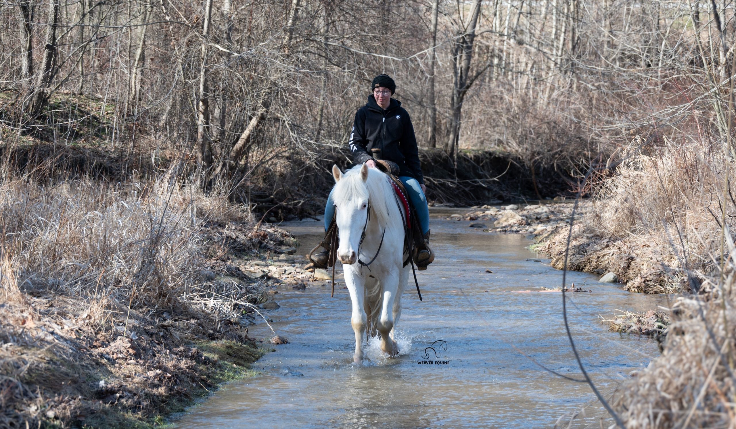 When out on the trails, he will happily plod along whichever direction you please! He conquers the hills with ease, does not mind stepping over logs or crossing creeks. He will happily take you on a solo ride but also rides great in groups!