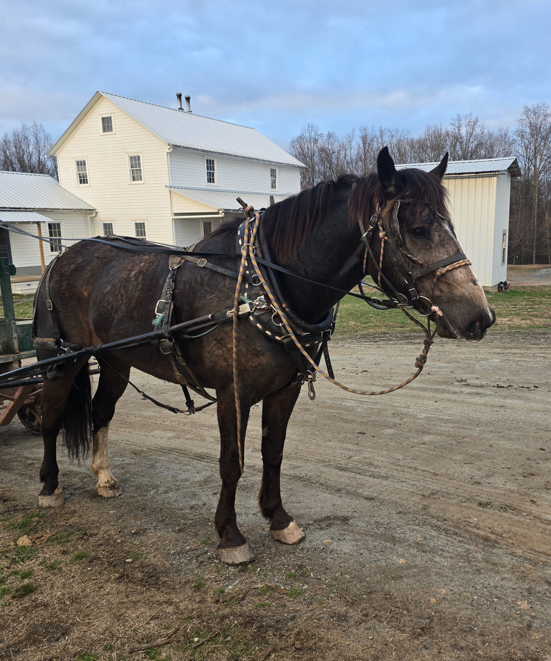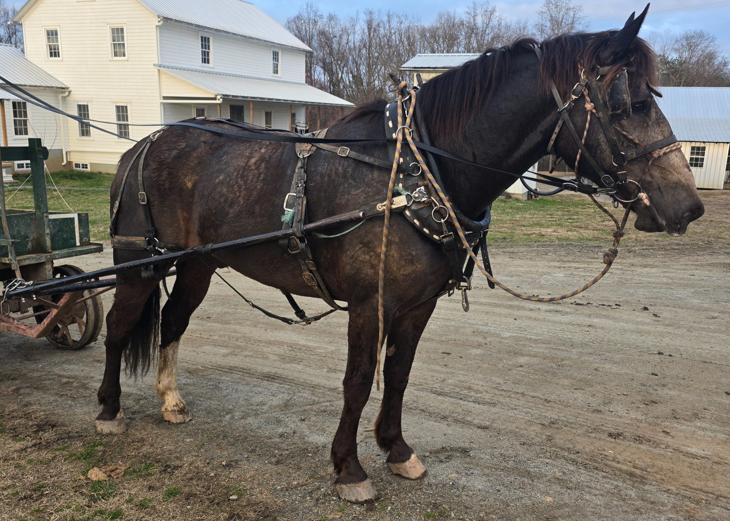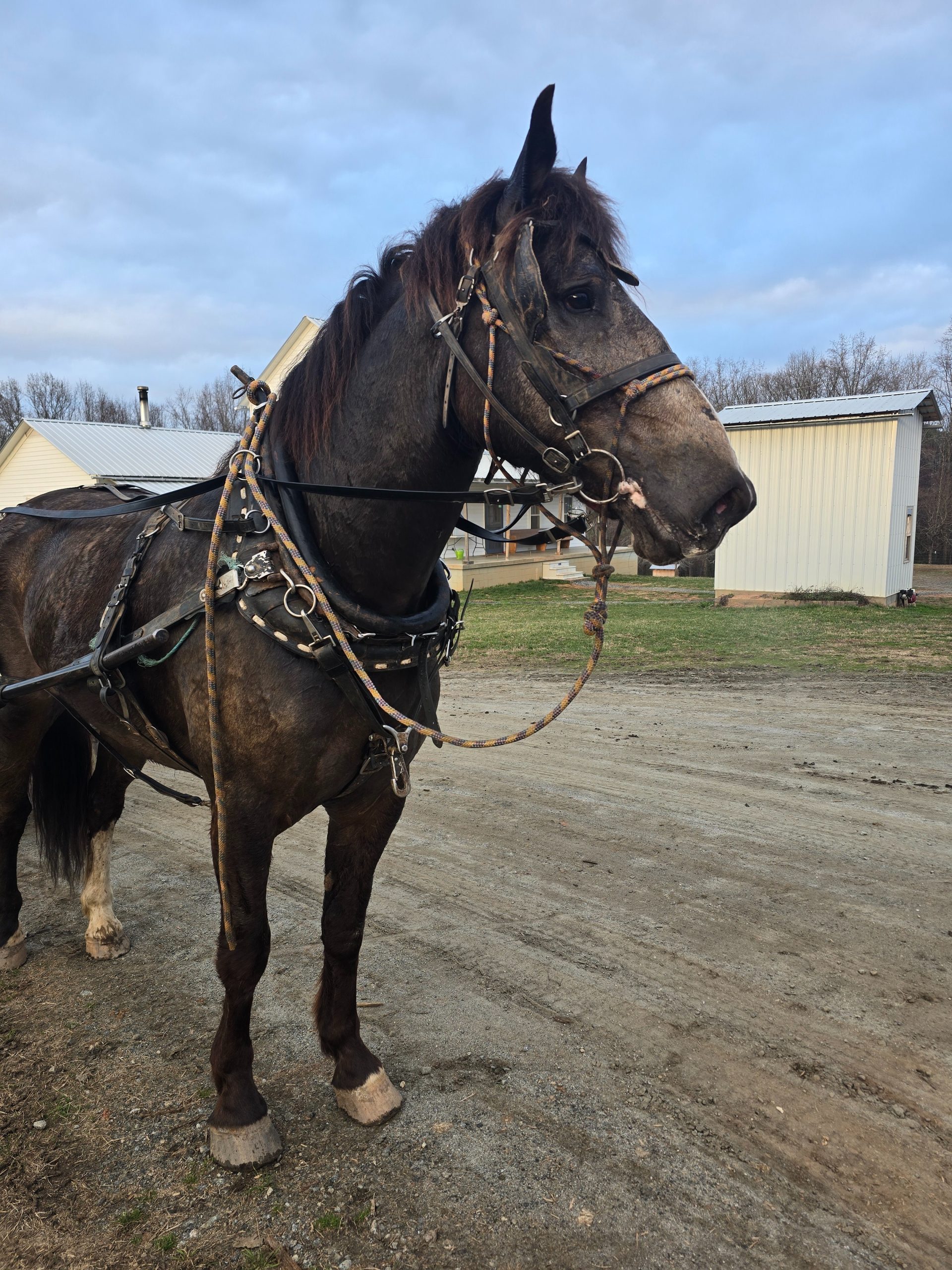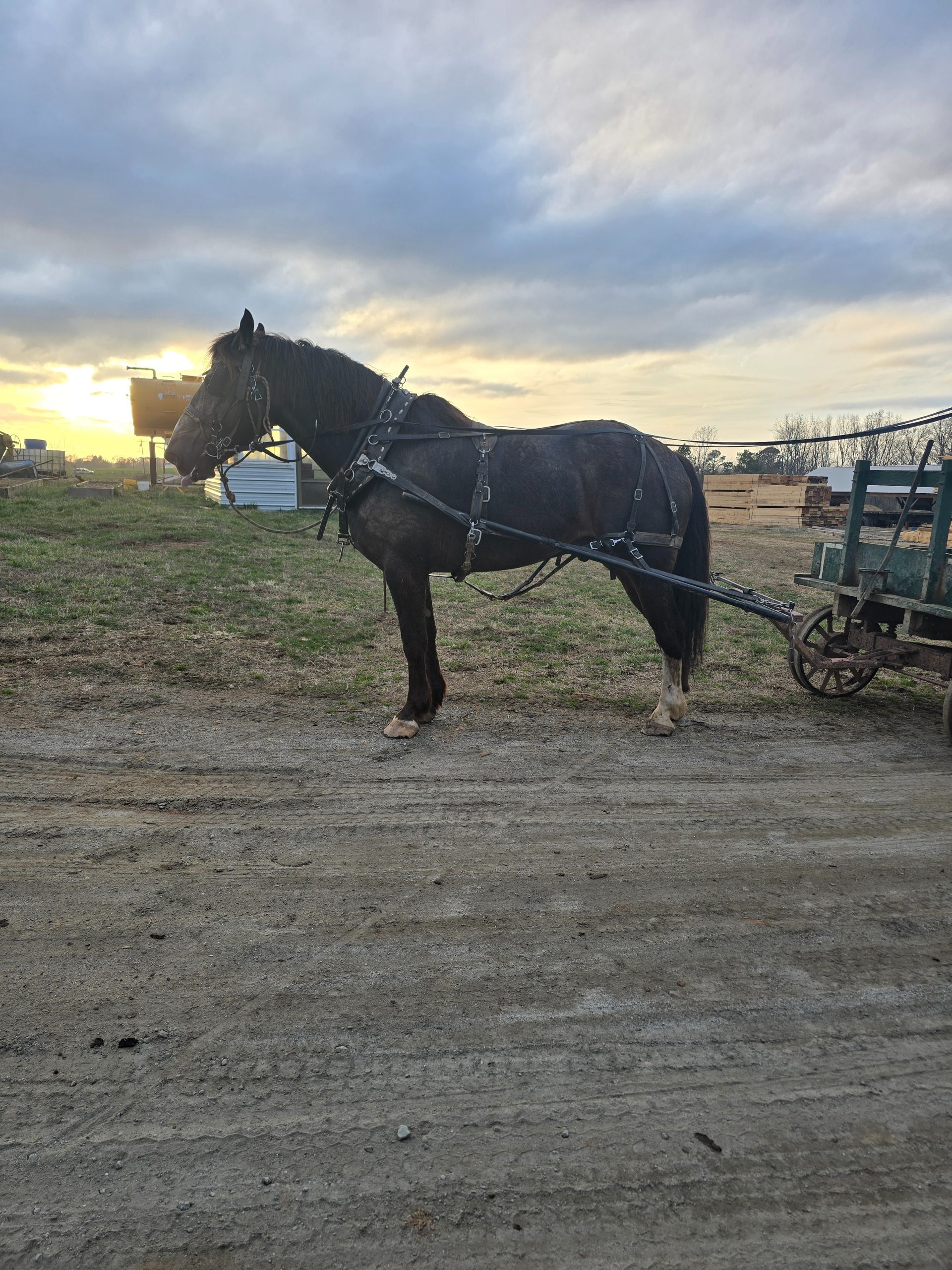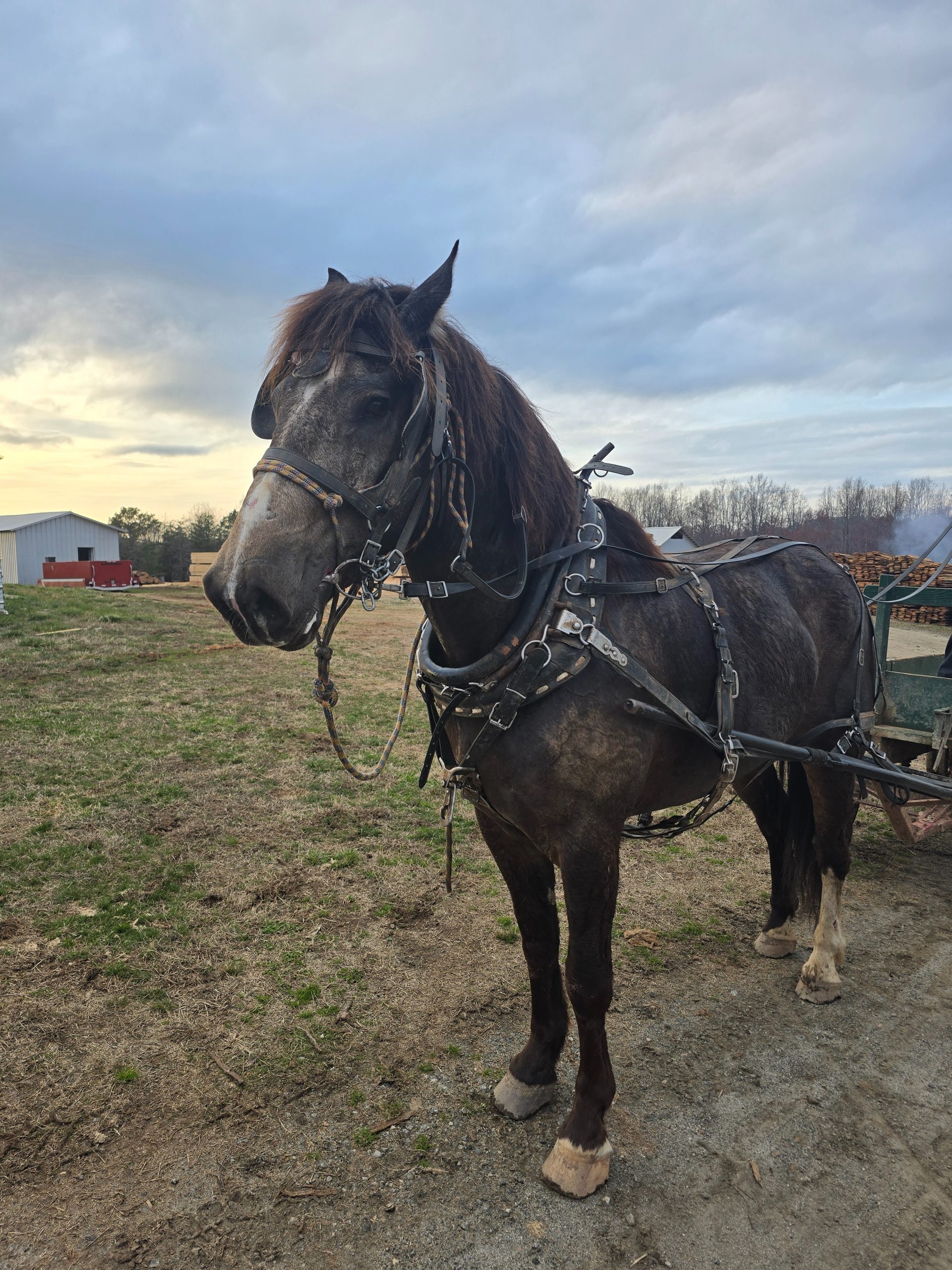 Tank is a big beautiful gelding that has been used to haul logs for the saw mill and pull wagons up and down the road. He is broke to drive single or double. Has been ridden before.