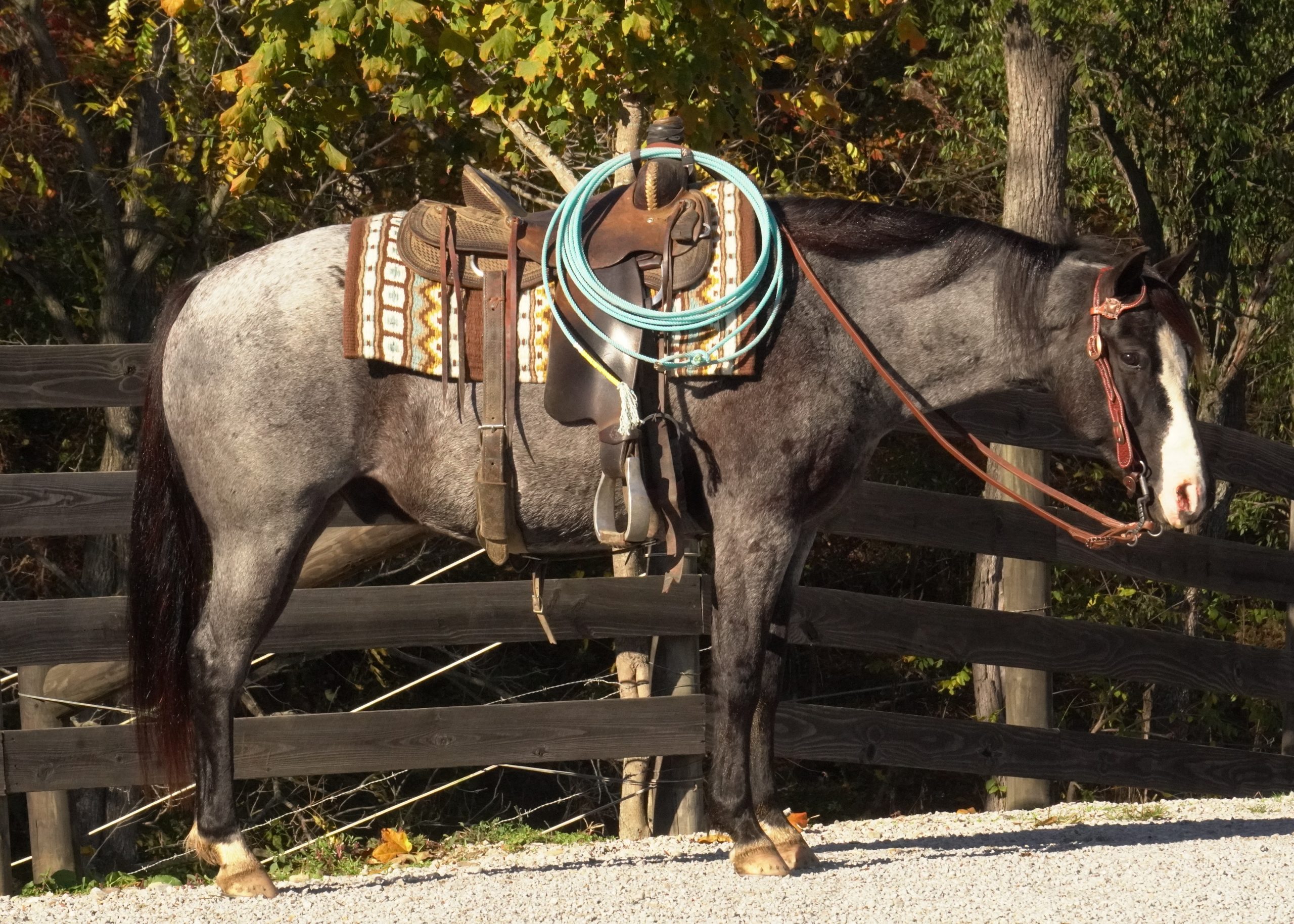 Description: Theo is a 4yr old blue roan grade quarter horse gelding standing 14hh. Theo picks up both leads, side passes, pivots and neck reins. Theo has been in town, on trails, at state parks and even through the drive throughs! Theo crosses creeks and goes over logs. Theo has been a very good team member and is good for any level of rider. With Theo’s perfect size, makes him a perfect fit for the family horse. Theo is good with tarp, bullwhip, ball and jugs. Theo is traffic safe and sound. Call or text Jackson at (330) 275-2792 for more info.